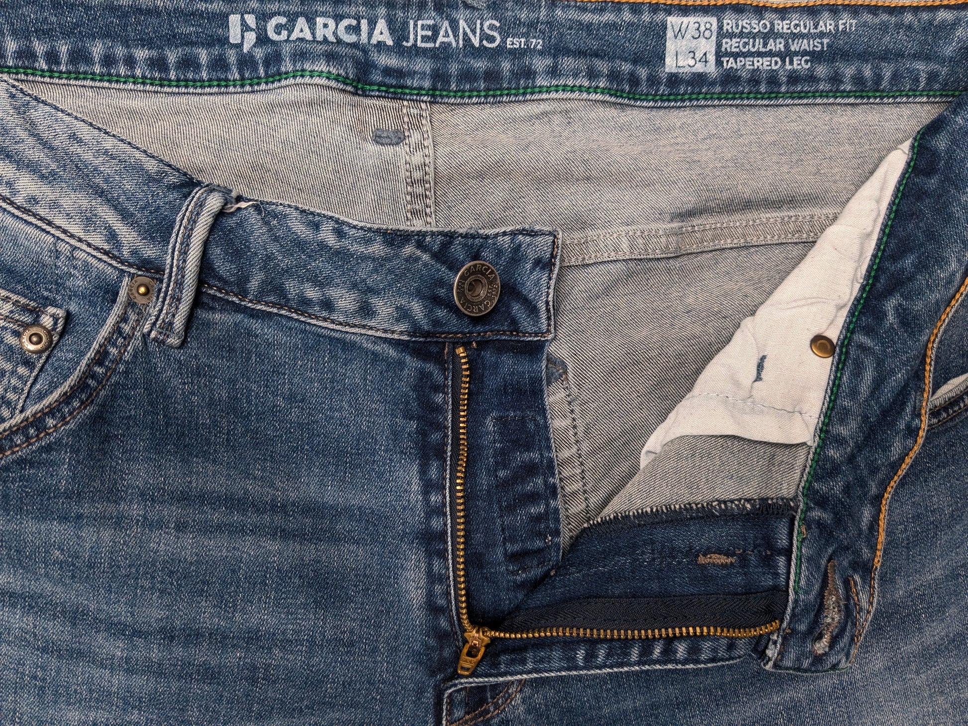 Jean Garcia. Coloré en bleu. type Russo coupe régulière. Taille W38 - L34. extensible.
