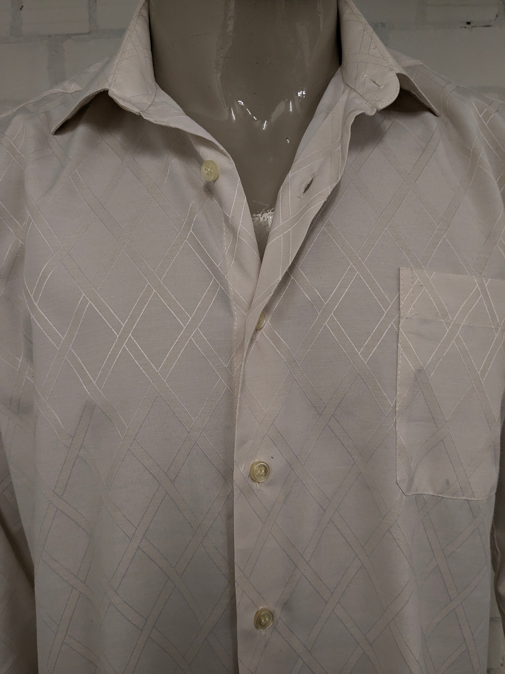 Chemise CHM Vintage CHM. Motif brillant léger beige. Taille L.