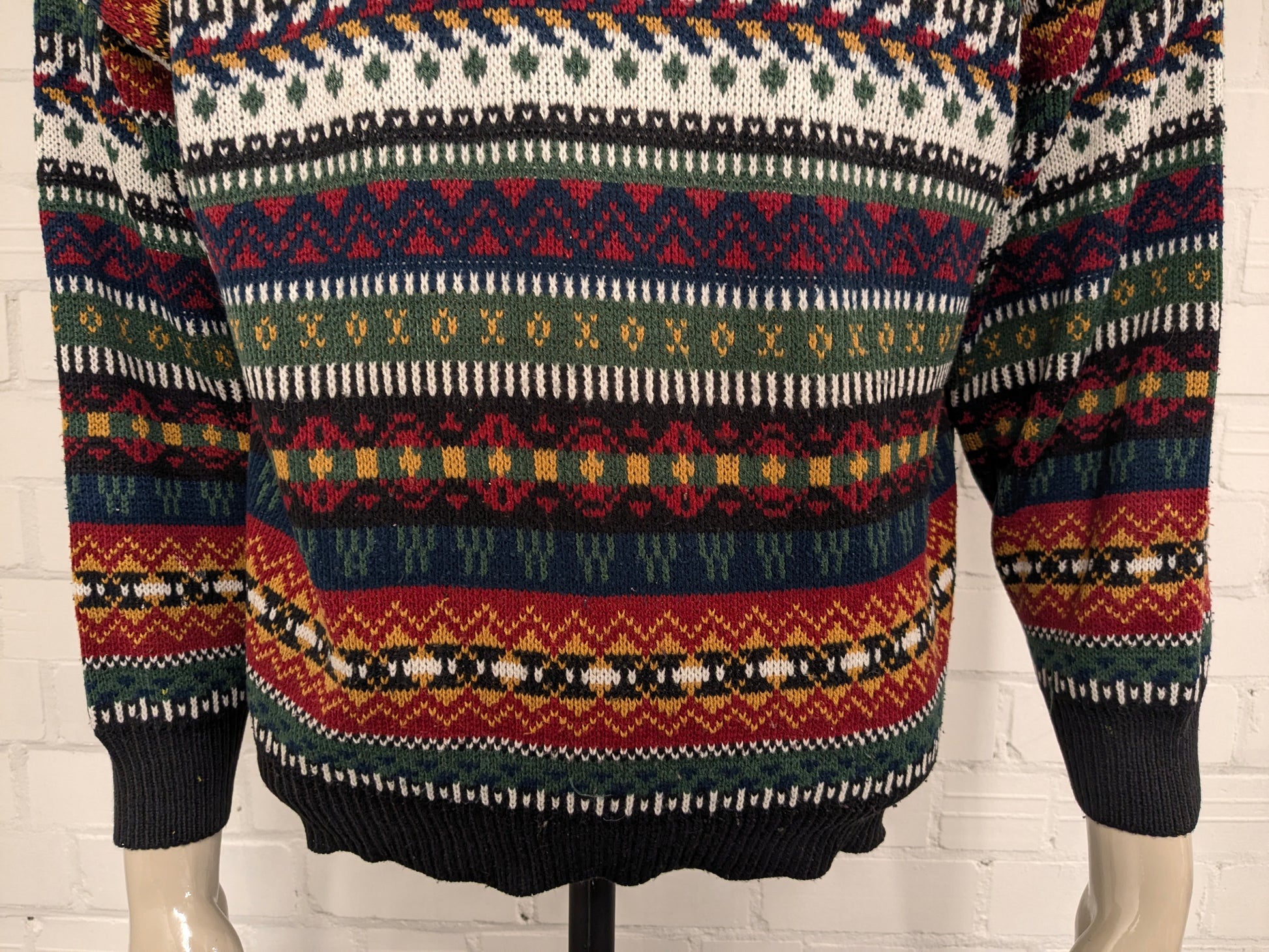 Pull complexe vintage avec fermeture éclair. Impression colorée. Taille xl.
