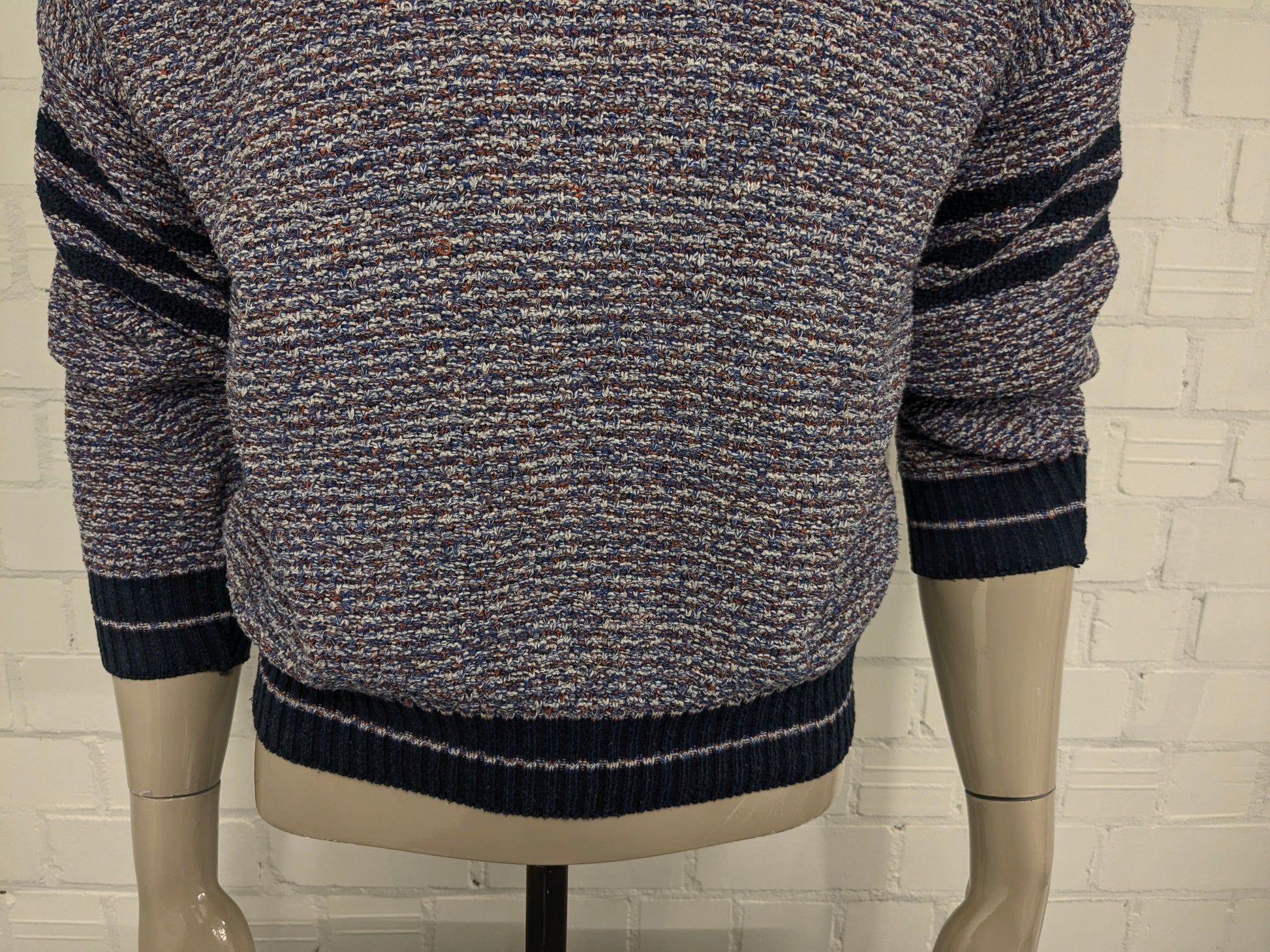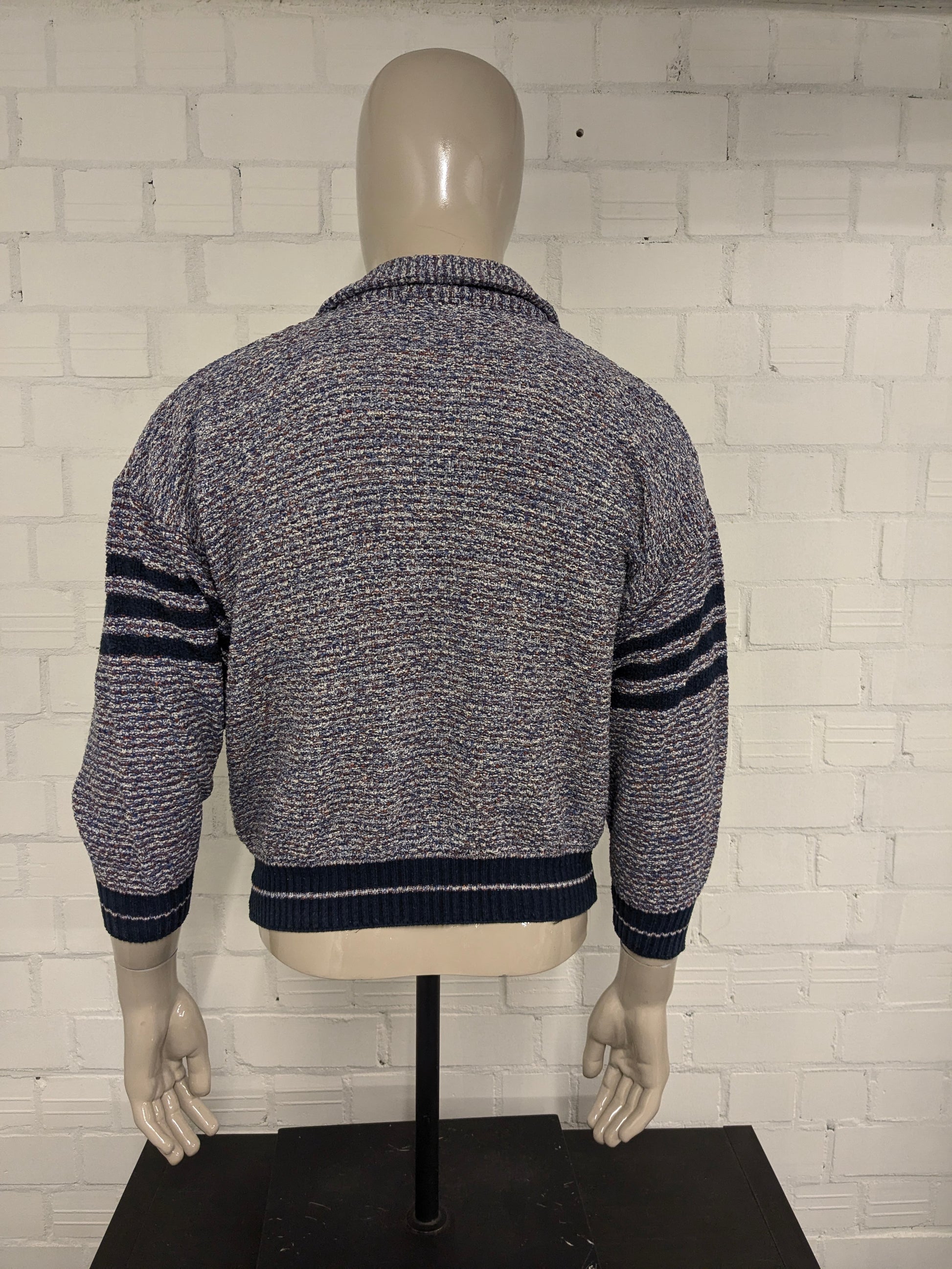 Pull vintage avec fermeture éclair. Bleu blanc rouge mélangé. Taille M.