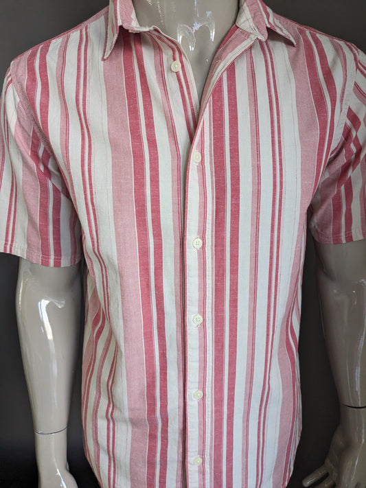 Sleeve corta selezionata per camicia Homme. A strisce di beige rosso. Dimensione L. Fit regolare.
