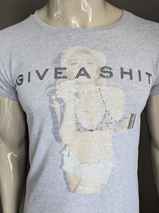 La mia camicia di marca "Dai una merda". Grigio con stampa e pietre. Taglia M.