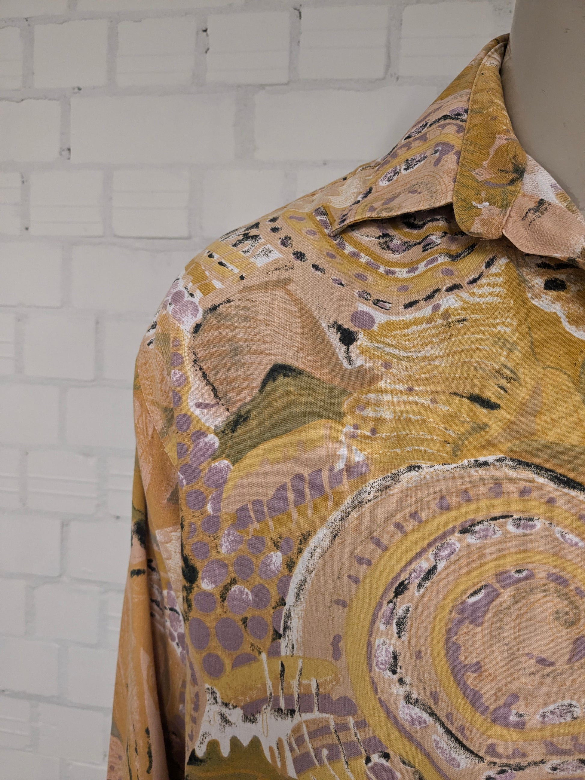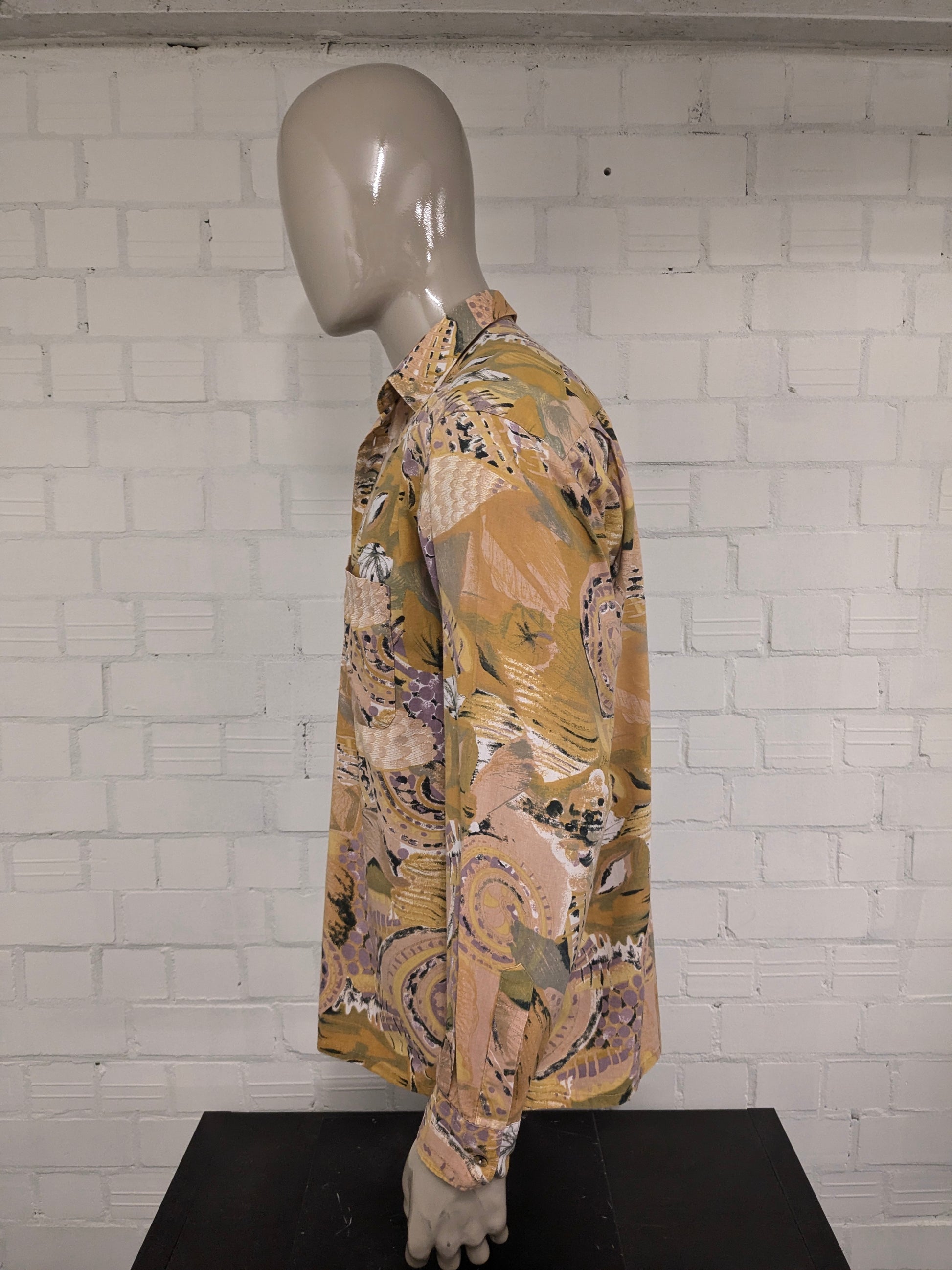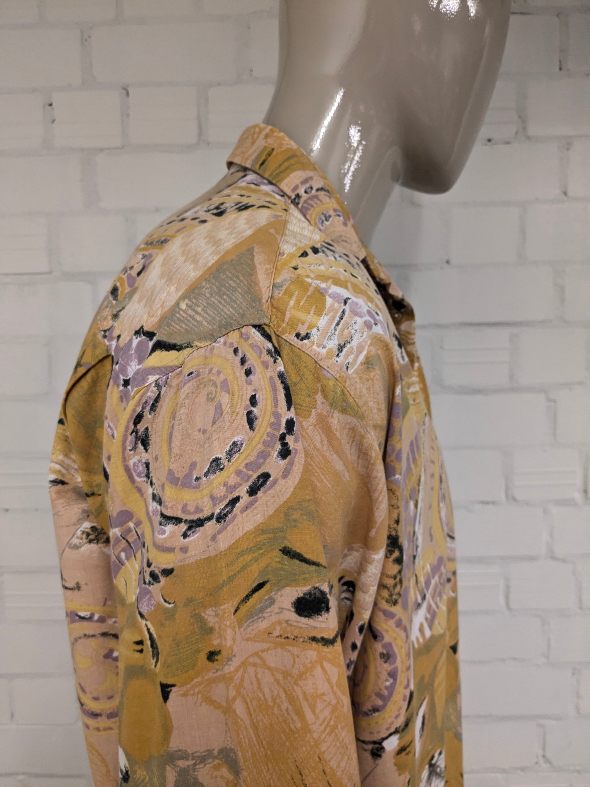 Vintage 80's / 90's Golfers Club overhemd. Geel Groen Paarse print. Maat XL.
