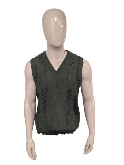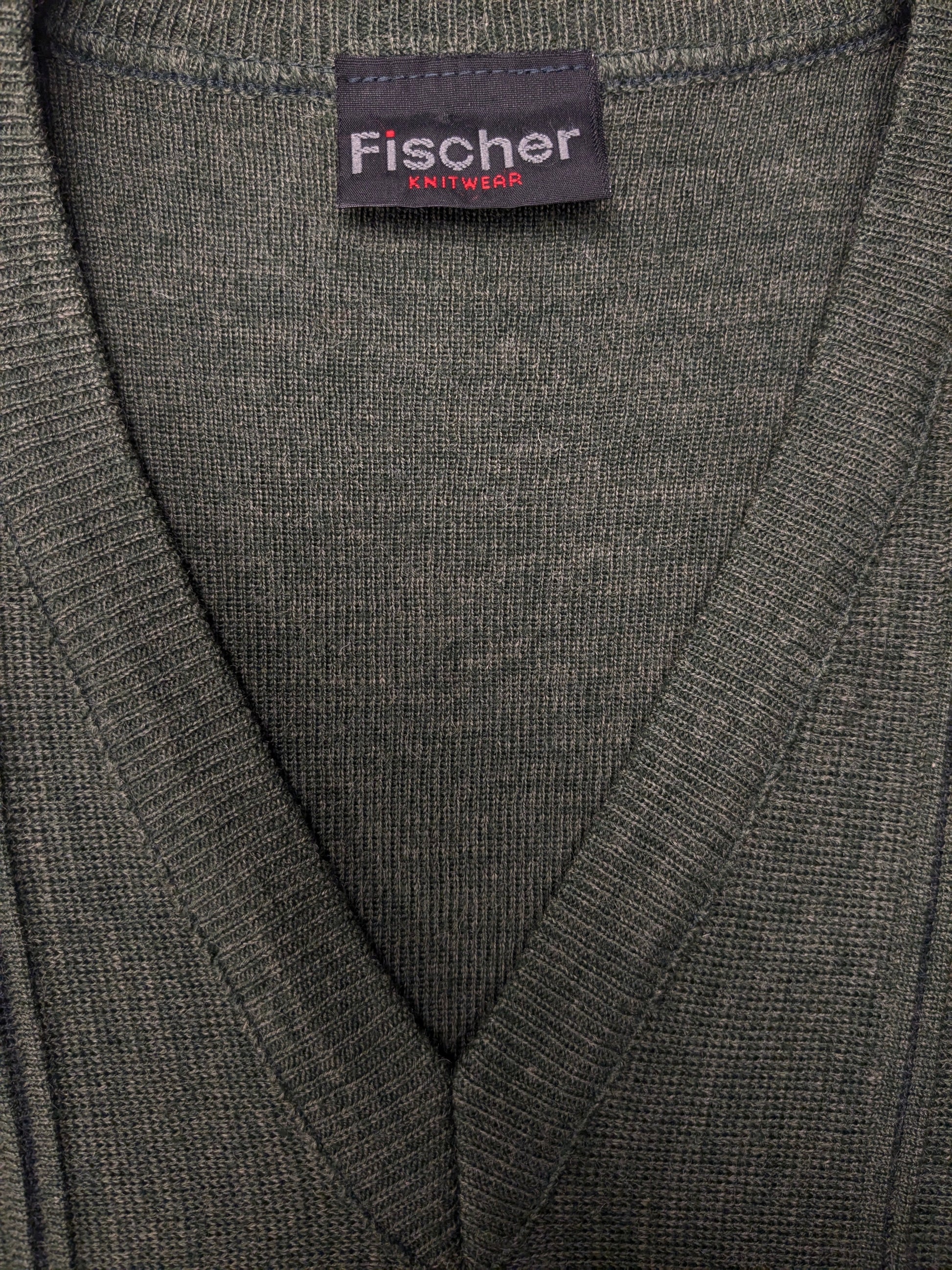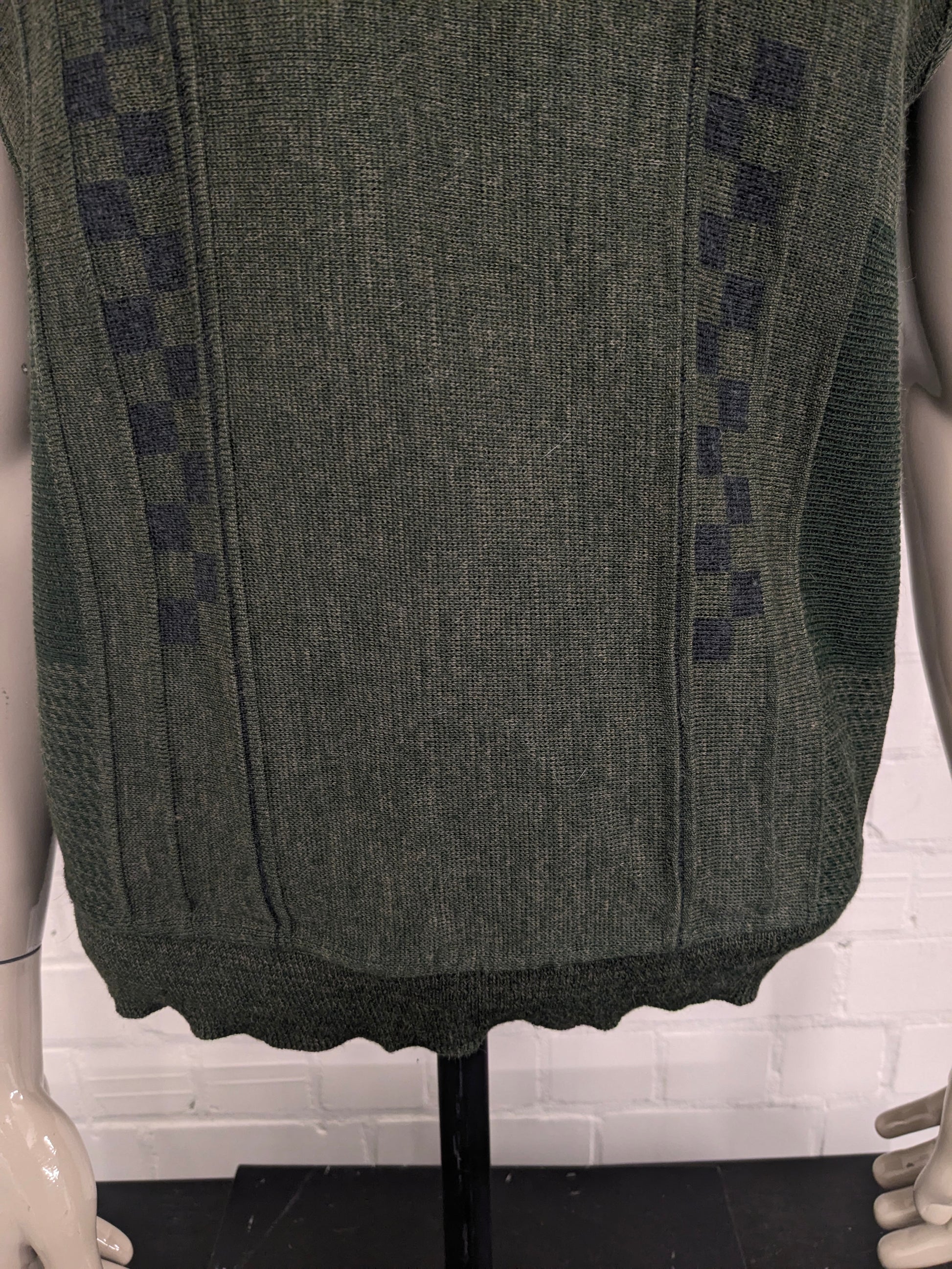 Spencer di lana di pesca vintage con scollo a V. Motivo verde. Taglia M. 50% lana.