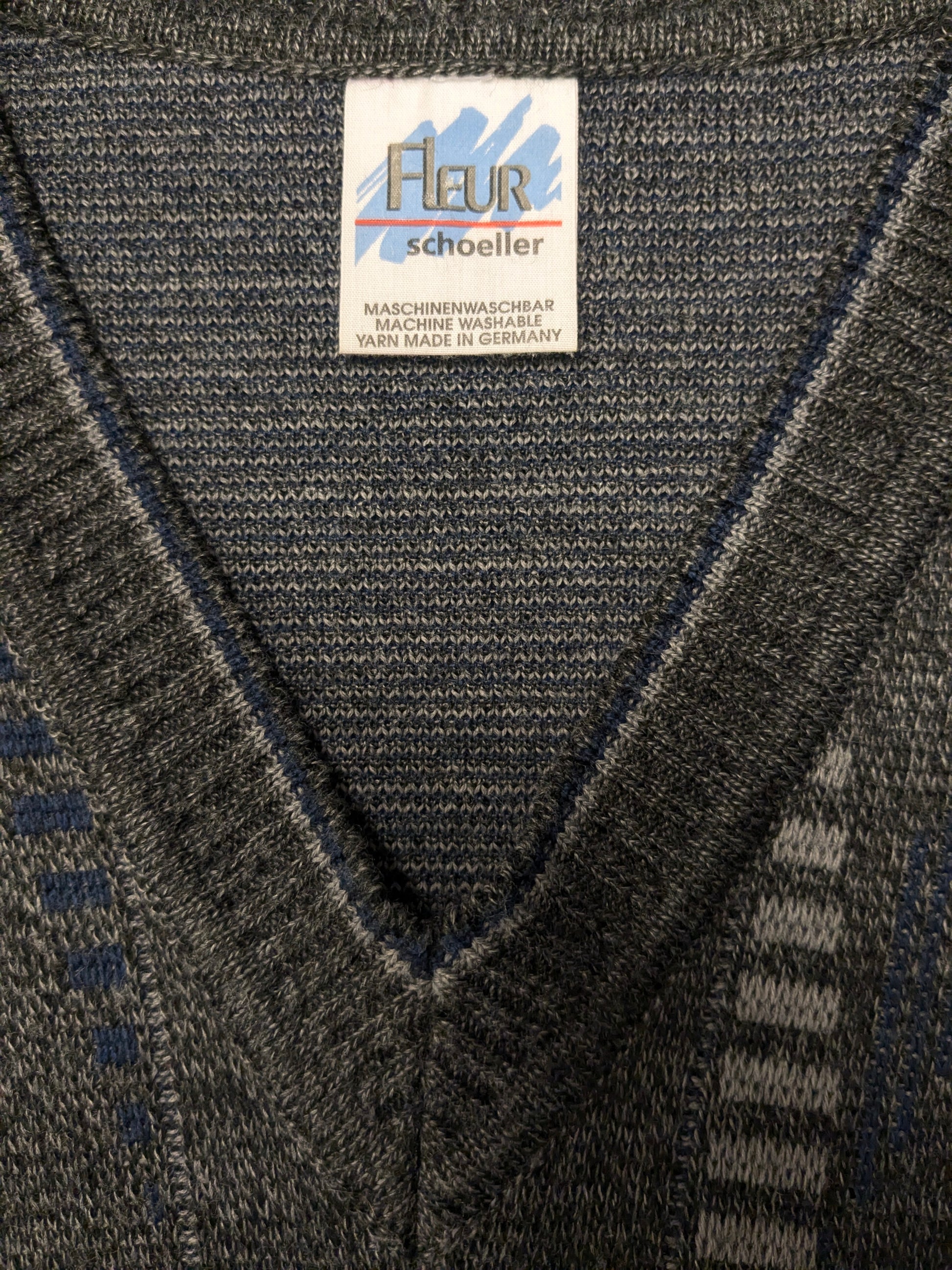 Spencer di Woolen SCHOELER VINTAGE con scollo a V. Colorato blu grigio scuro. Dimensione L. 5% lana.