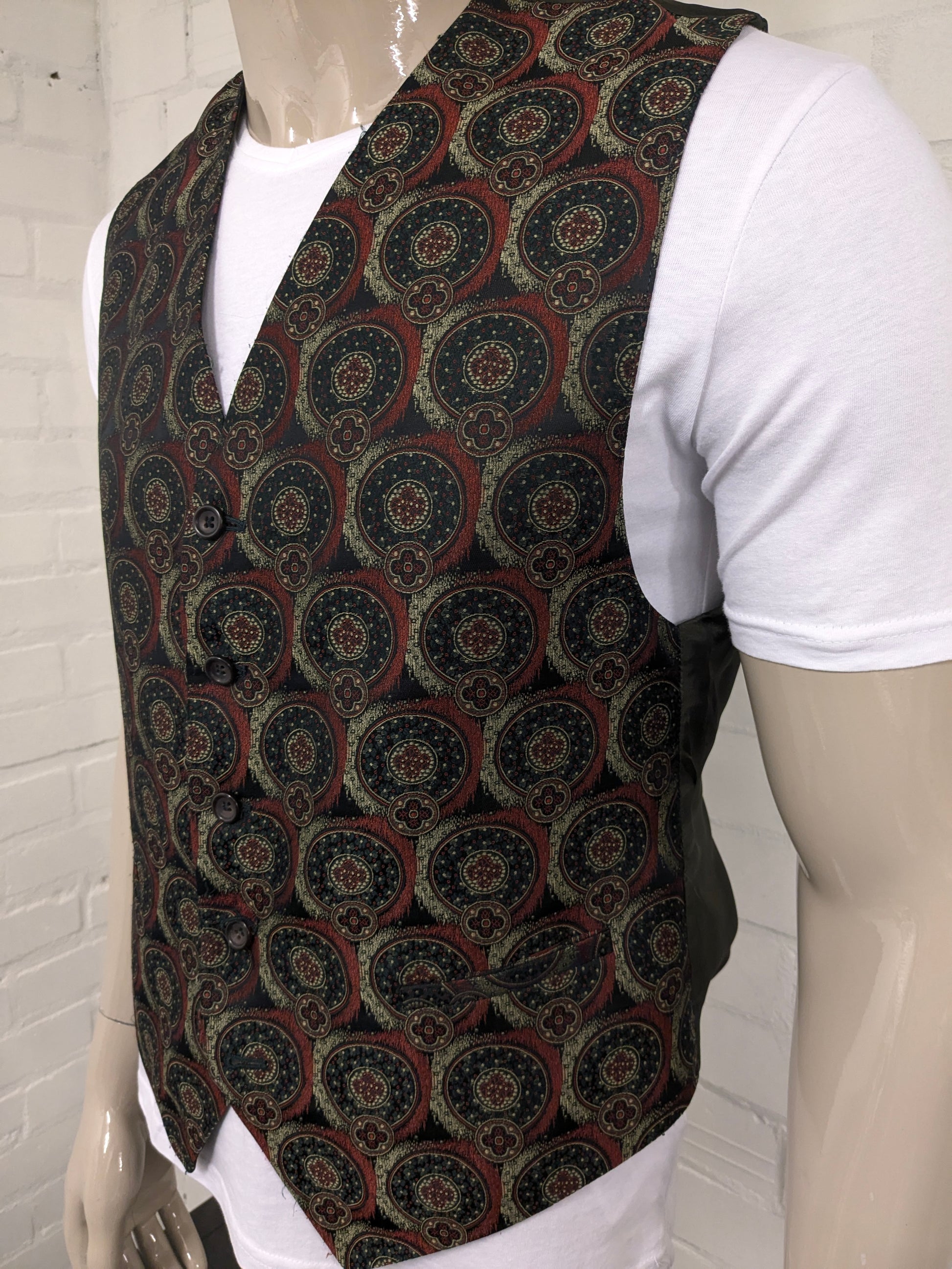 Gilet vintage. Motivo lucido rosso verde. Taglia M.