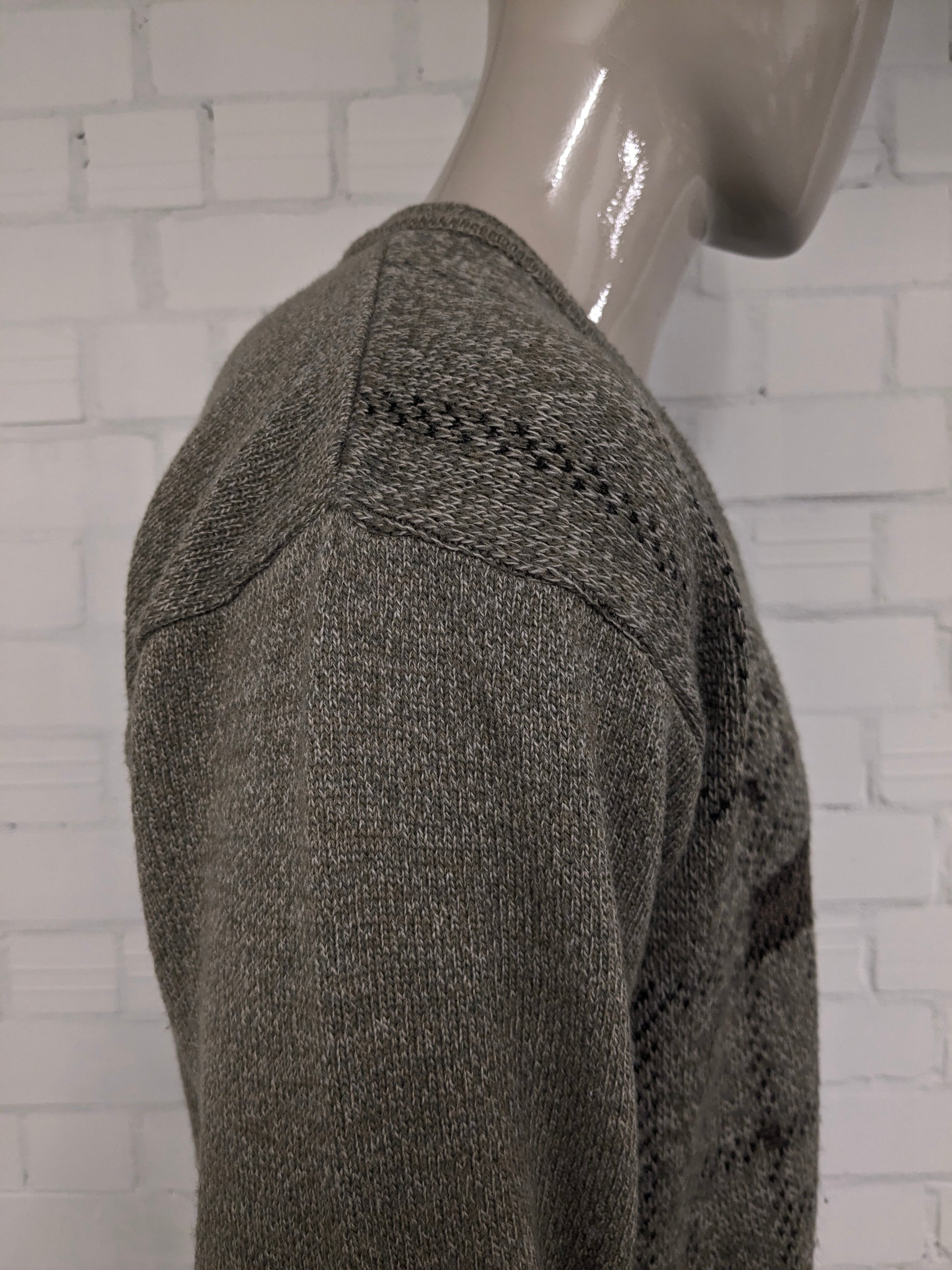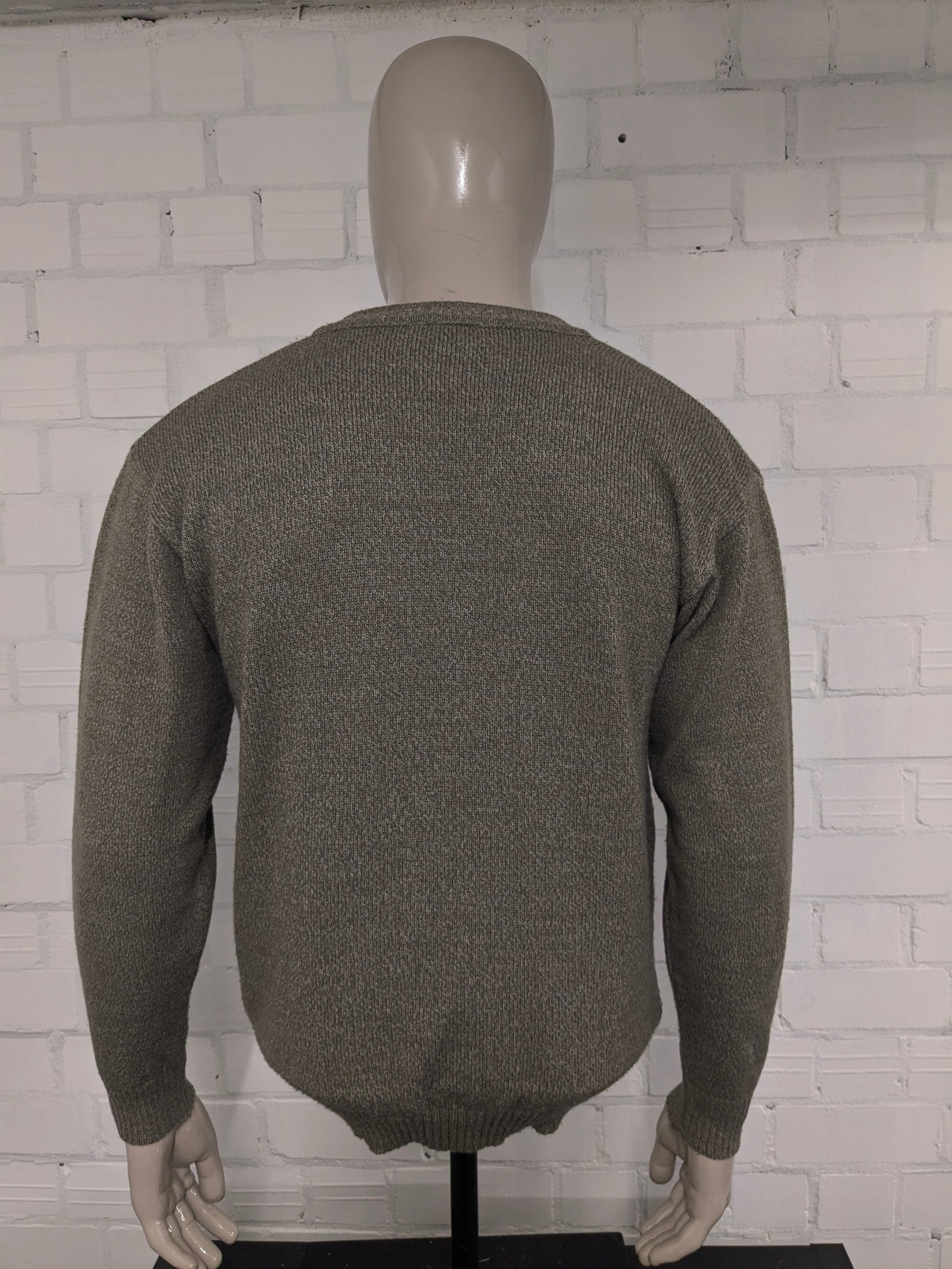 Maglione vintage Marc René in lana con scollo a V. Colore Verde Marrone Beige. Taglia M. 40% Lana.