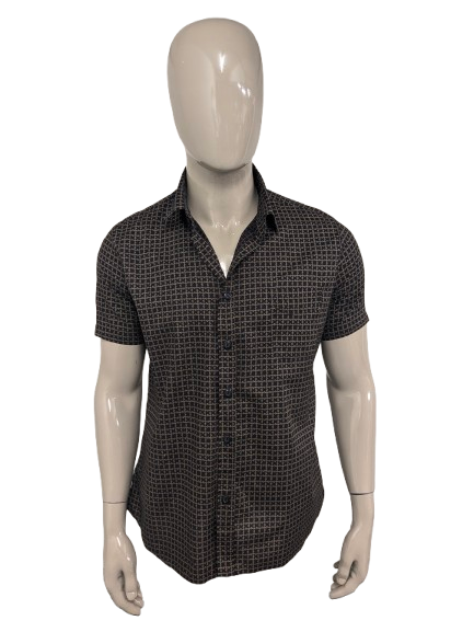Sleeve corta Vintage P Tarassis e Son. Stampa marrone nero. Taglia M.