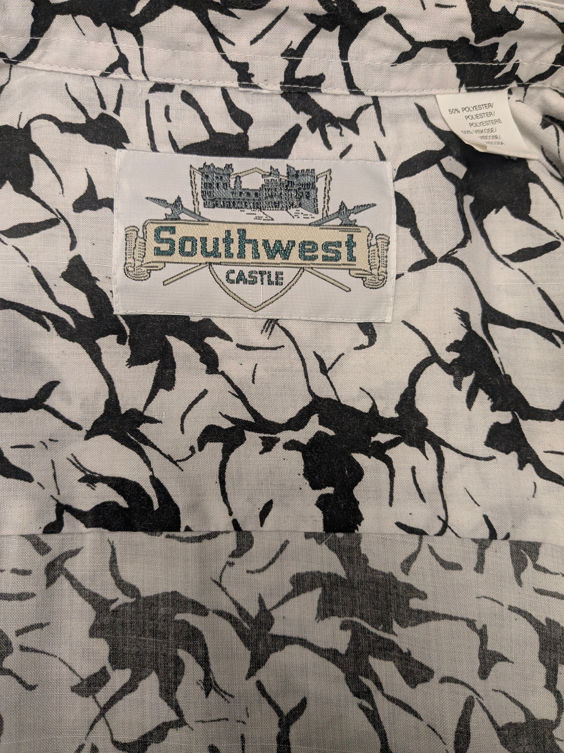 Vintage Southwest overhemd. zwart Witte print. Maat XL.