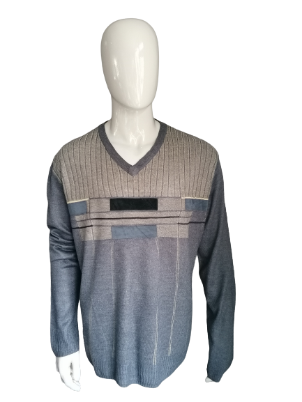Maglione vintage. Colore grigio marrone blu scuro. Taglia XL.