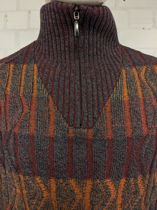 Magitore vintage di lana di Francesco Morri con cerniera. Colorato grigio arancione rosso. Taglia XL. 50% lana.
