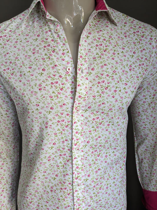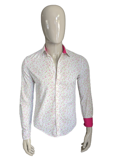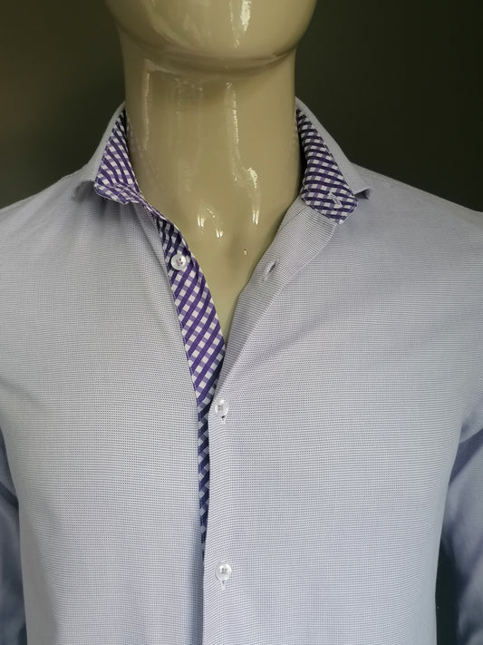 `We Fashion Shirt. Motivo bianco viola. Taglia 39 / M. Slim Fit.
