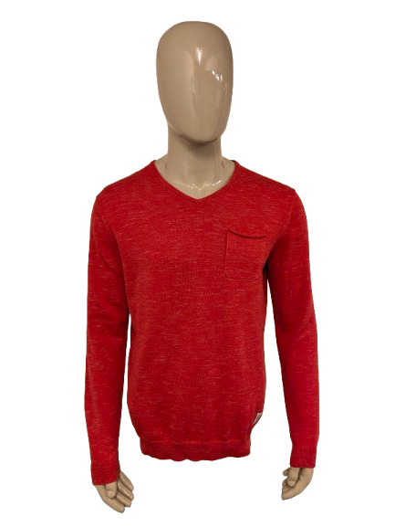 Tom Tailor Swater con scollo a V e taschpe per il seno. Mista rosa scuro. Taglia XL.