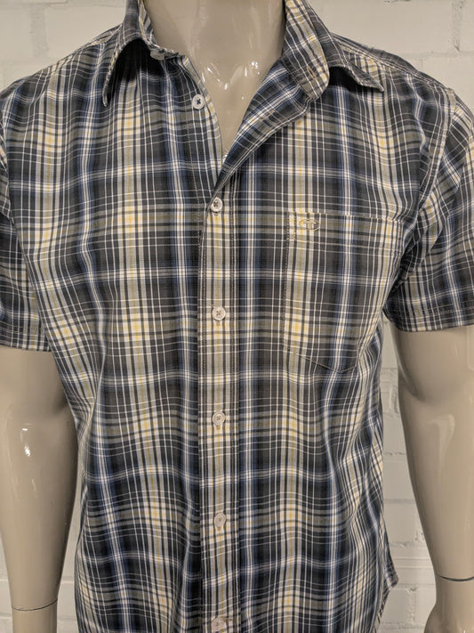 Camicia vintage Tom Tailor. Giallo Rosso Arancione Marrone striato. Taglia L.