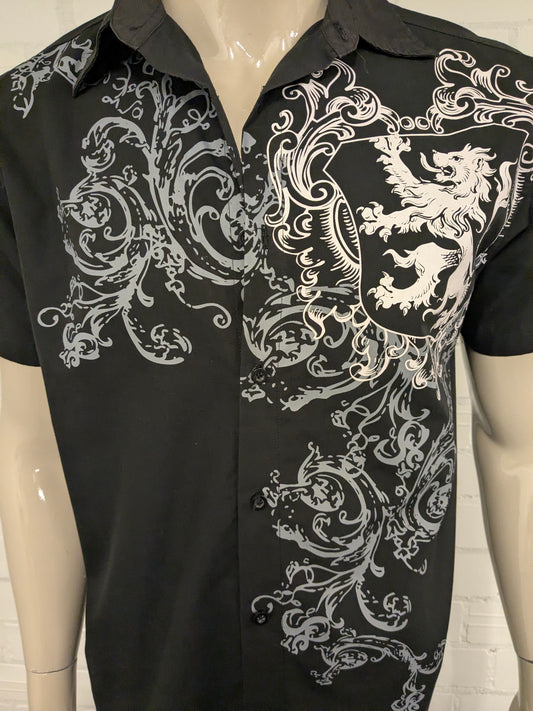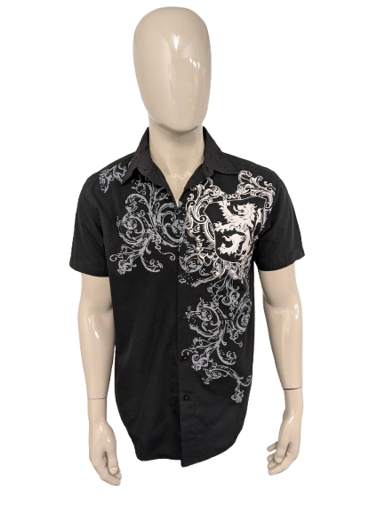 Polo vintage Kingsroad Shirt con cerniera. Stampa in bianco e nero. Dimensione 3xl / xxxl.