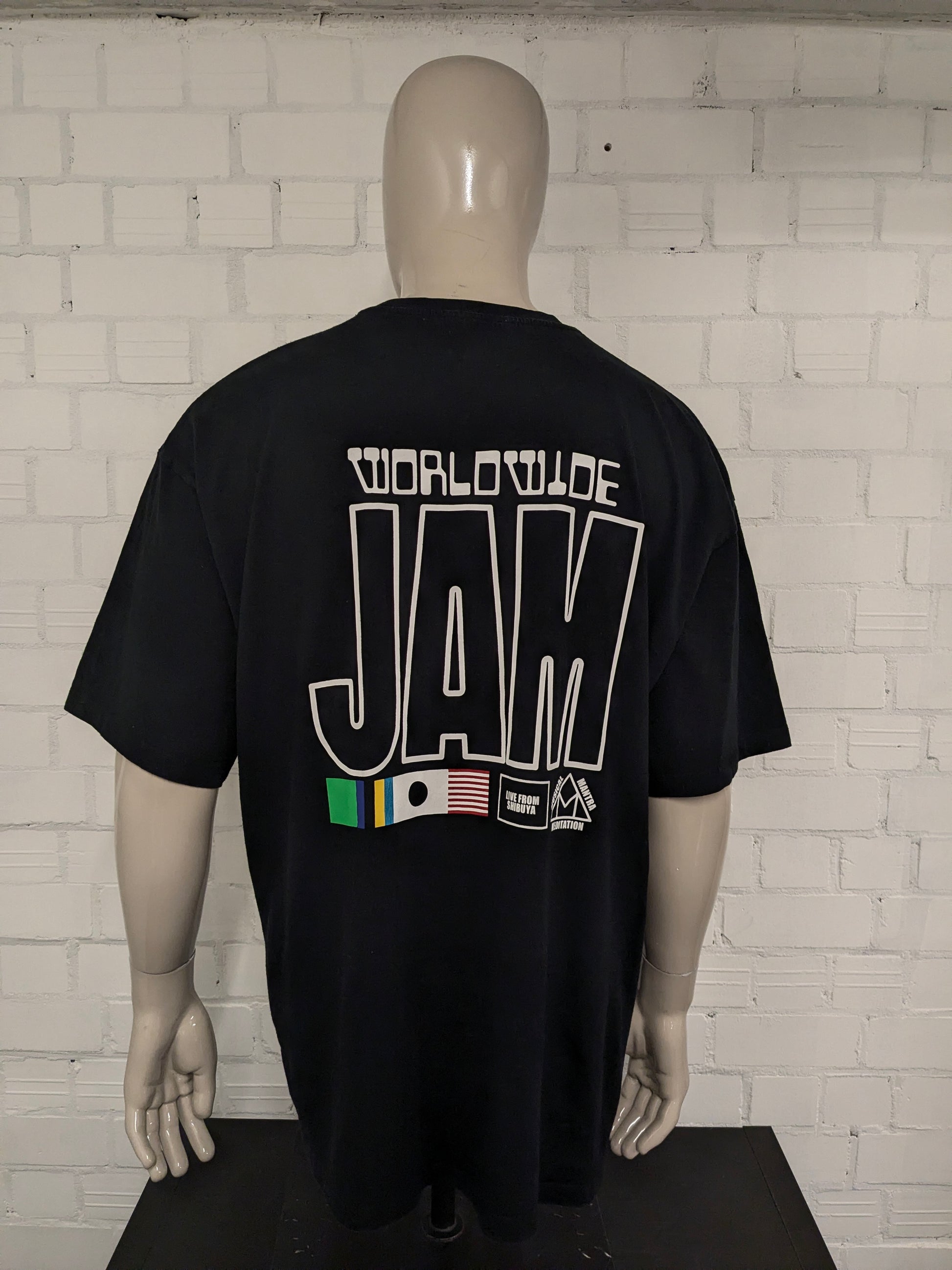 Edwin "Musical Mantra Meditation" shirt. Zwart met opdruk. Maat 2XL / XXL.