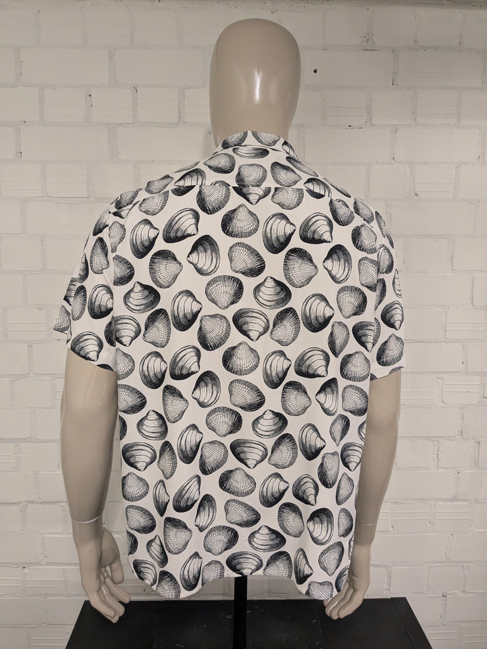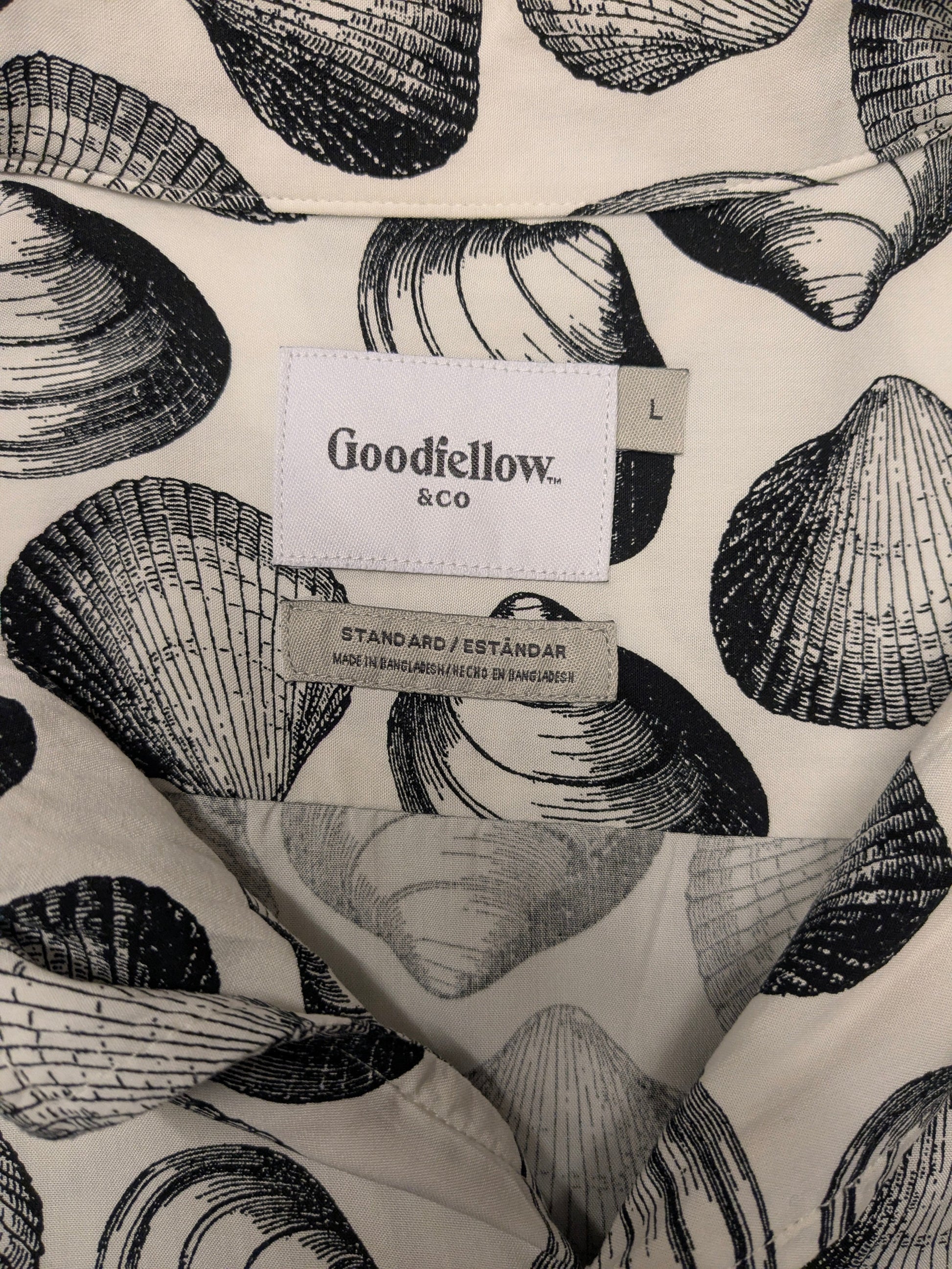 Goodfellow & Co overhemd korte mouw. Zwart Beige schelpen print. Maat XL.
