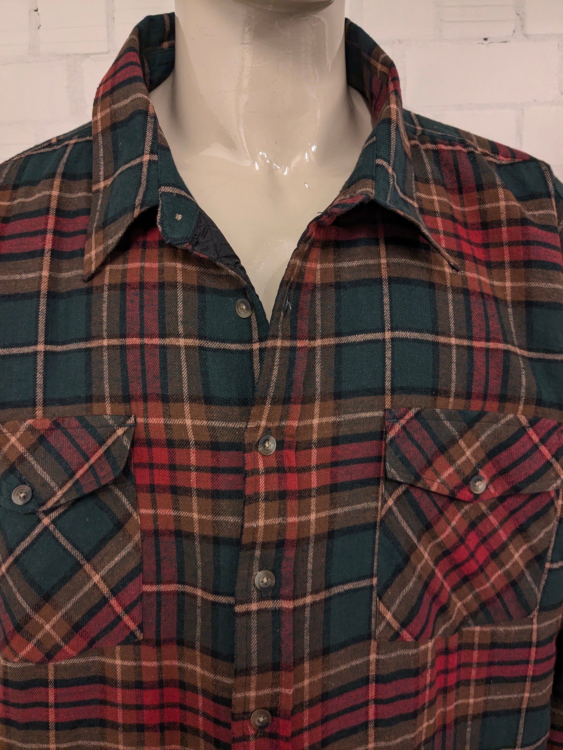 Harbor Bay gevoerd Flanellen overhemd. Rood Groen Bruin geruit. Maat 6XL.