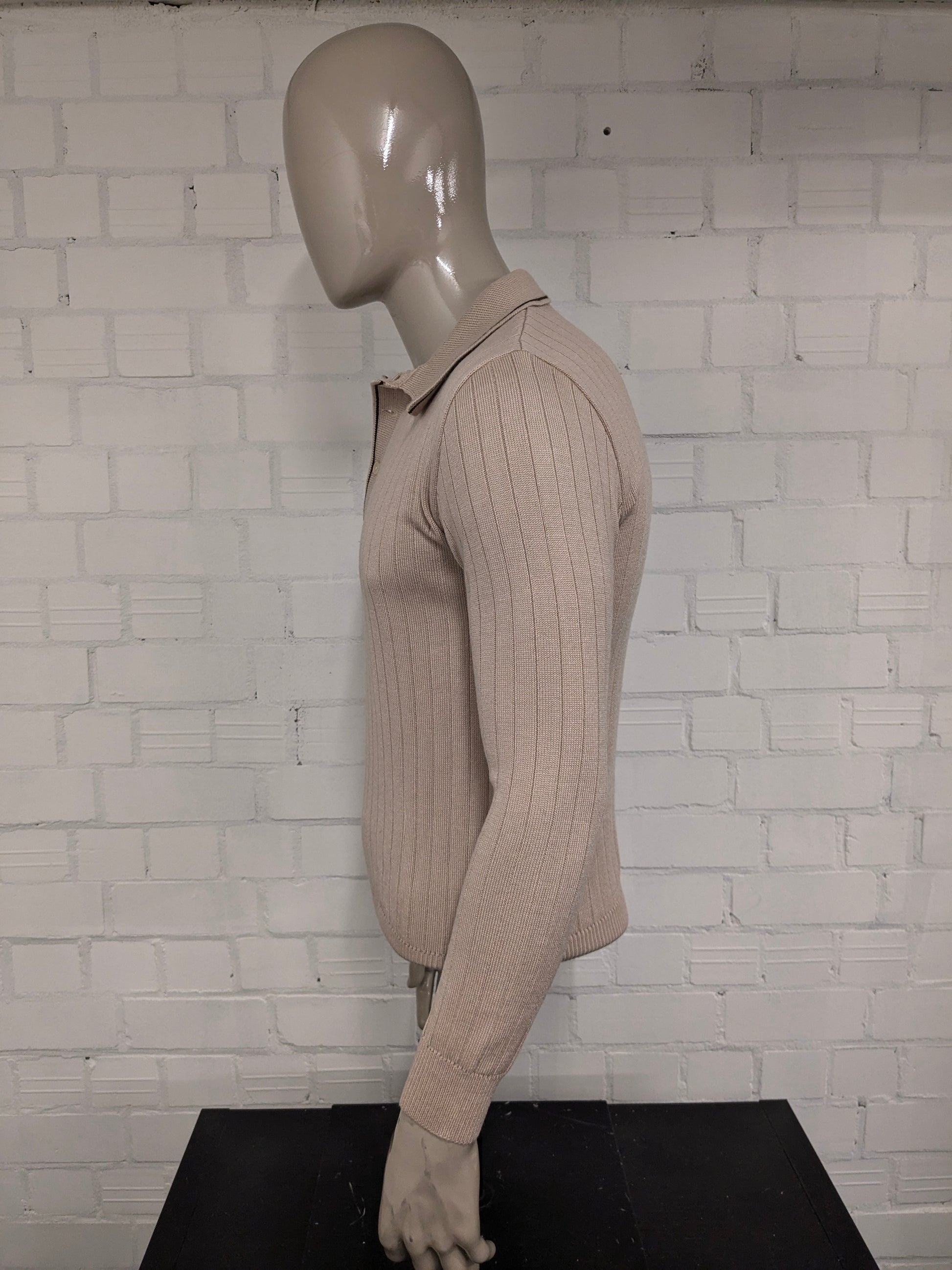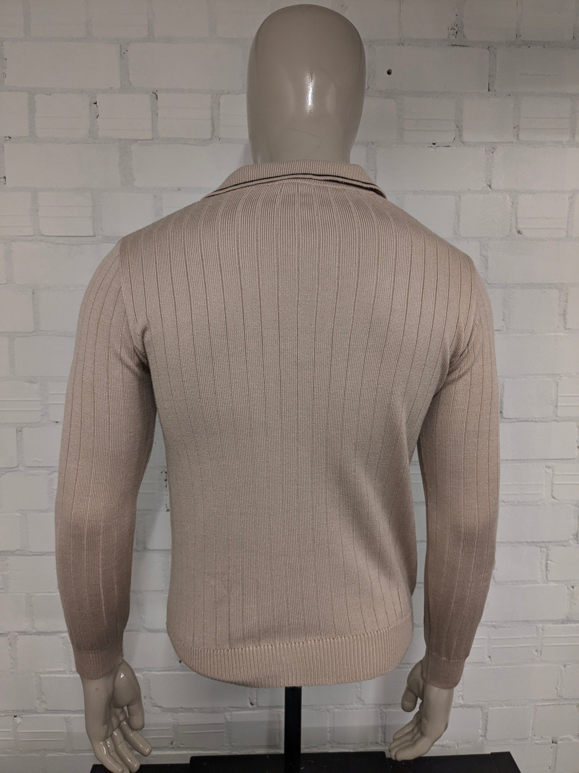 Maglia polo Jet Set vintage anni '70 con colletto a punta. Colore beige. Taglia M.