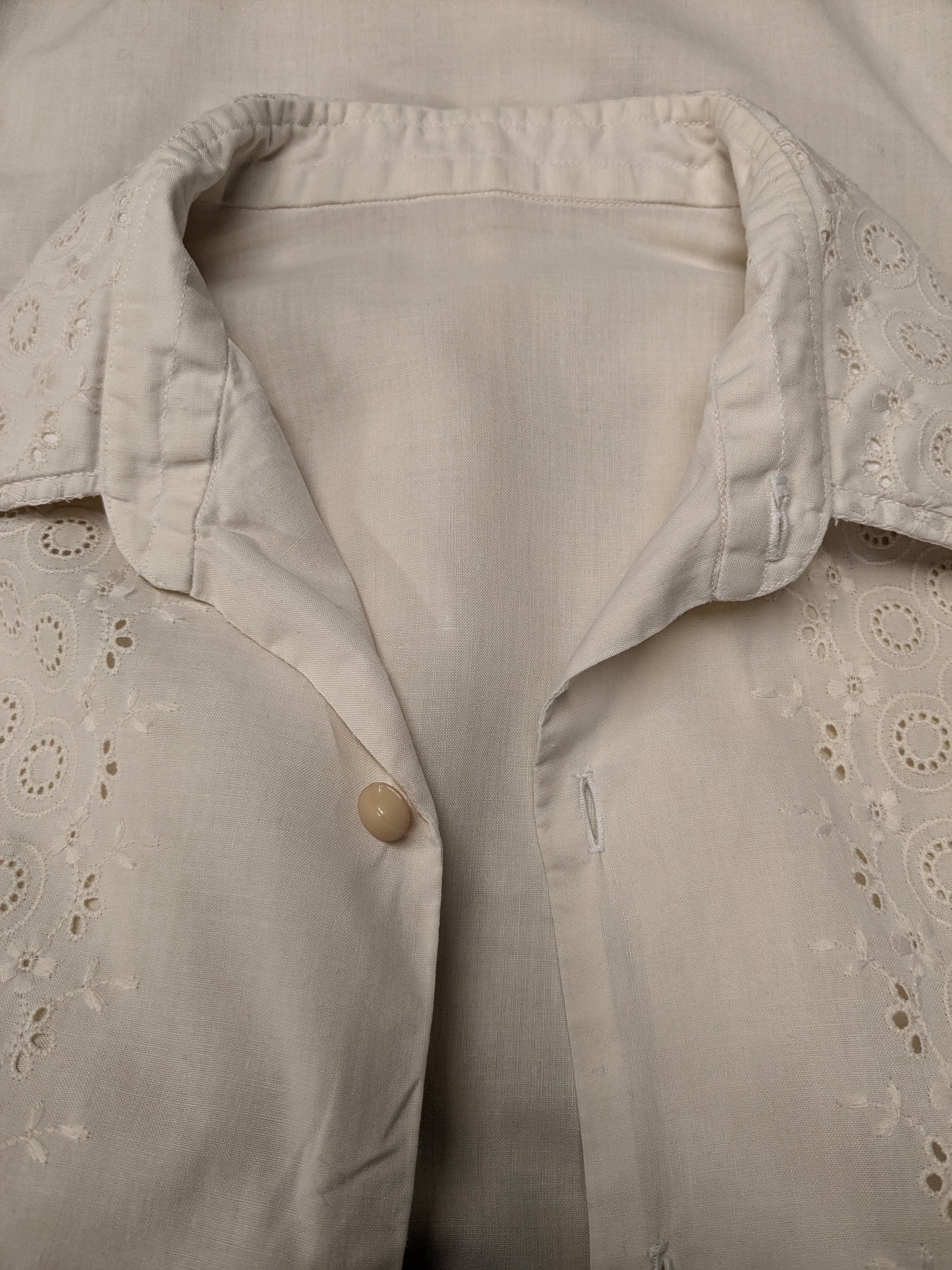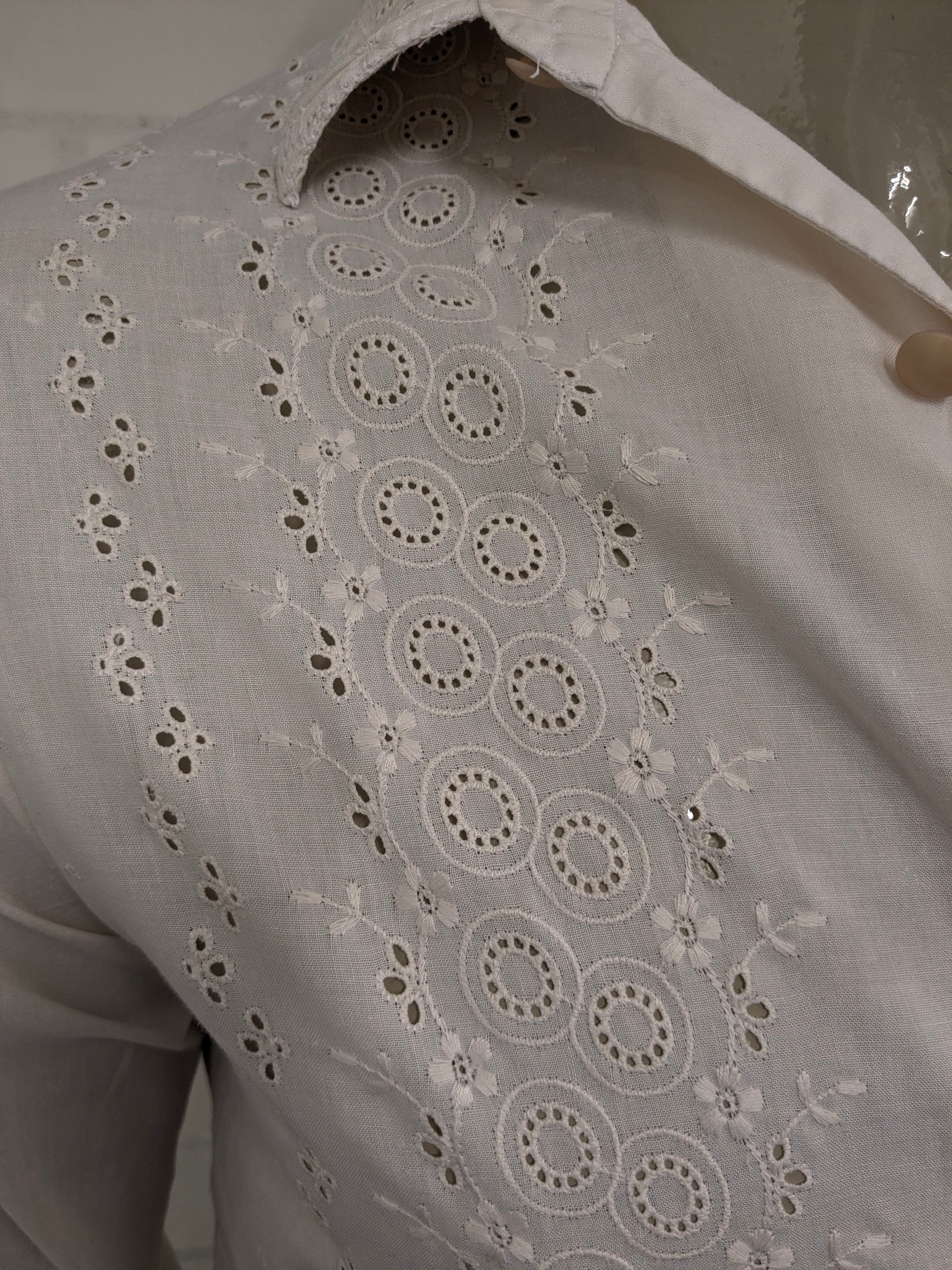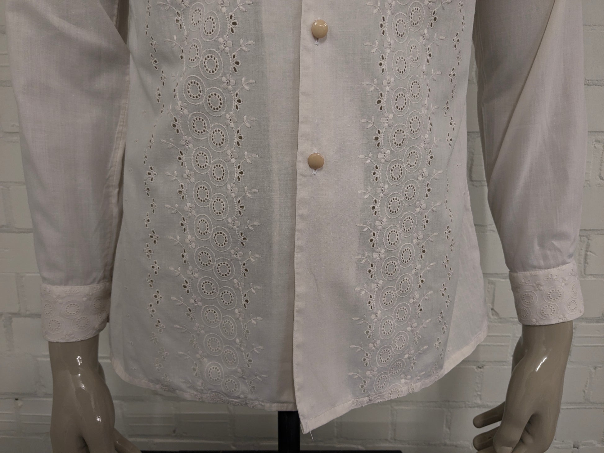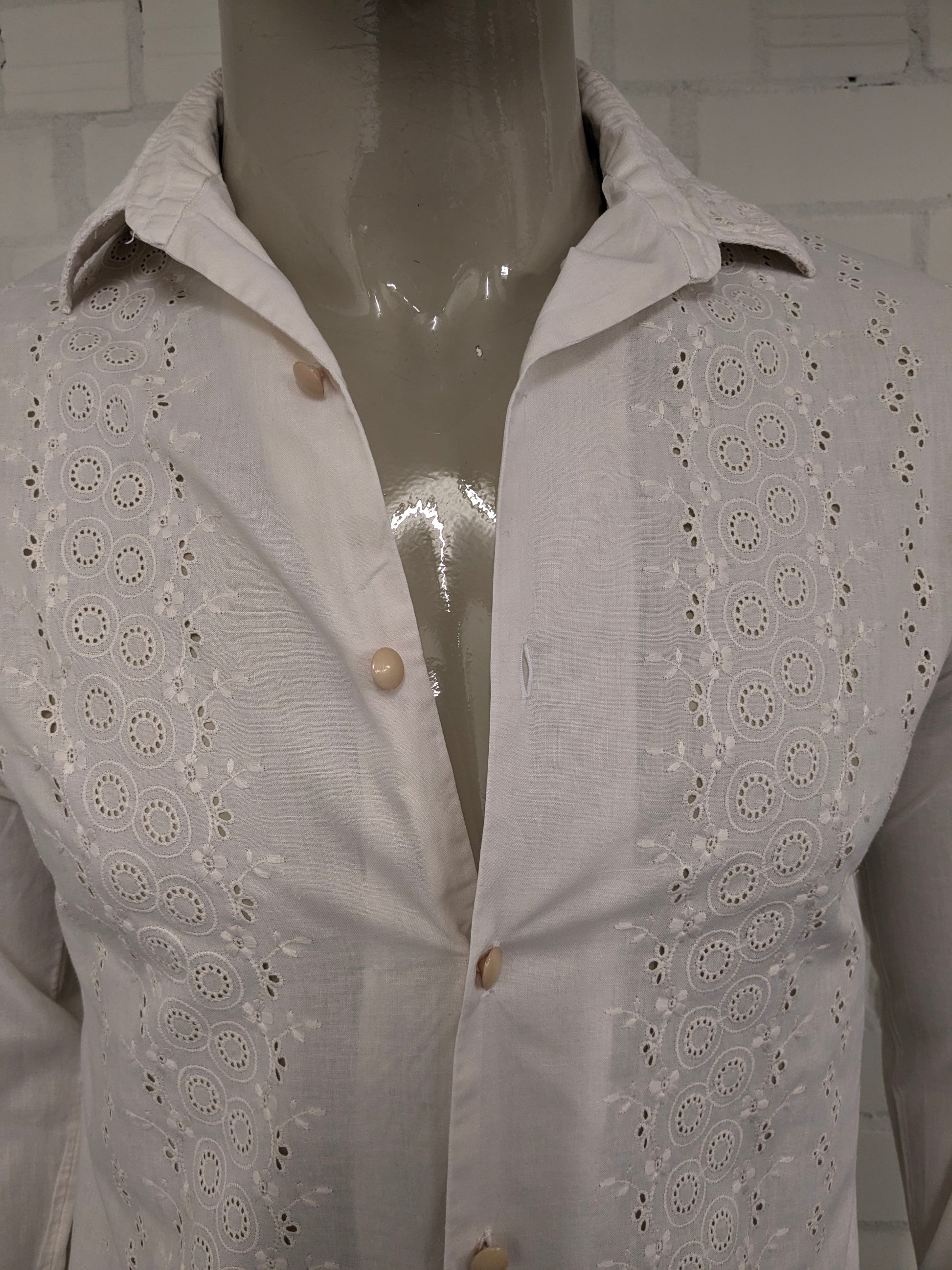 Camicia vintage degli anni '70. Beige con dettagli in pizzo. Taglia M. Slimt fit.