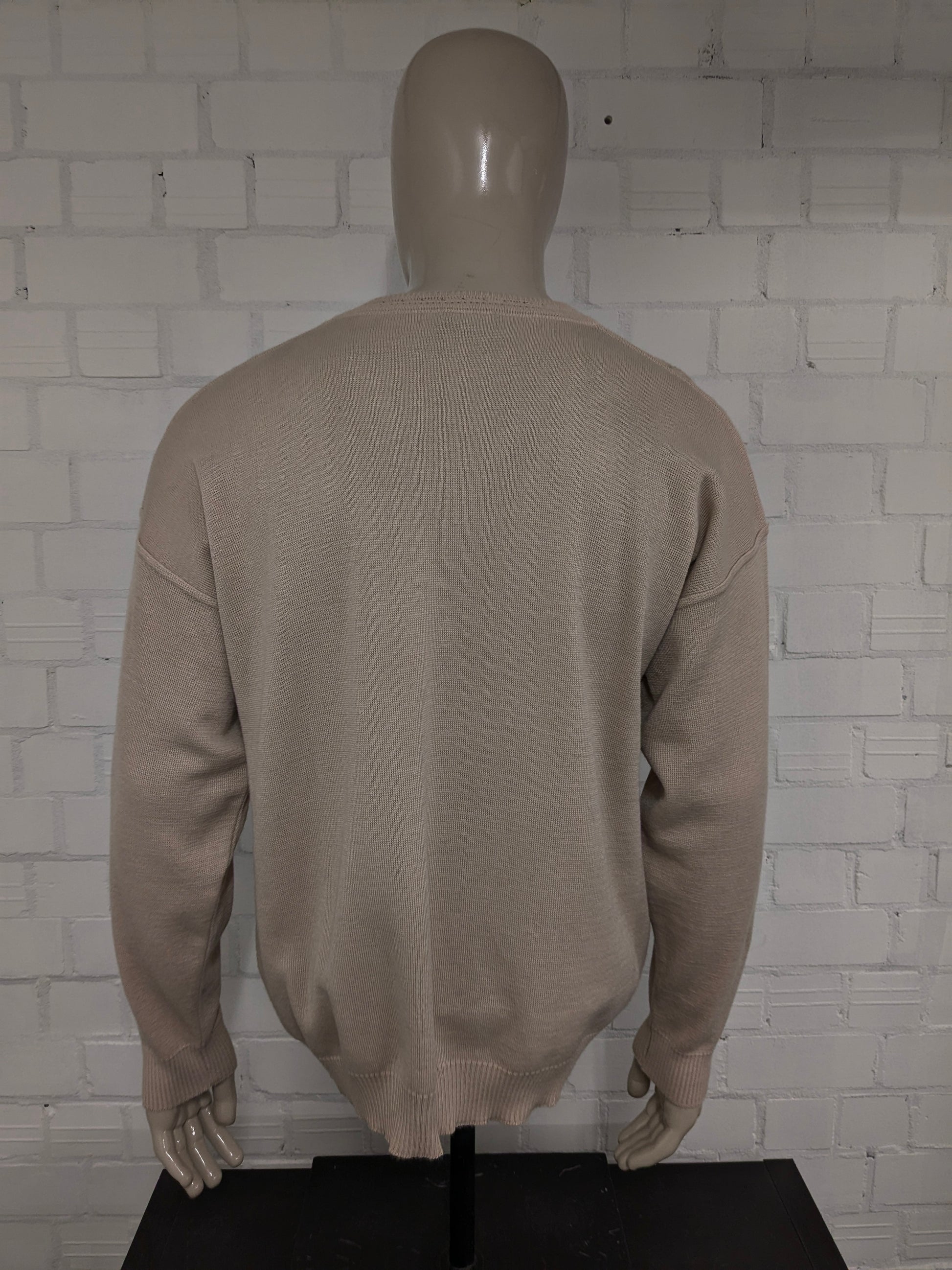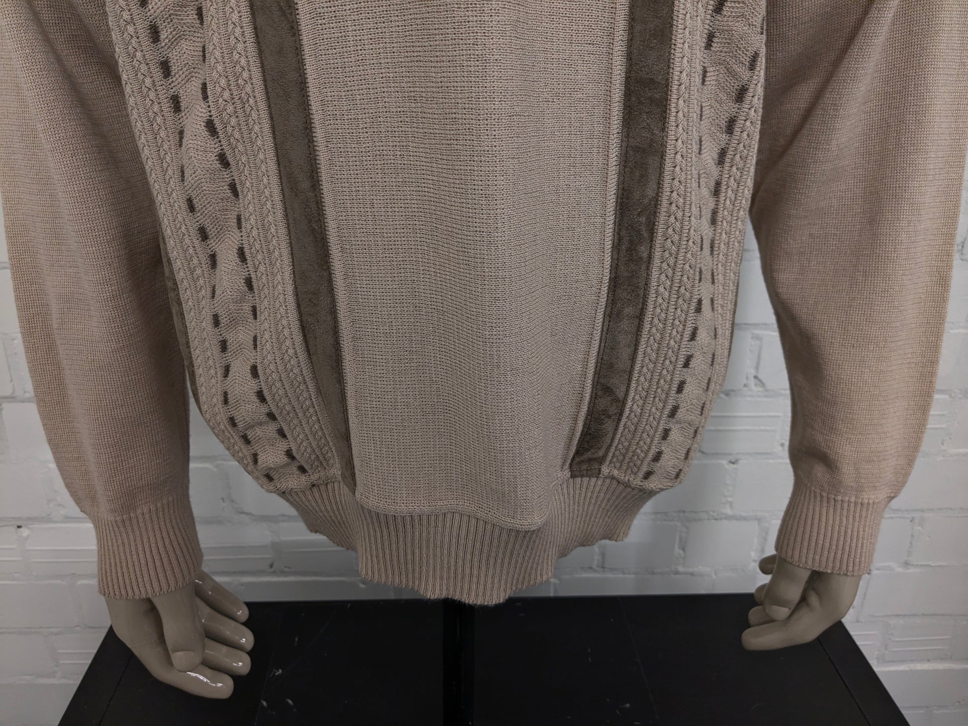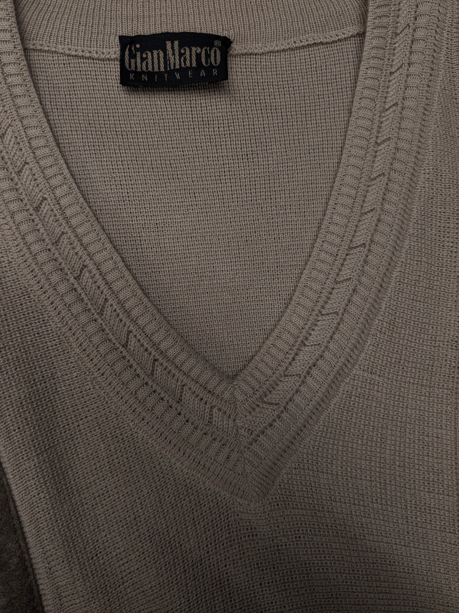 Sighi di lana Gian Marco vintage con scollo a V. Beige Brown Colorato. Taglia XL. 50% lana.
