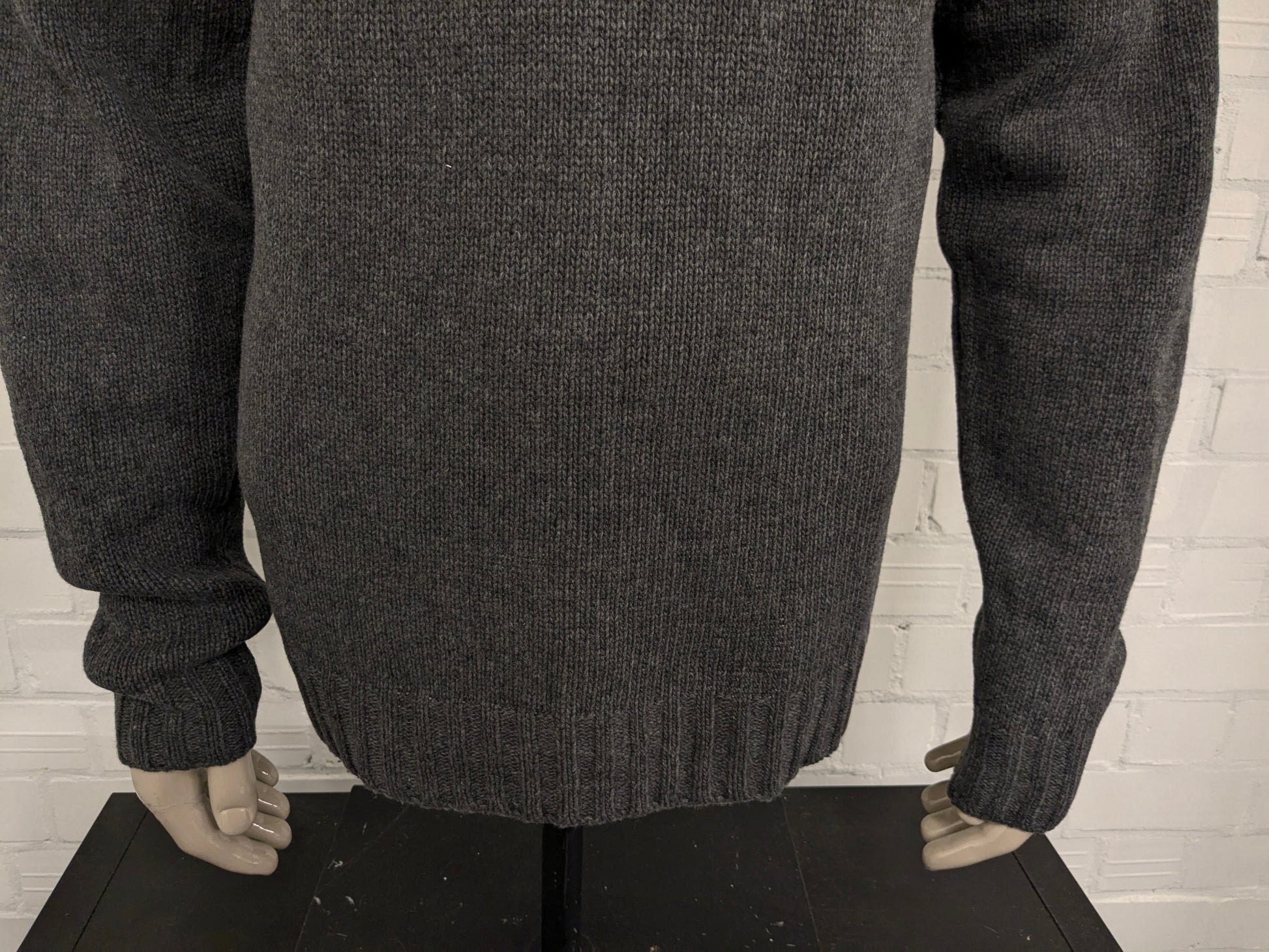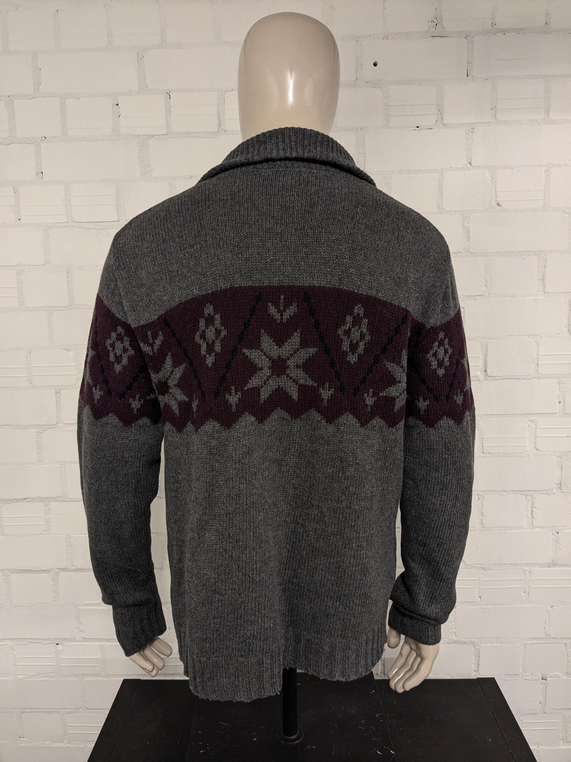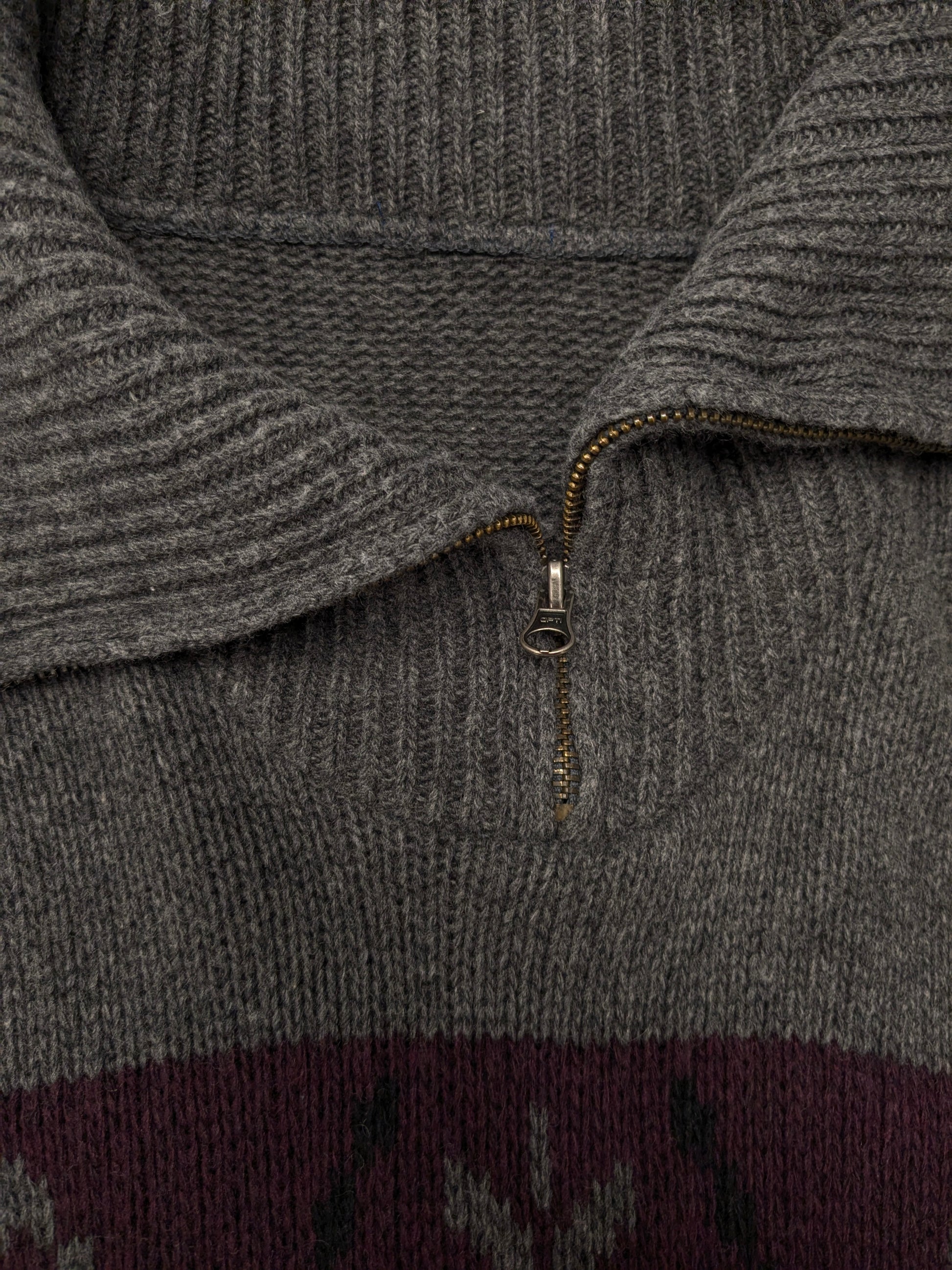 Maglione vintage in lana d'agnello con cerniera. Colore grigio viola nero. Taglia L. 30% Lana.