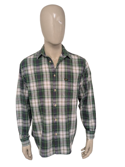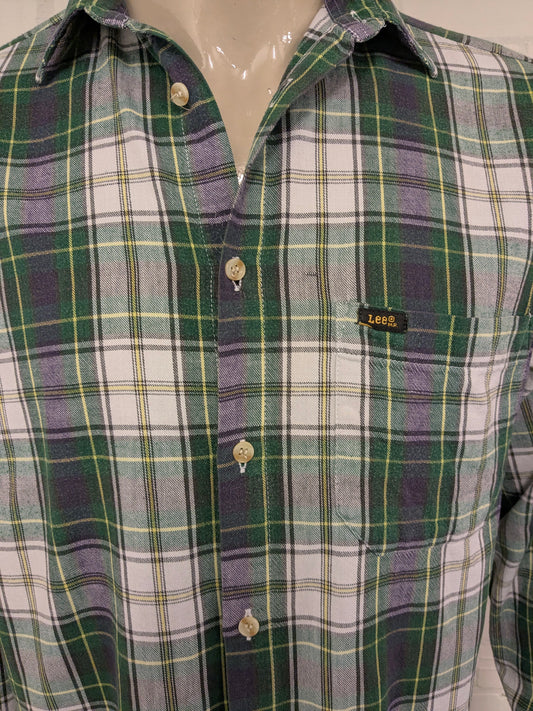 Vintage LEE overhemd. Groen Geel Paars geruit. Maat XL.