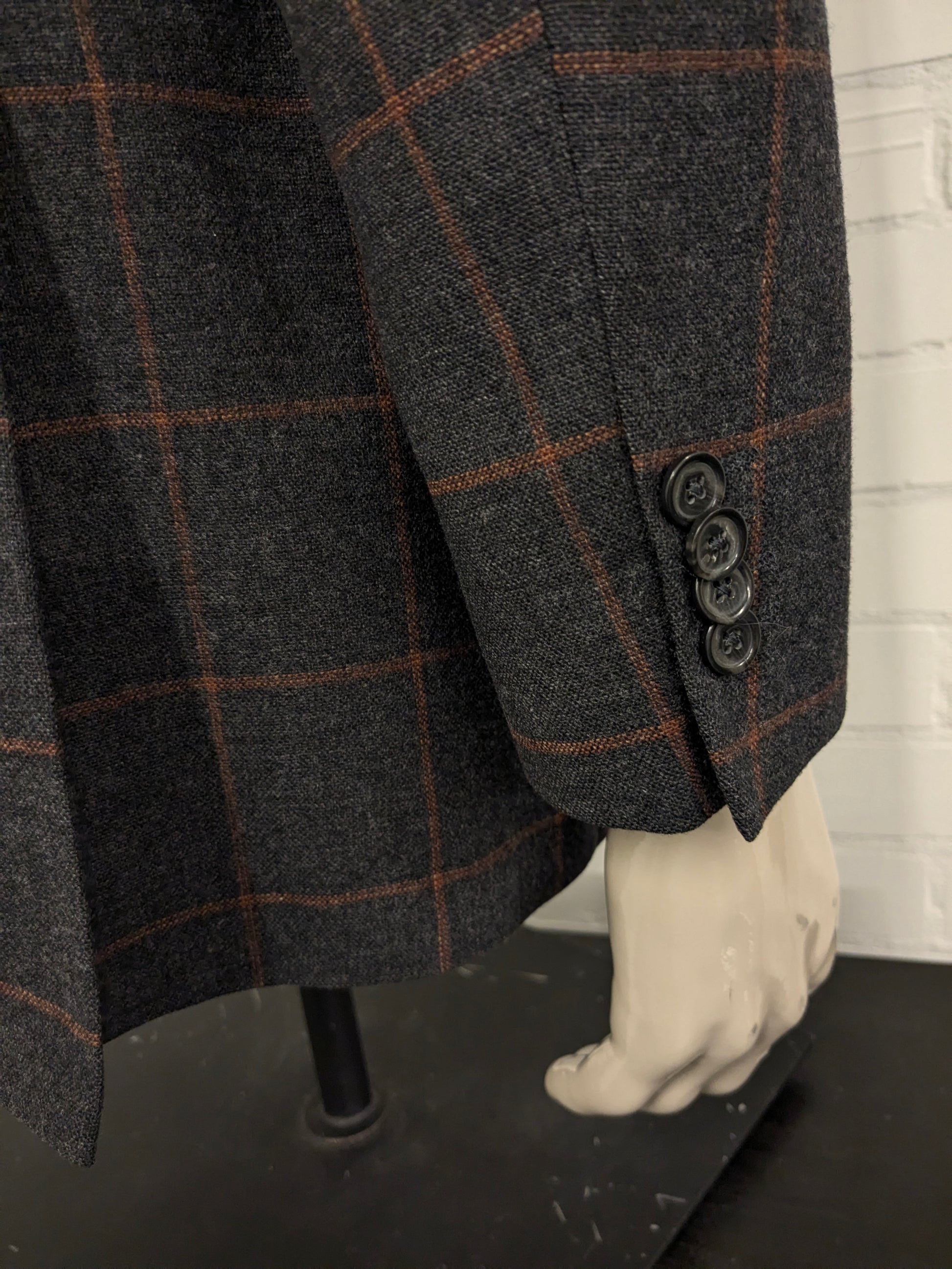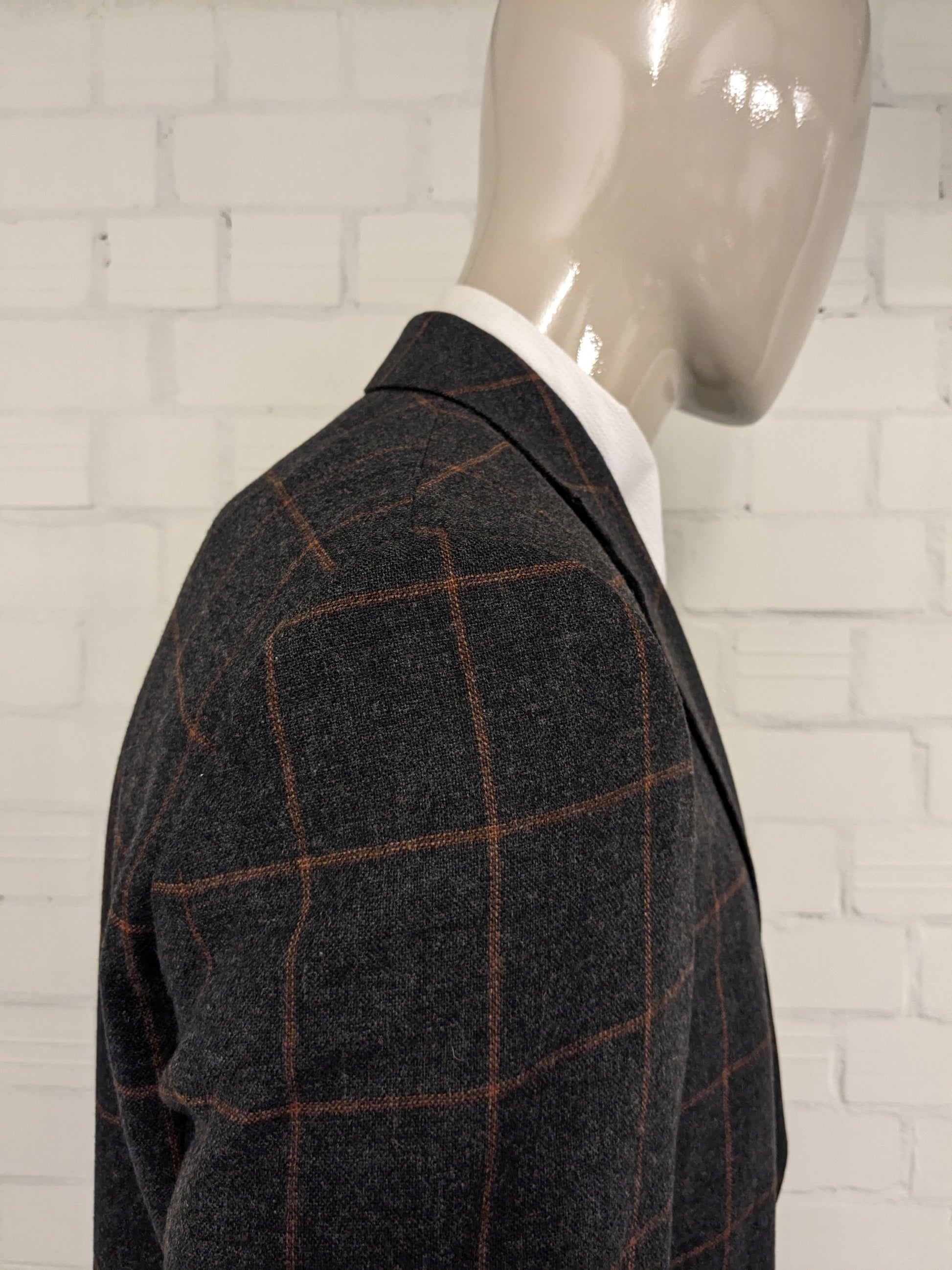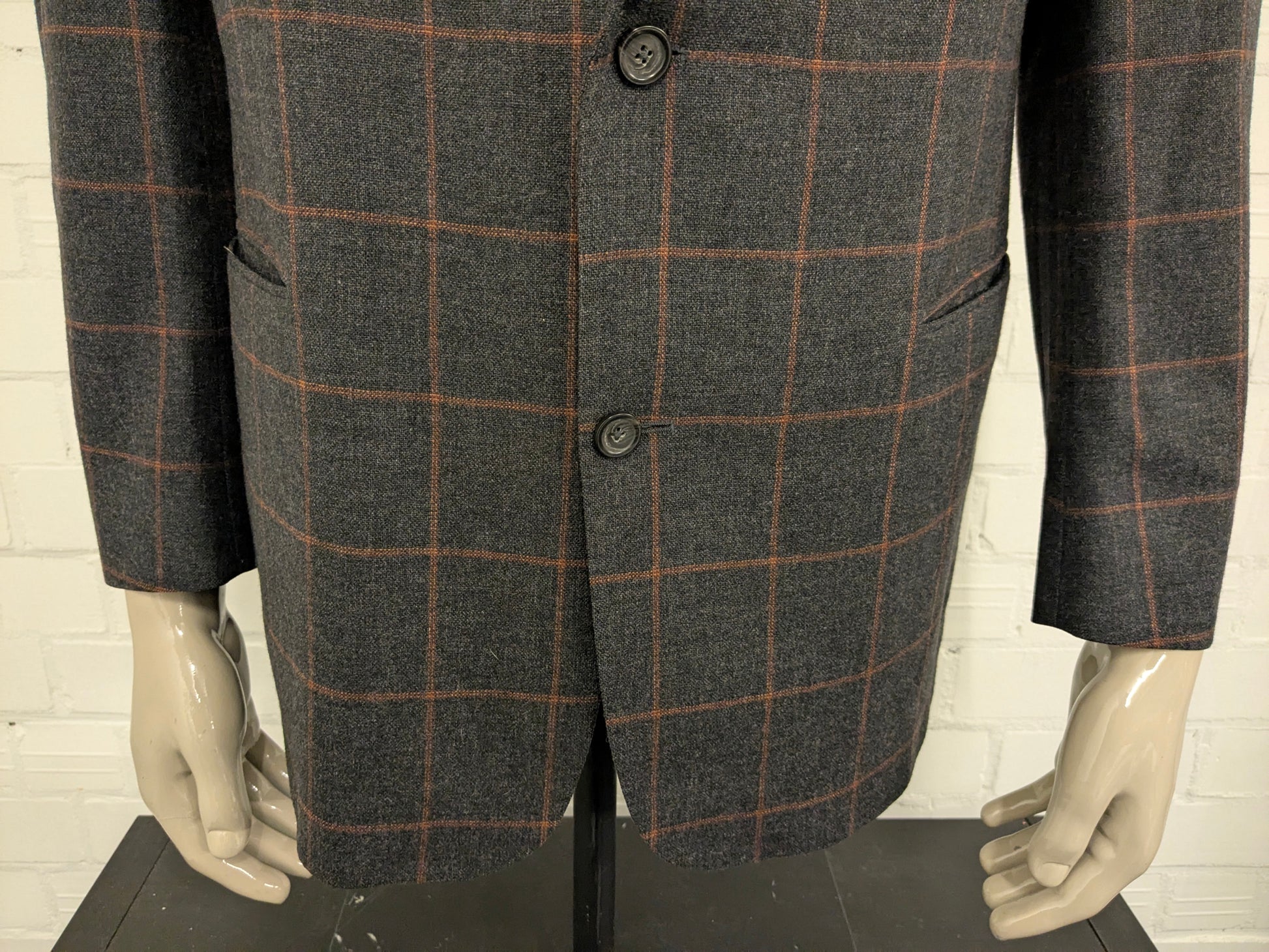 Eduard Dressler Wollen colbert. Bruin Oranje geruit. Maat 26 (52 / L).