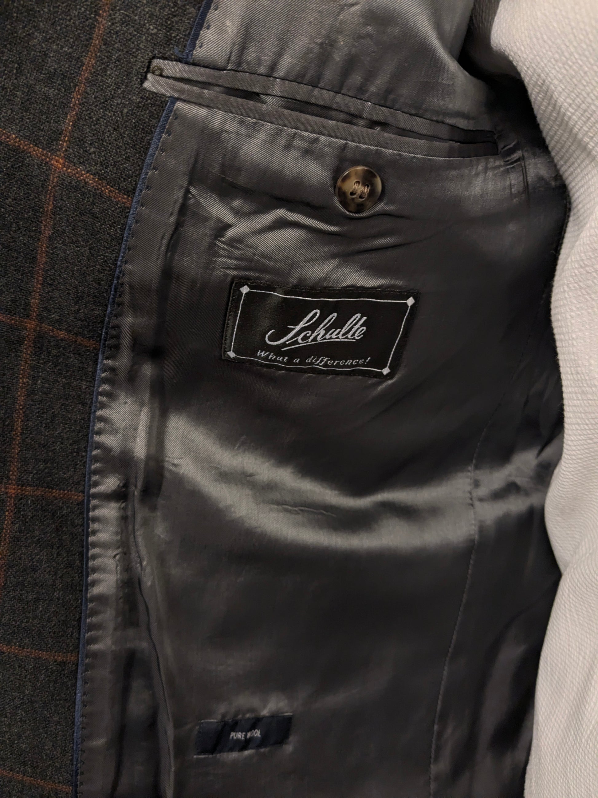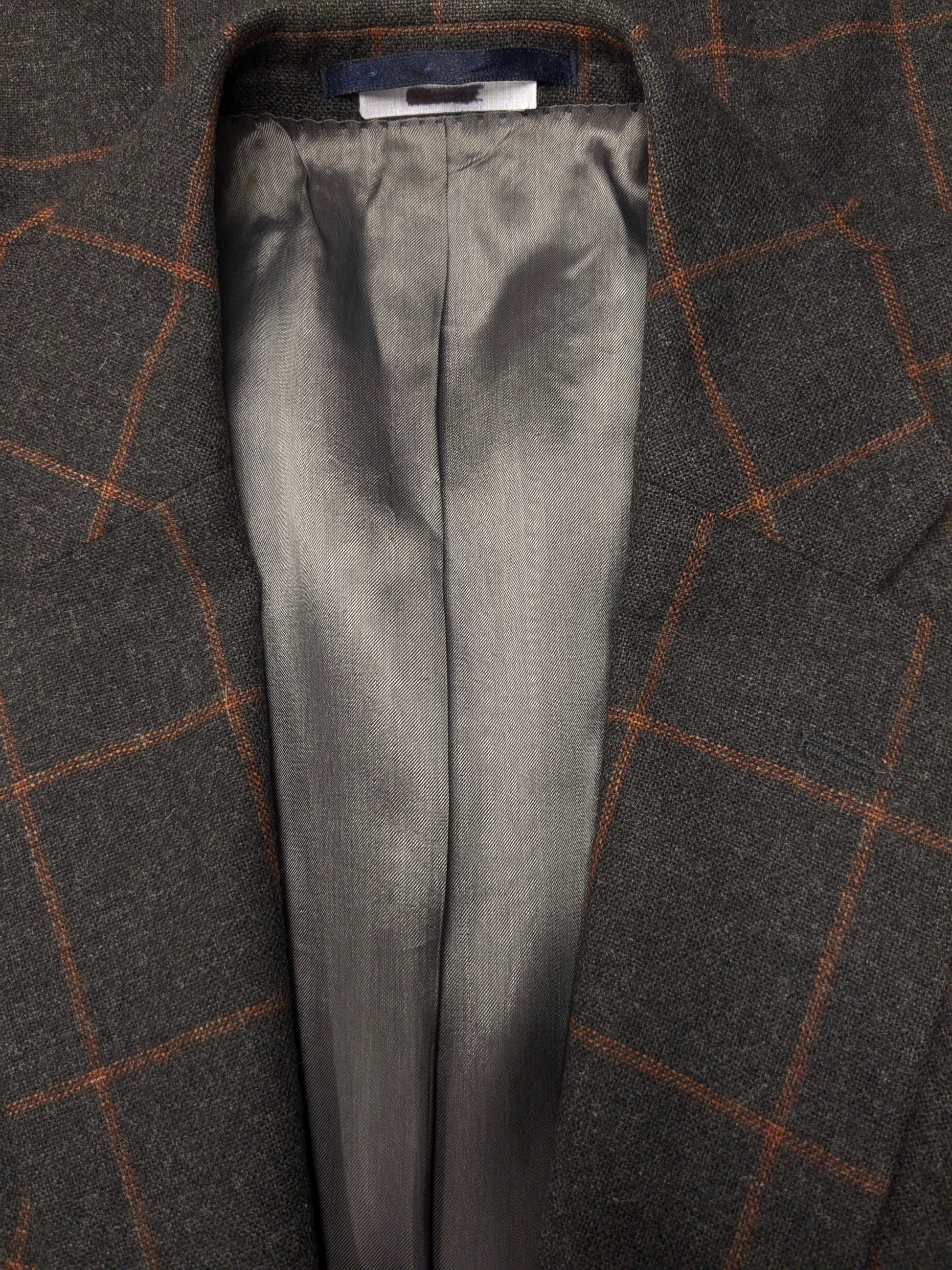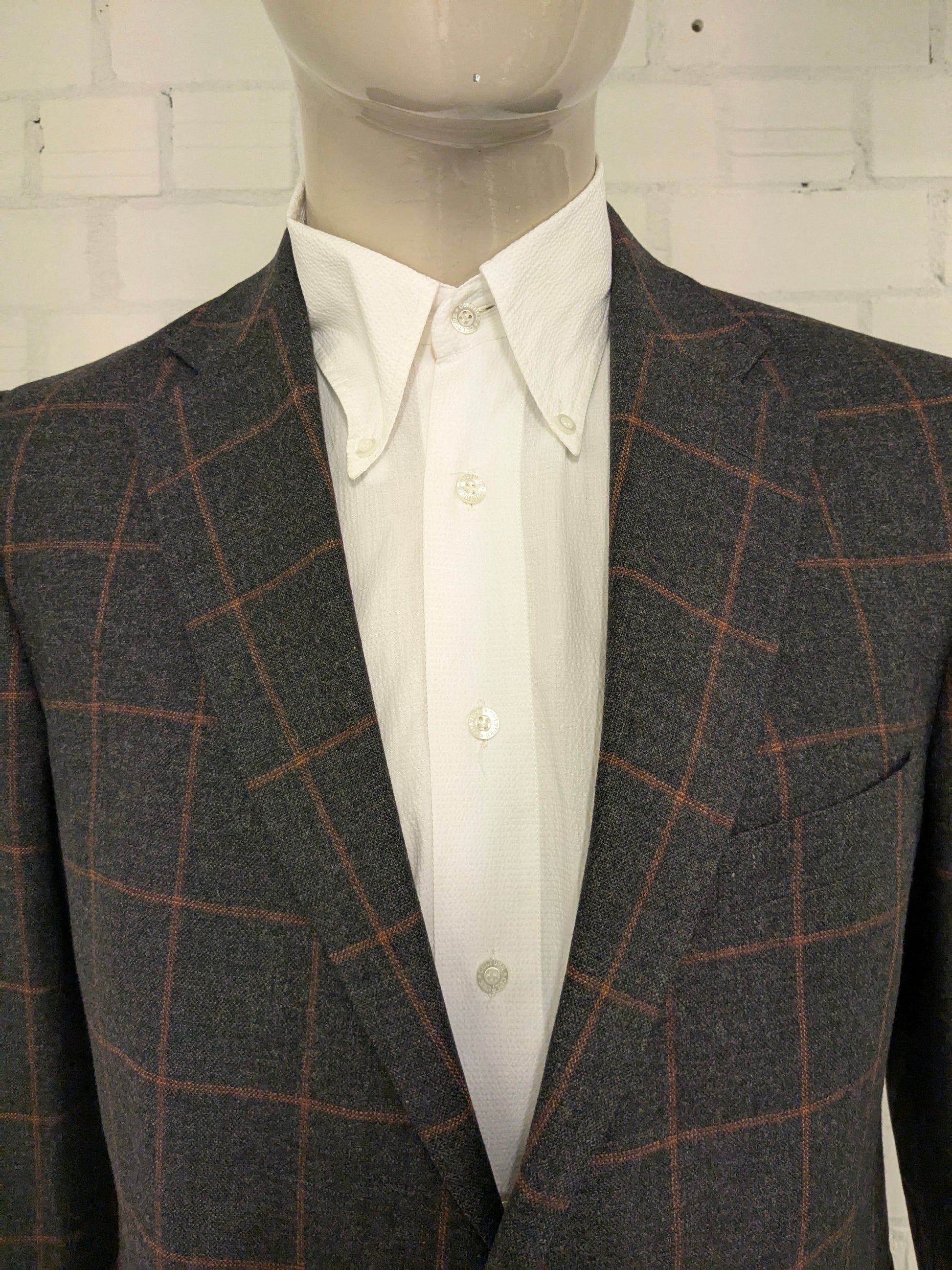 Eduard Dressler Wollen colbert. Bruin Oranje geruit. Maat 26 (52 / L).