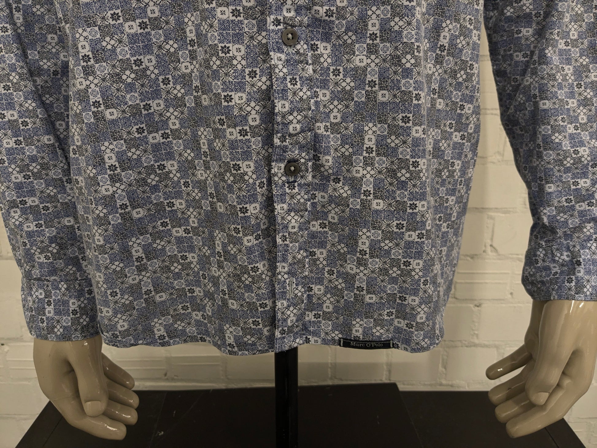 Marc o'Polo overhemd. Blauw Zwart Witte print. Maat 2XL / XXL. shaped fit.