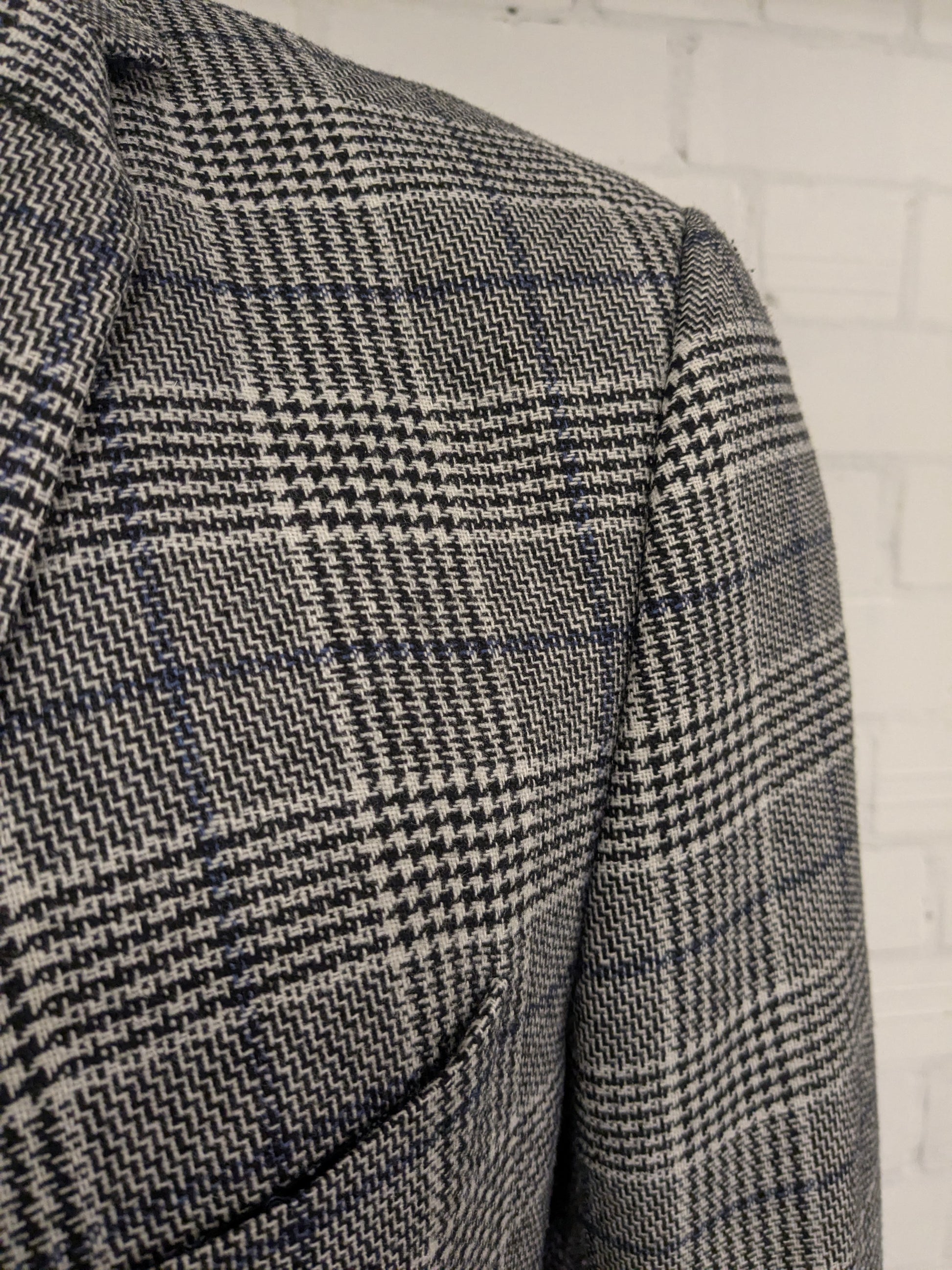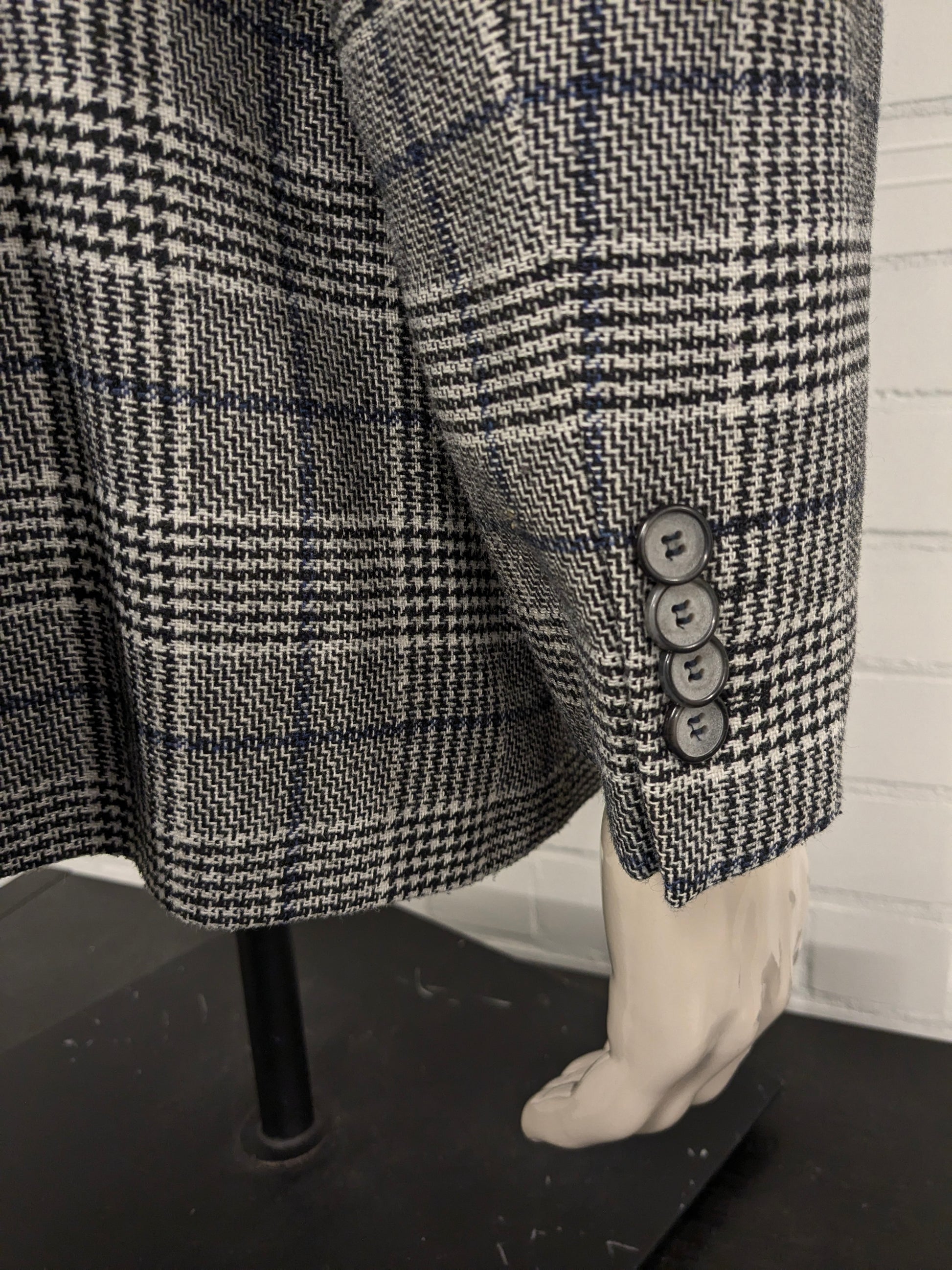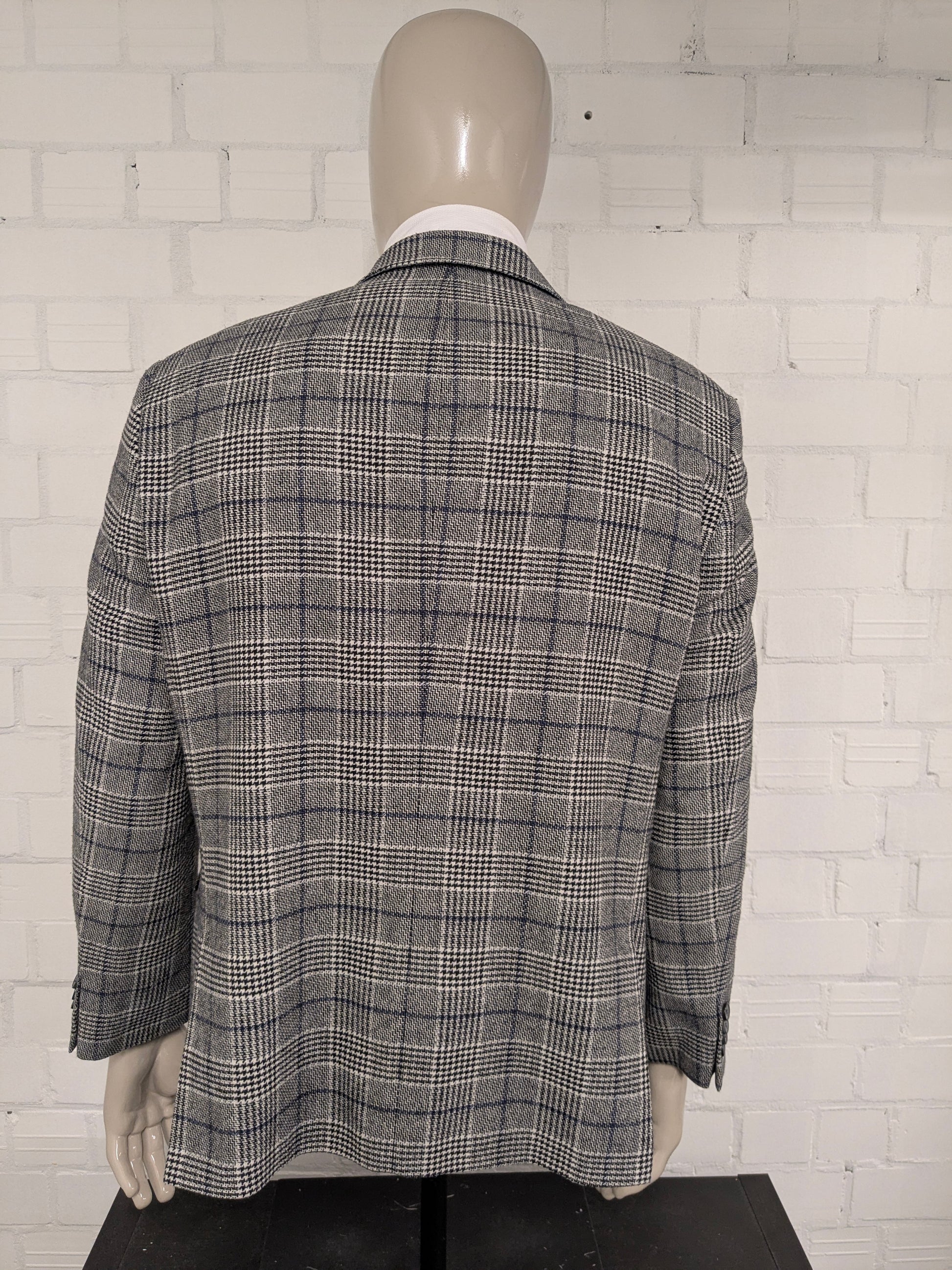 Pierre Cardin Wollen colbert. Zwart Beige Blauw geruit. Maat 27. (54 / L).