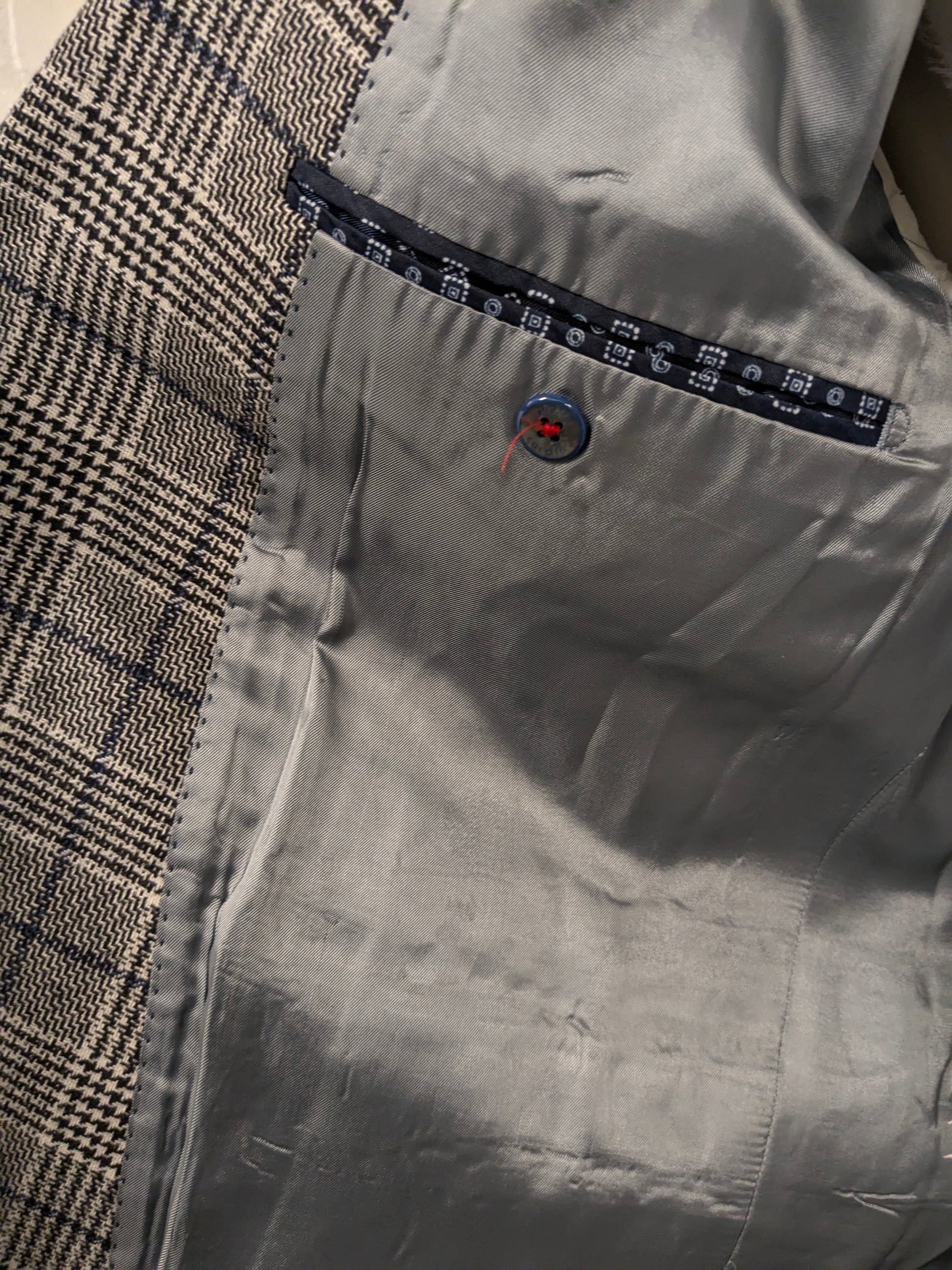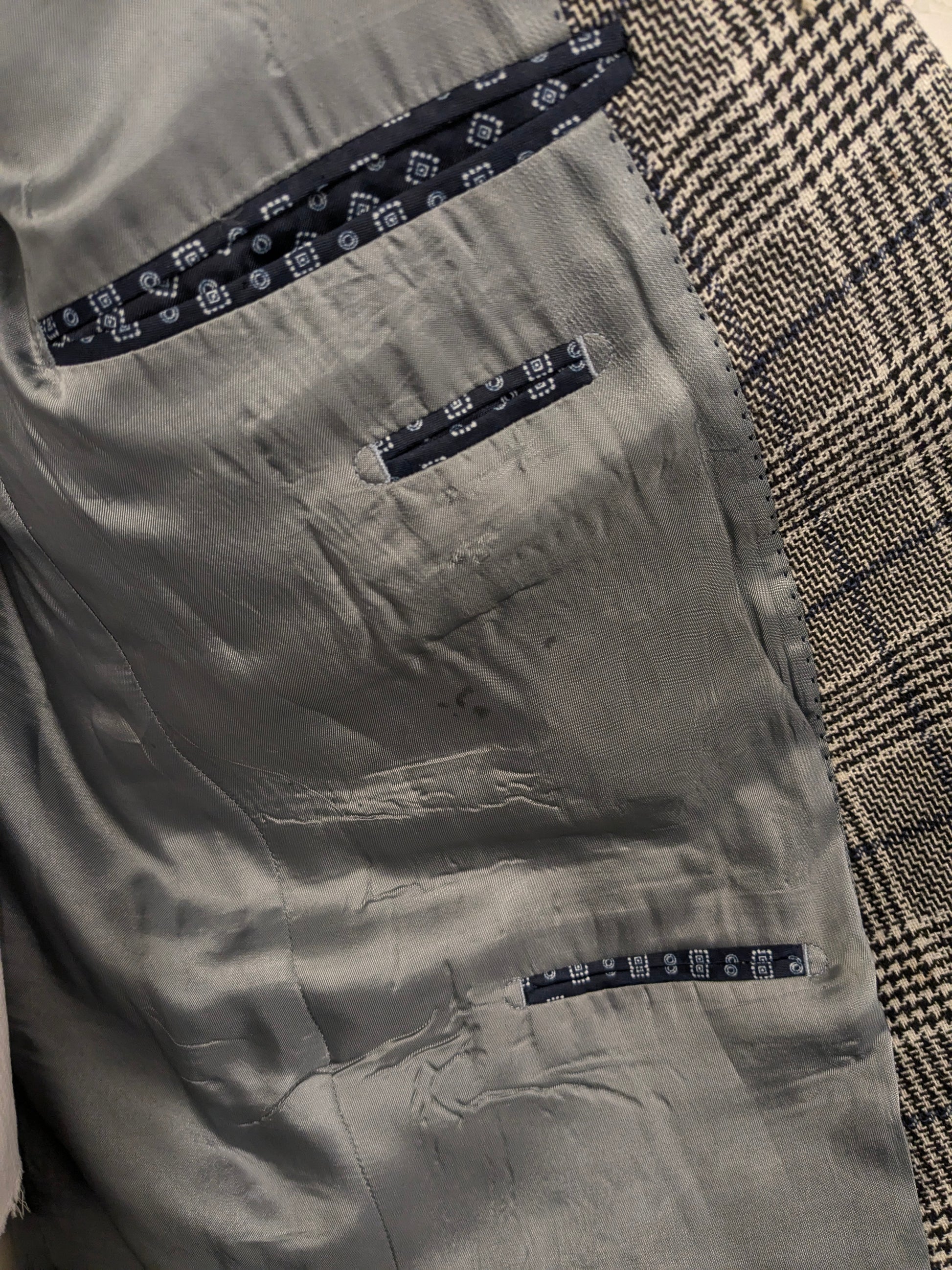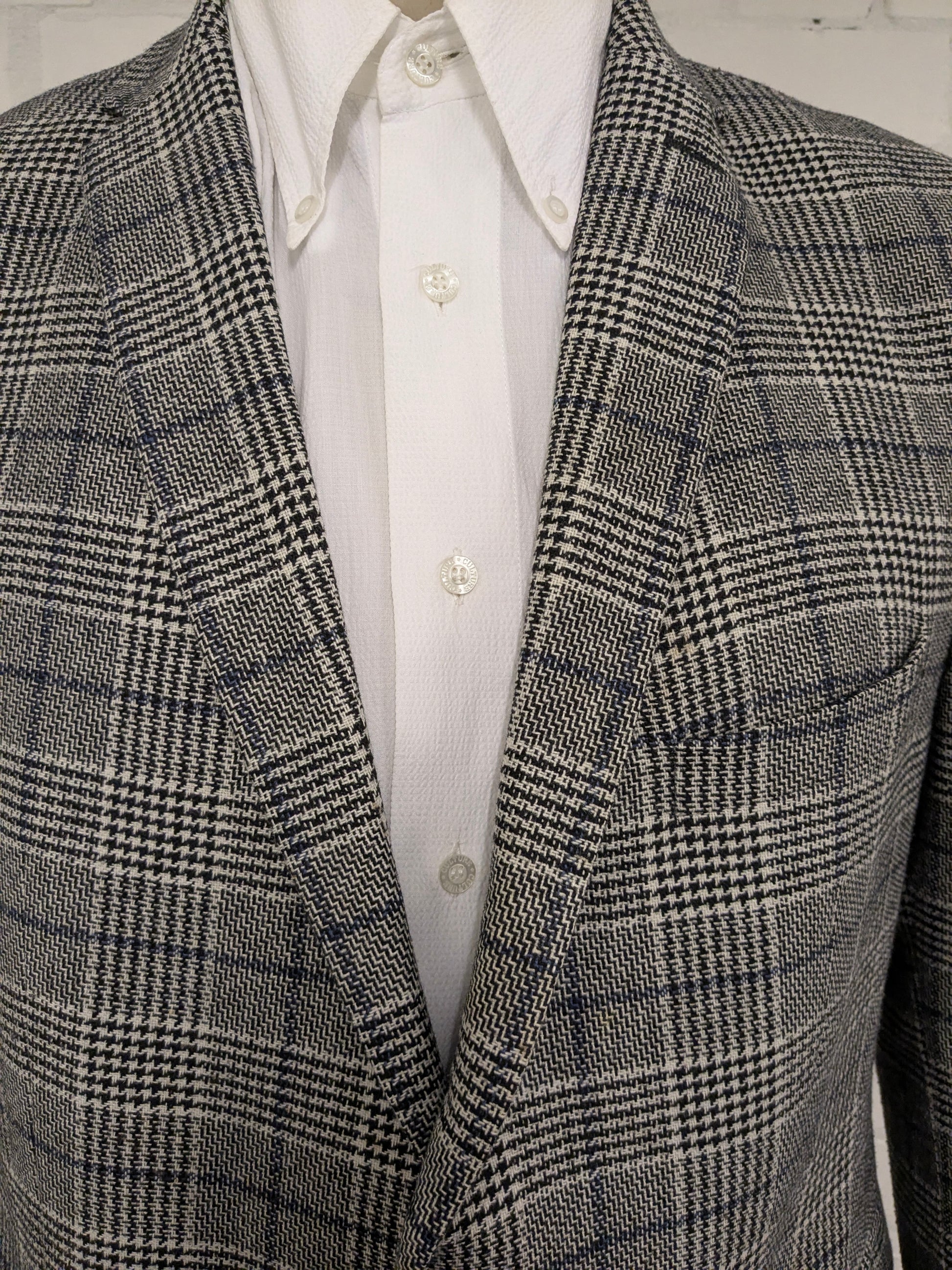 Pierre Cardin Wollen colbert. Zwart Beige Blauw geruit. Maat 27. (54 / L).