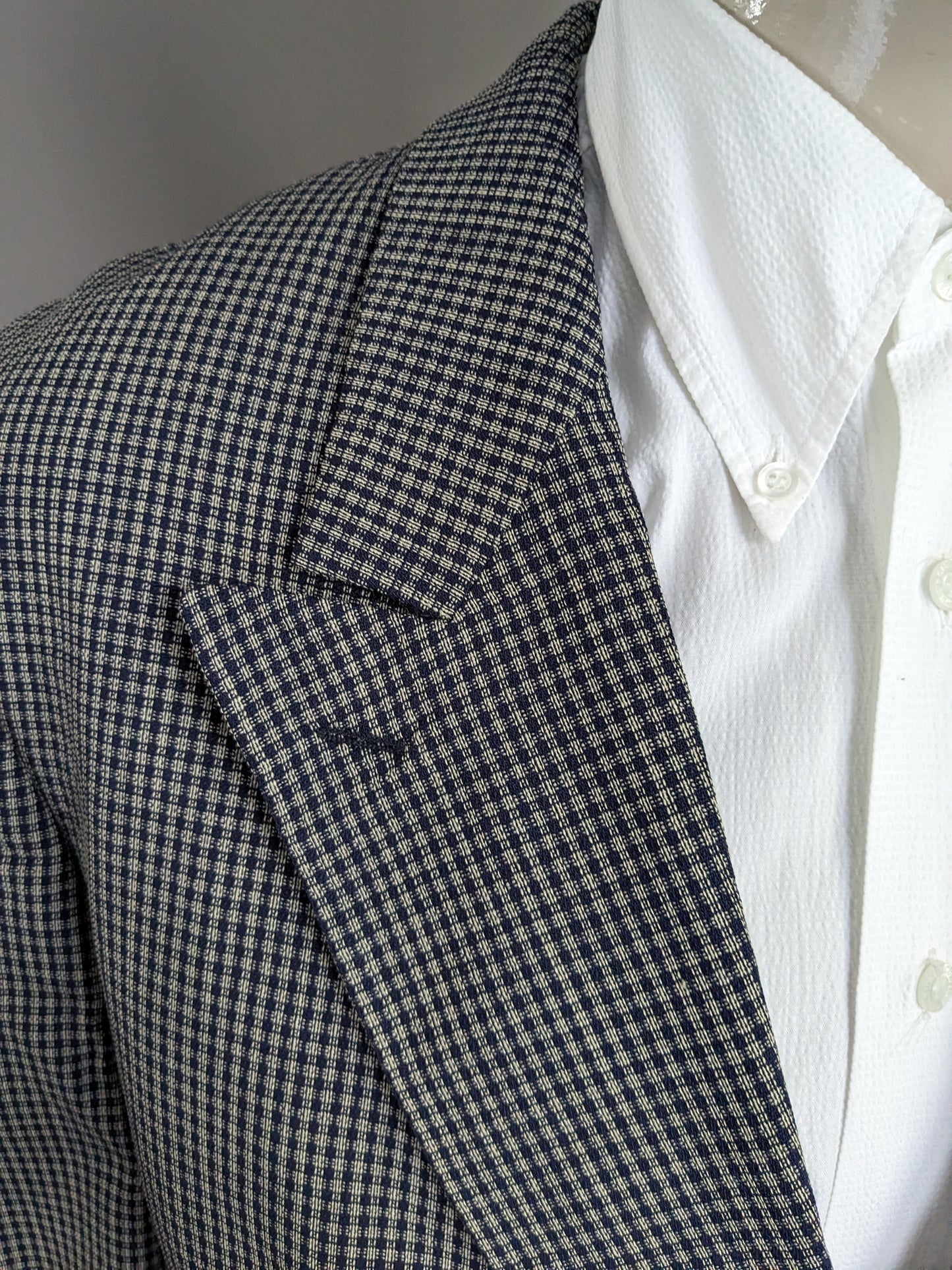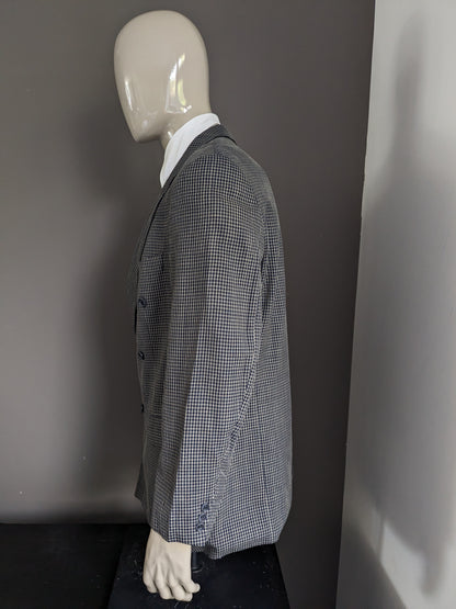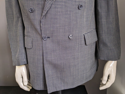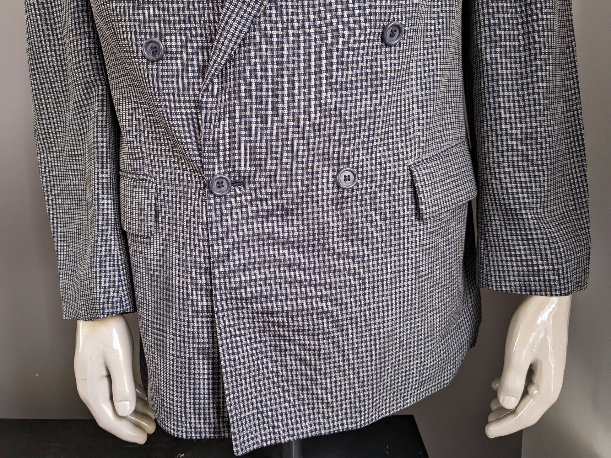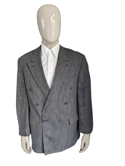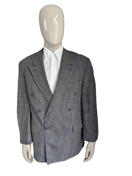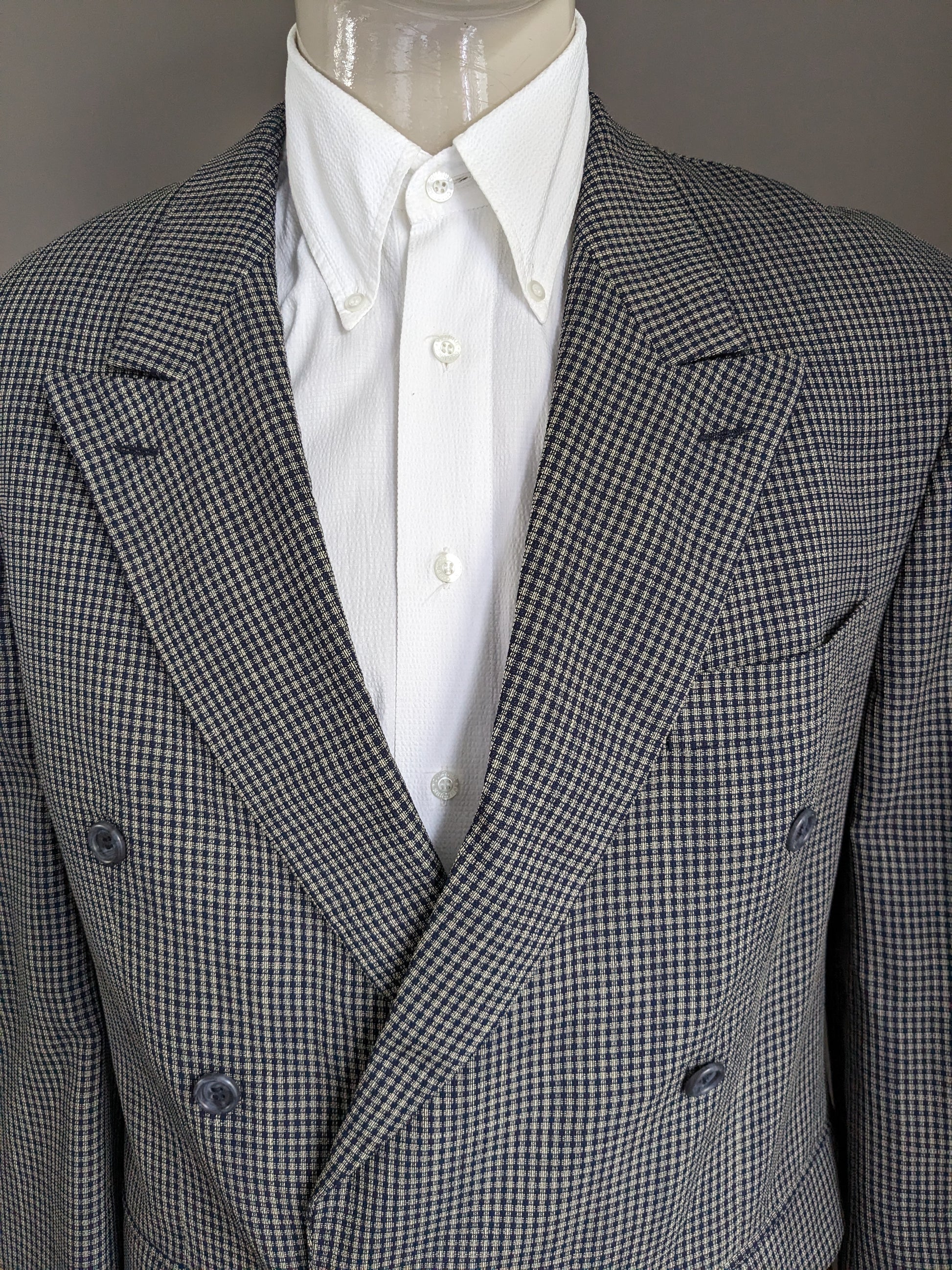 Van Gils Vintage Double Breasted Wollen colbert met punt revers. Grijs Blauw geruit. Maat 54 / L.