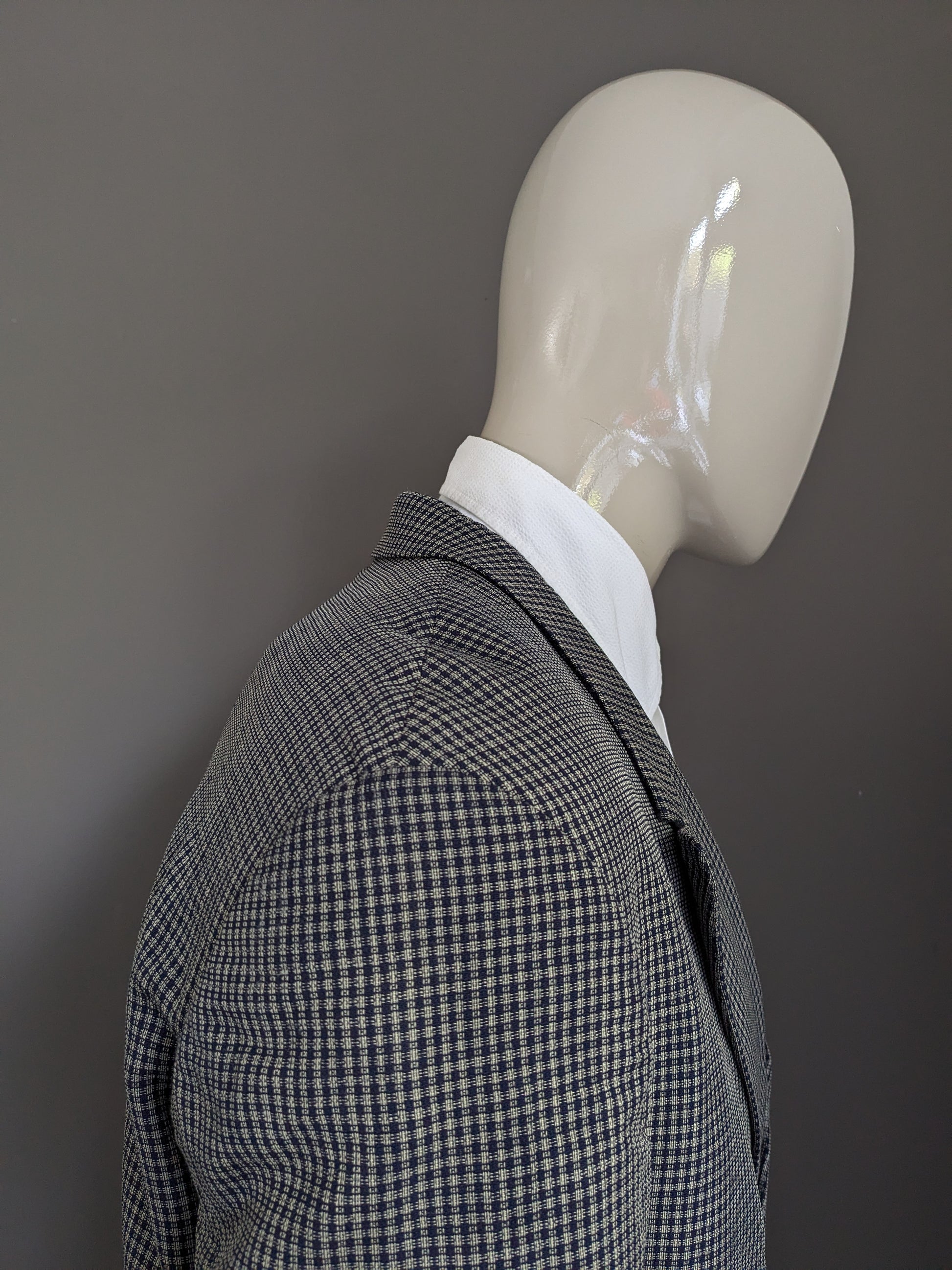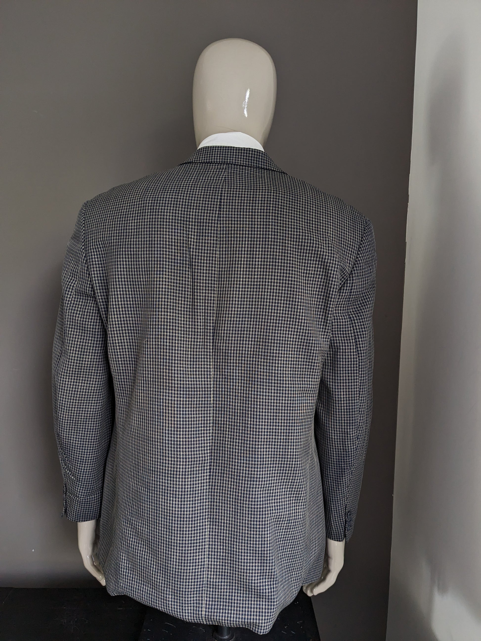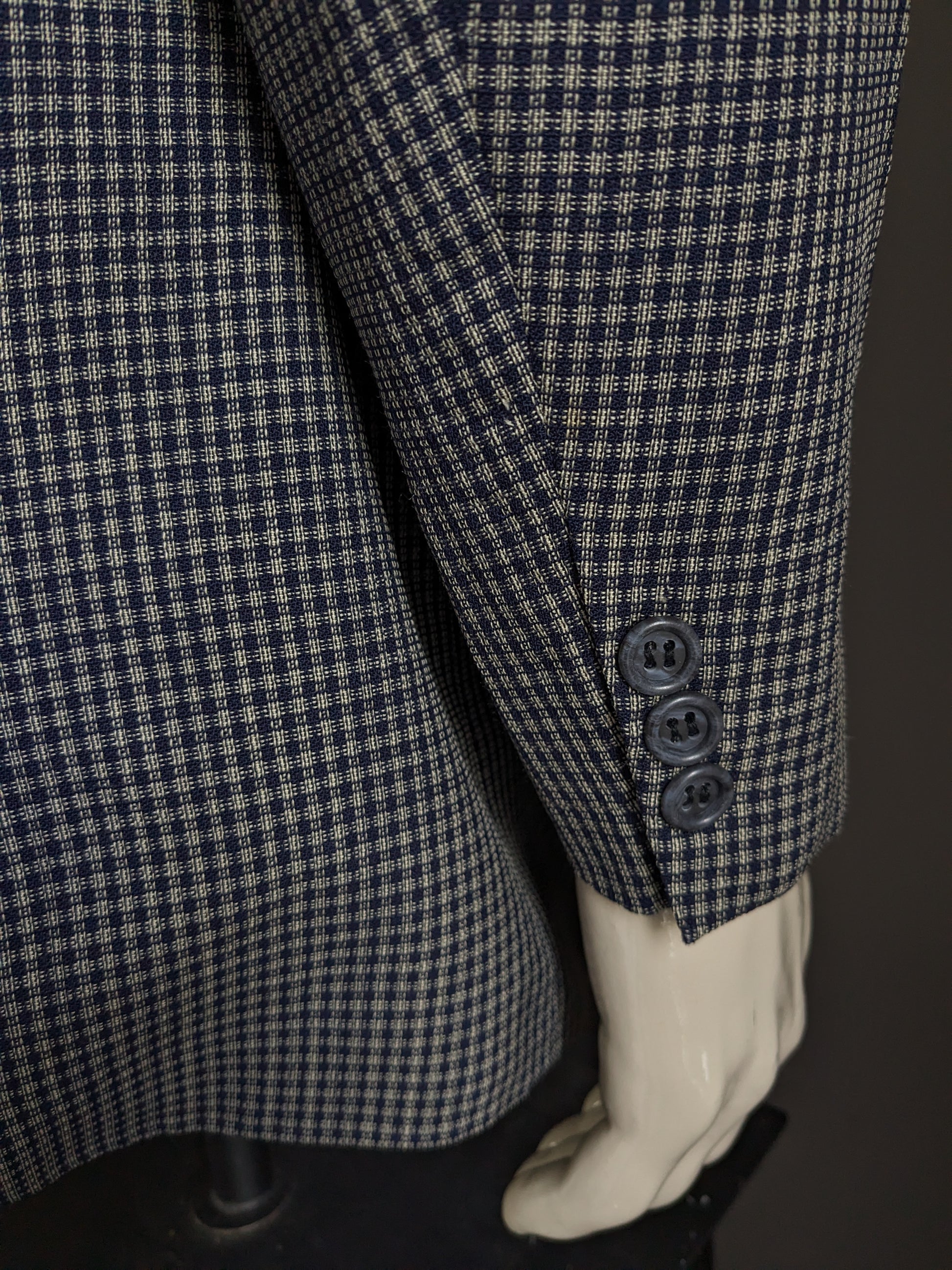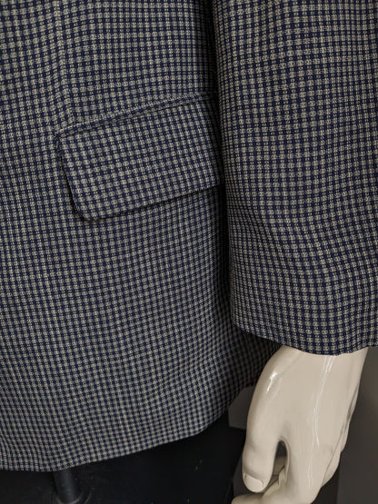Van Gils Vintage Double Breasted Wollen colbert met punt revers. Grijs Blauw geruit. Maat 54 / L.