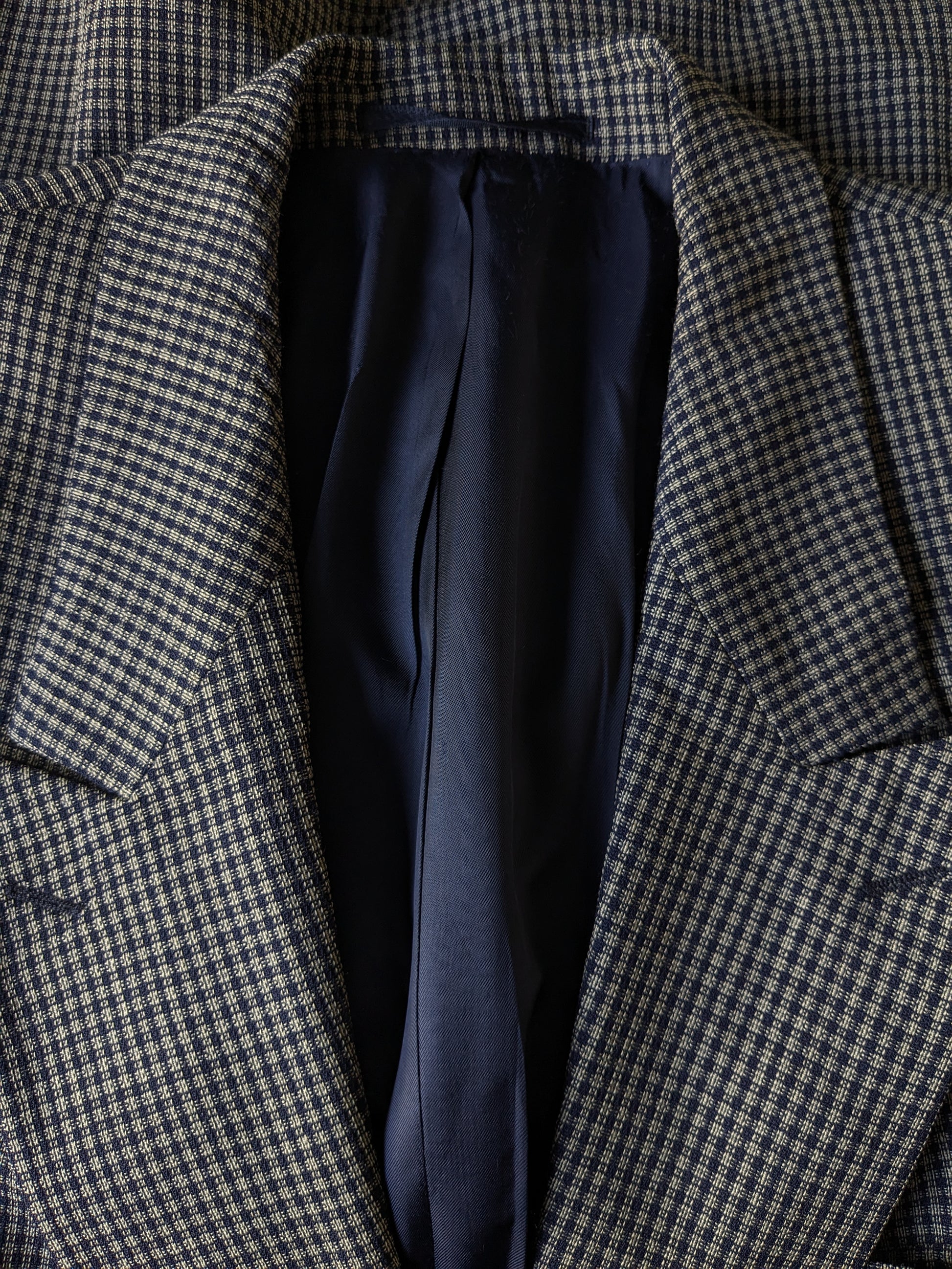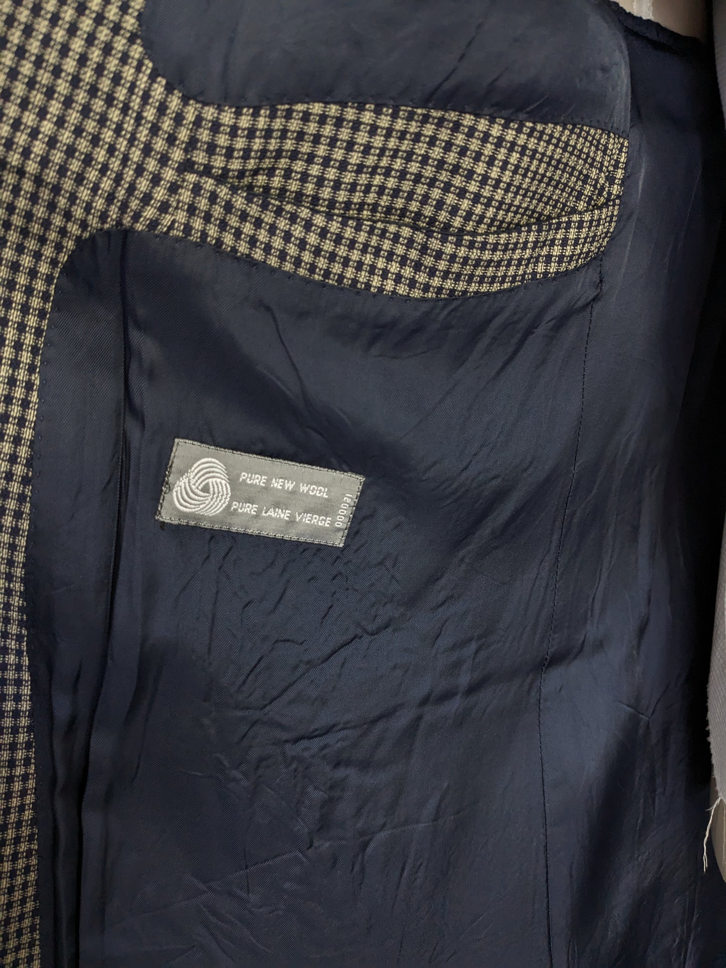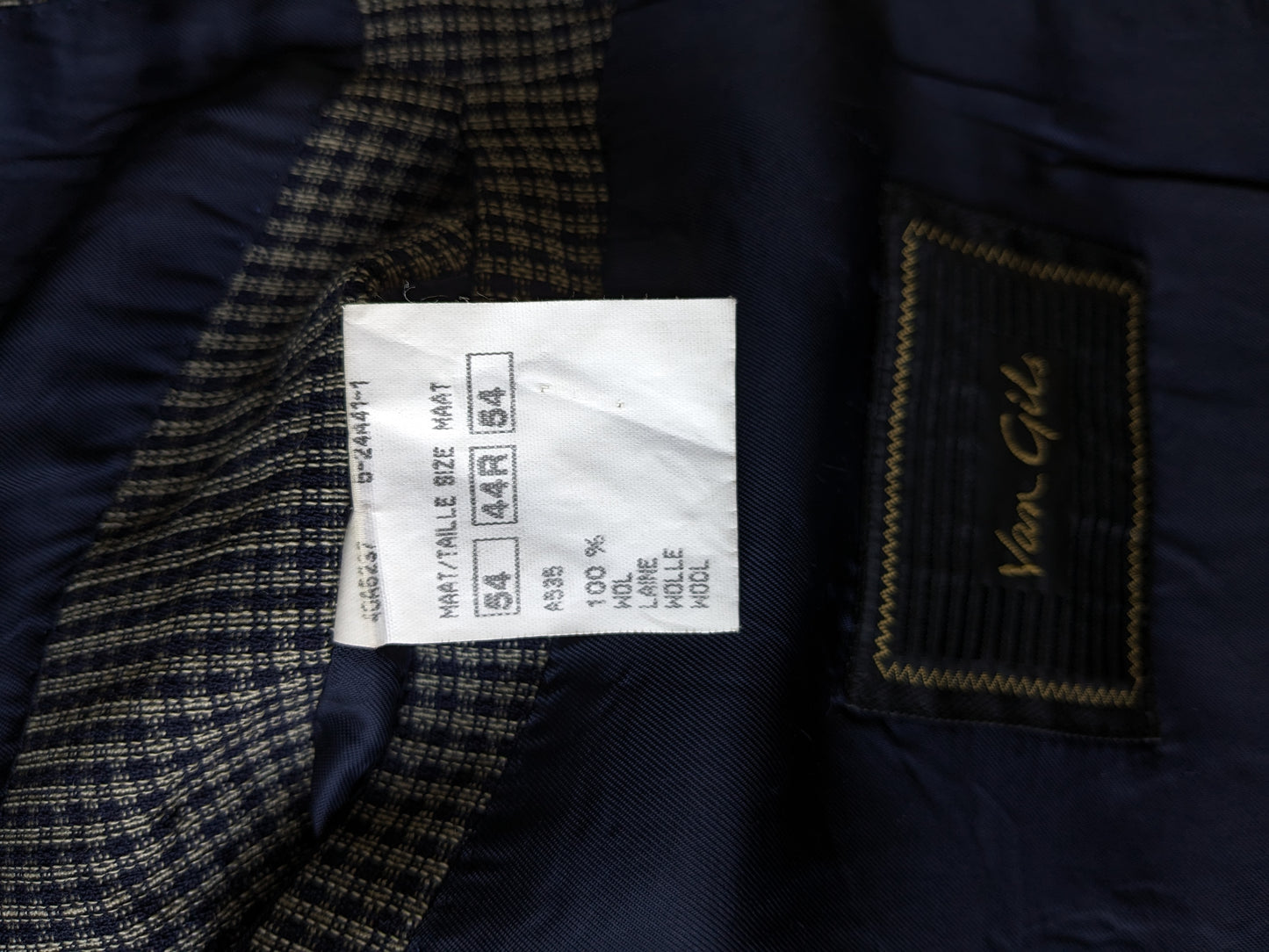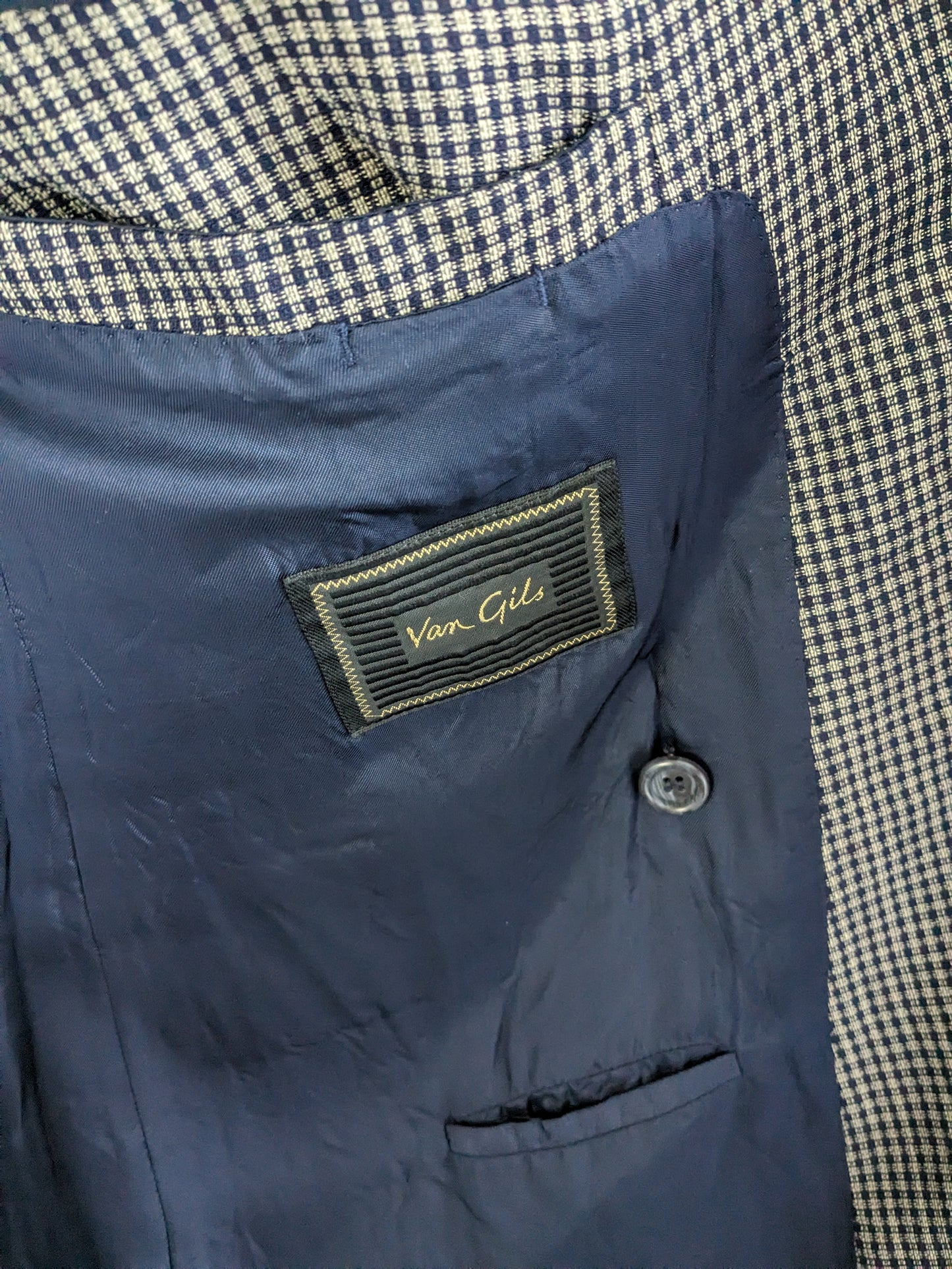 Van Gils Vintage Double Breasted Wollen colbert met punt revers. Grijs Blauw geruit. Maat 54 / L.