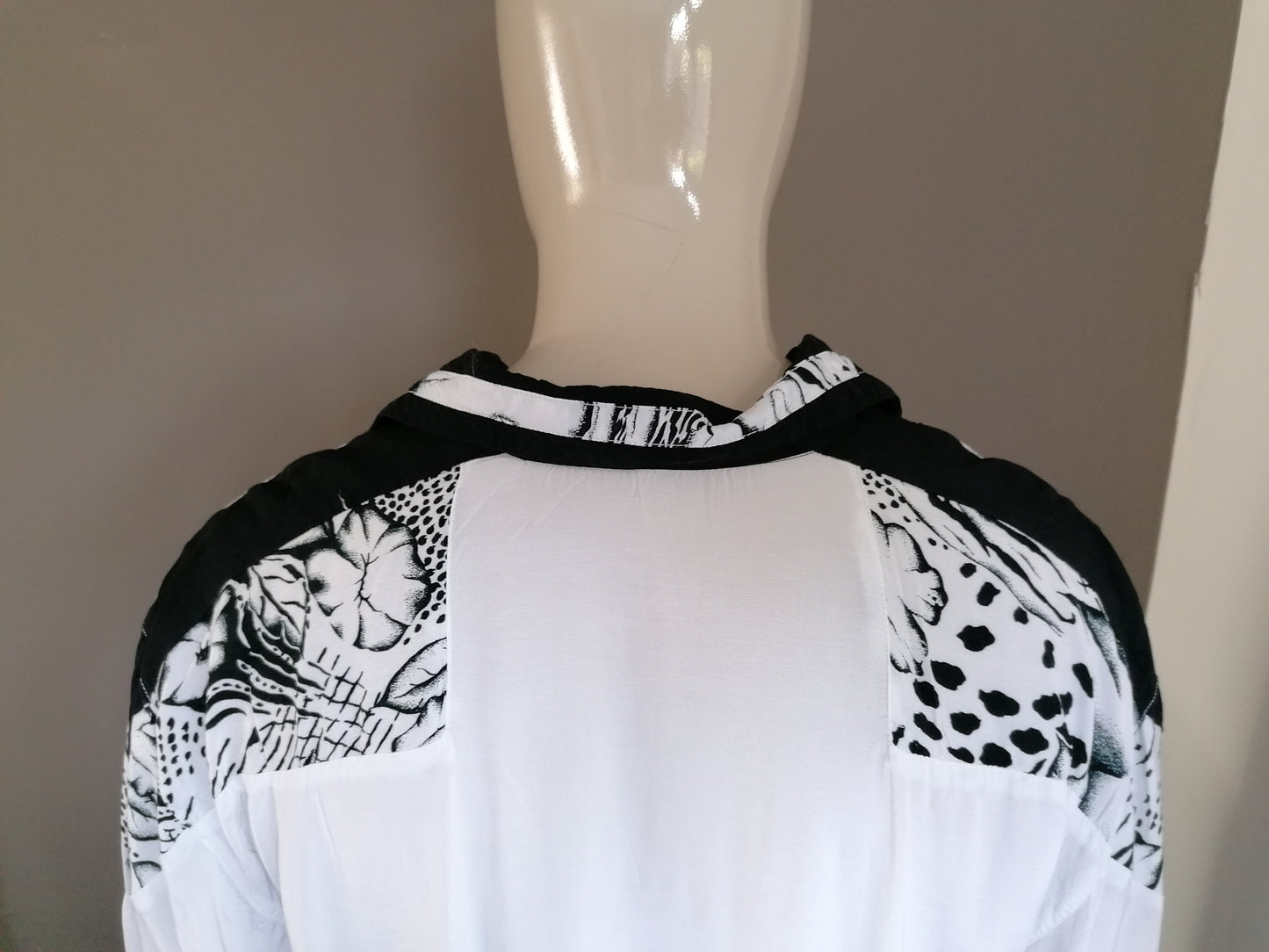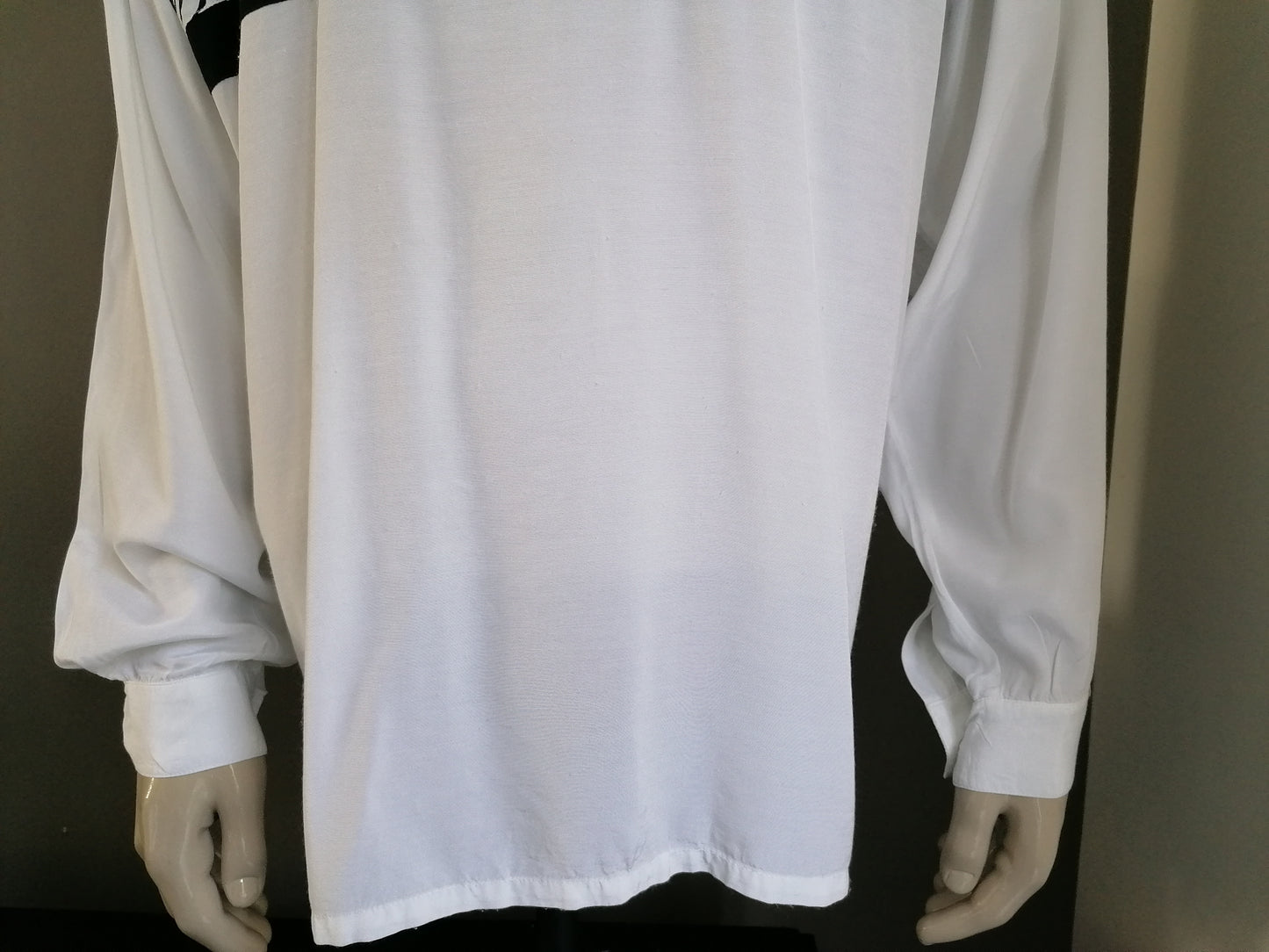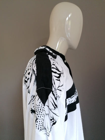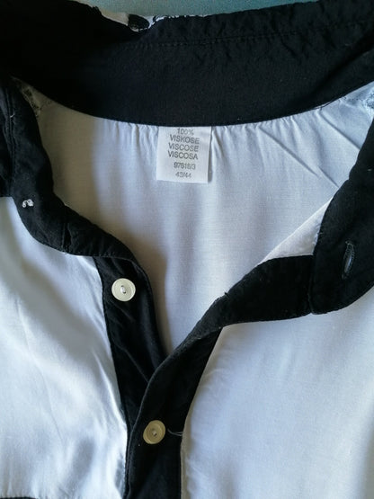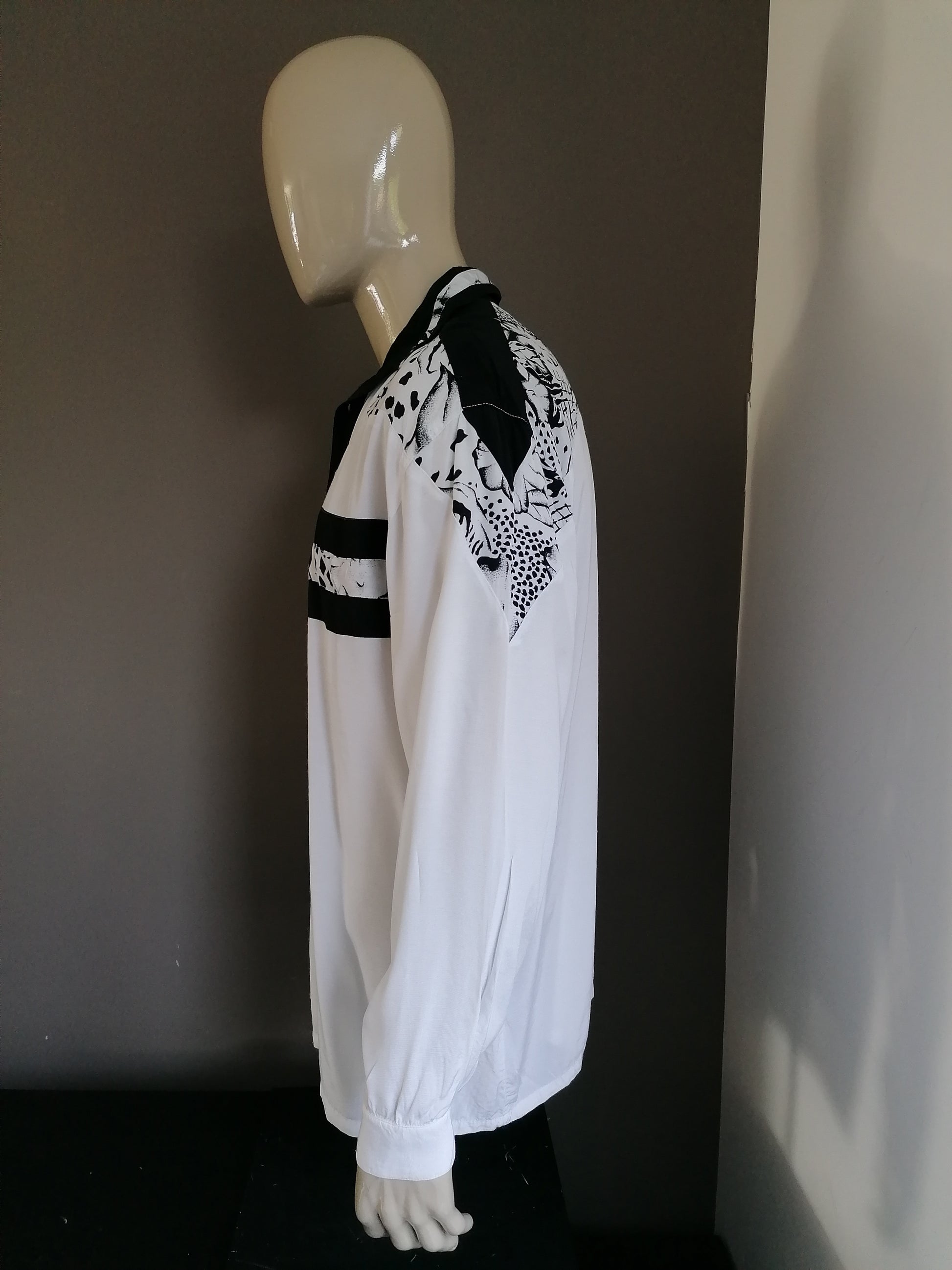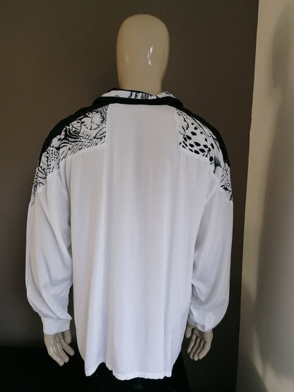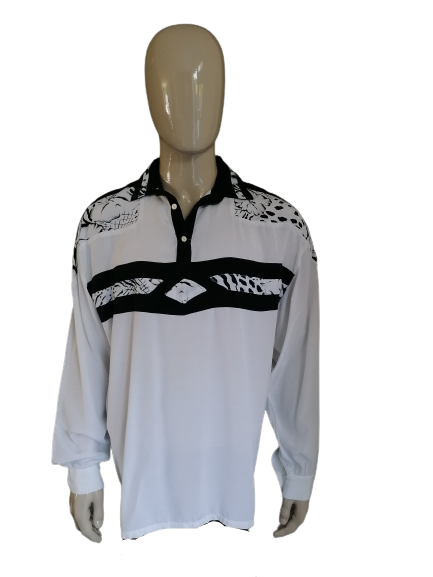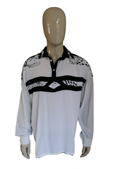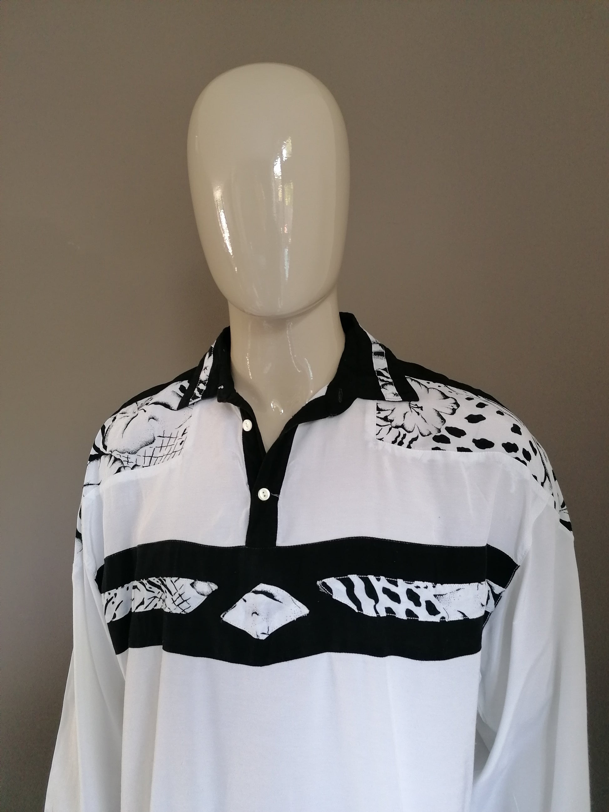 Vintage aparte polo trui / overhemd. Zwart Wit. Maat XXL / 2XL. Viscose.
