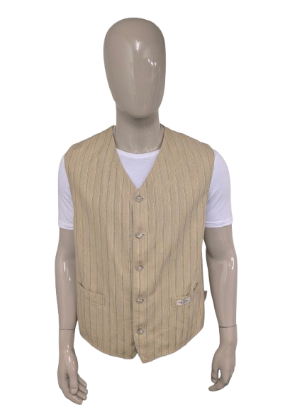Vintage Trek & Travel gilet. Geel Blauw gestreept. Maat 2XL / XXL.