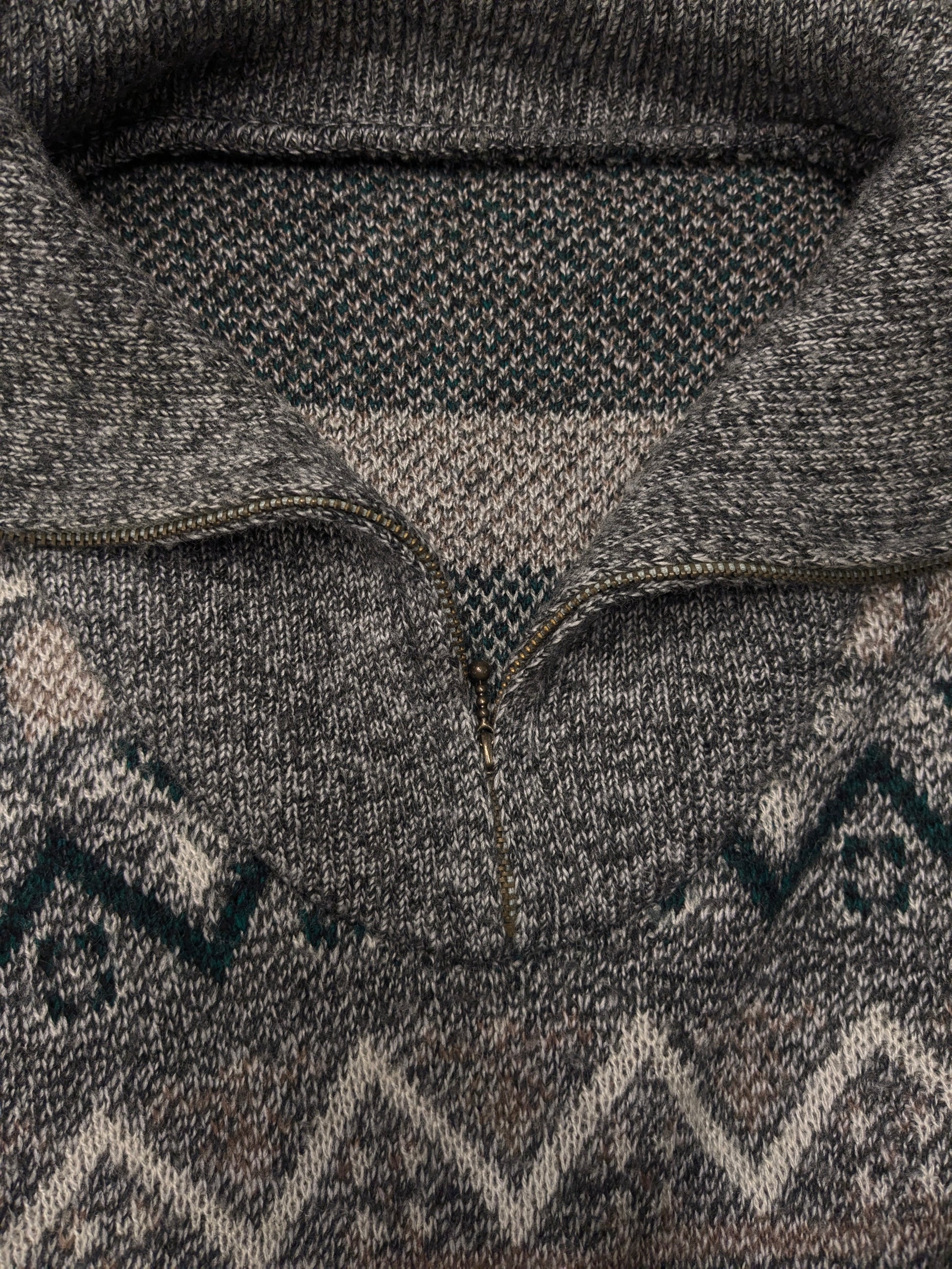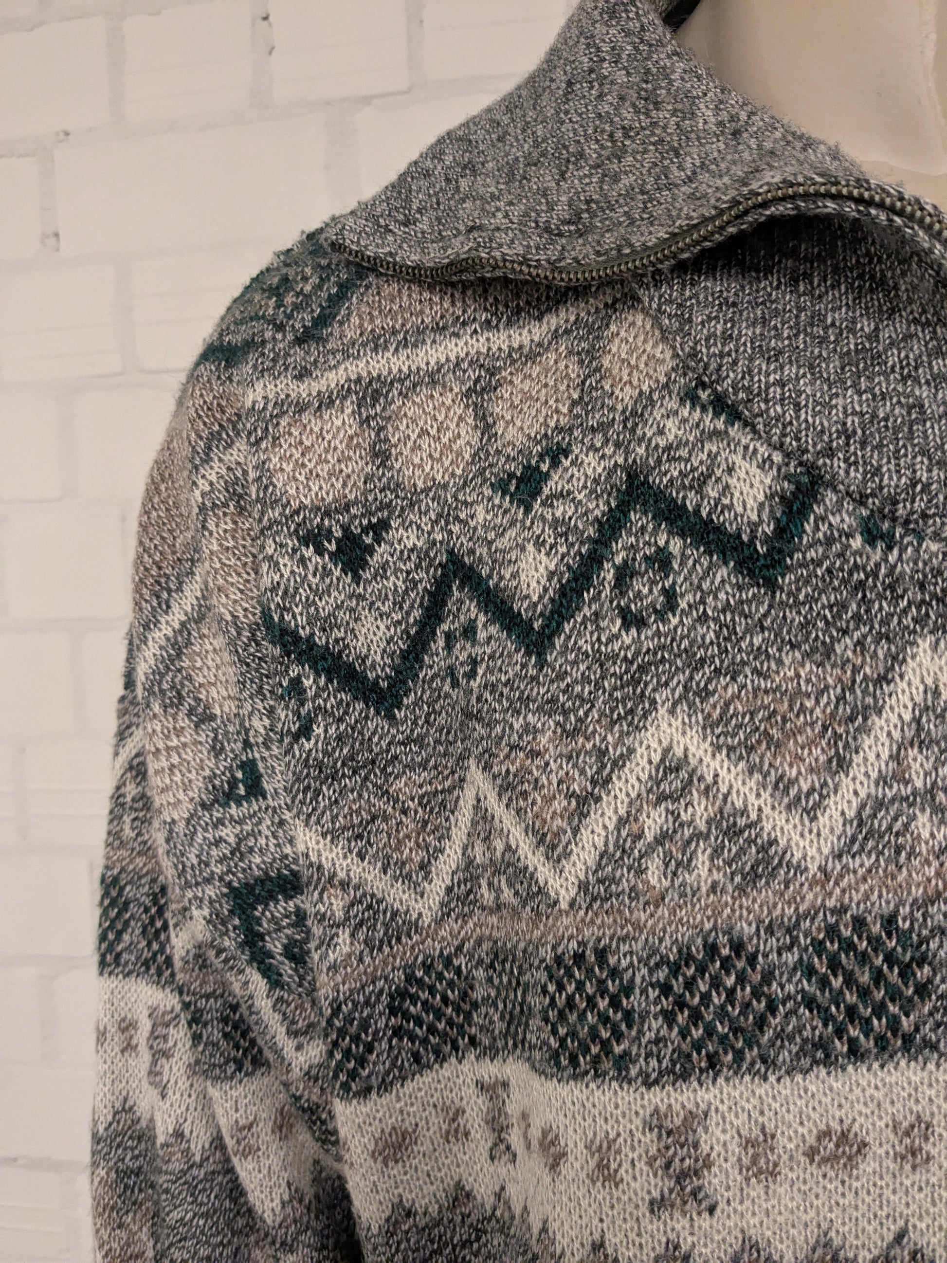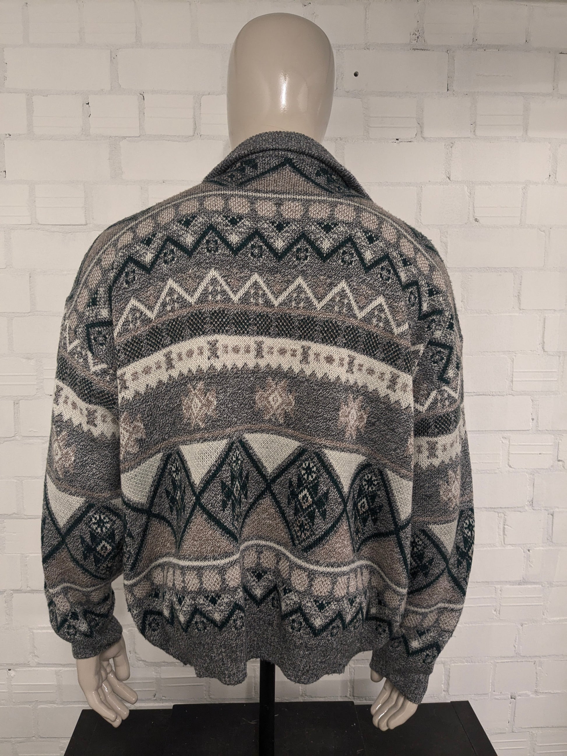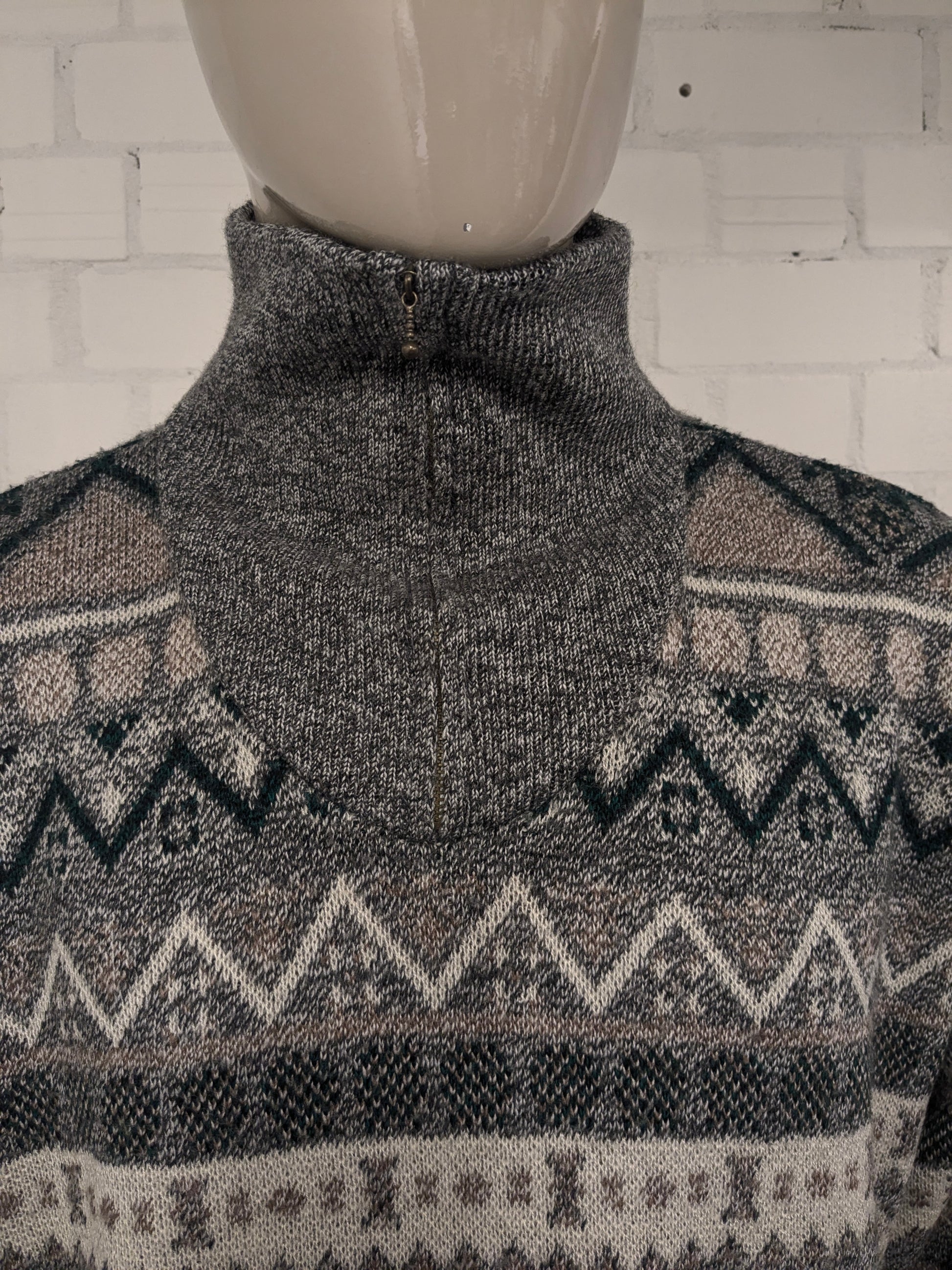 Vintage trui met rits. Groen Grijs Bruin Wit gekleurd. Maat 2XL / XXL.