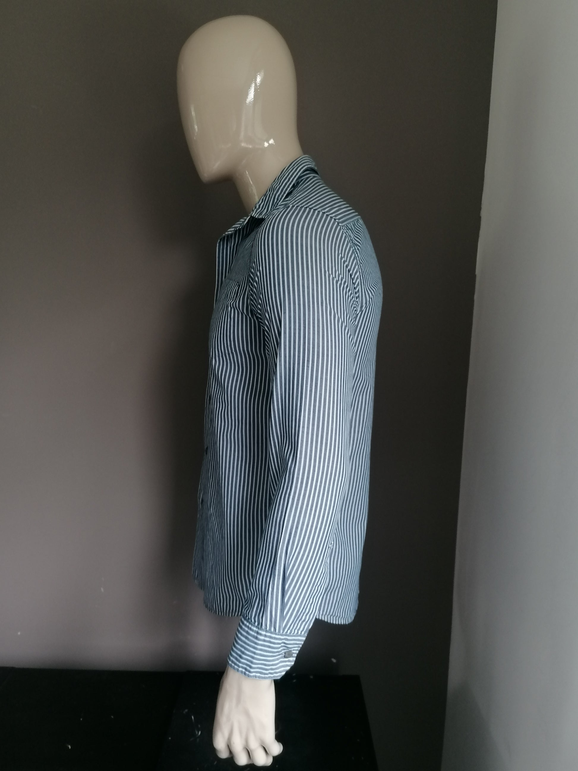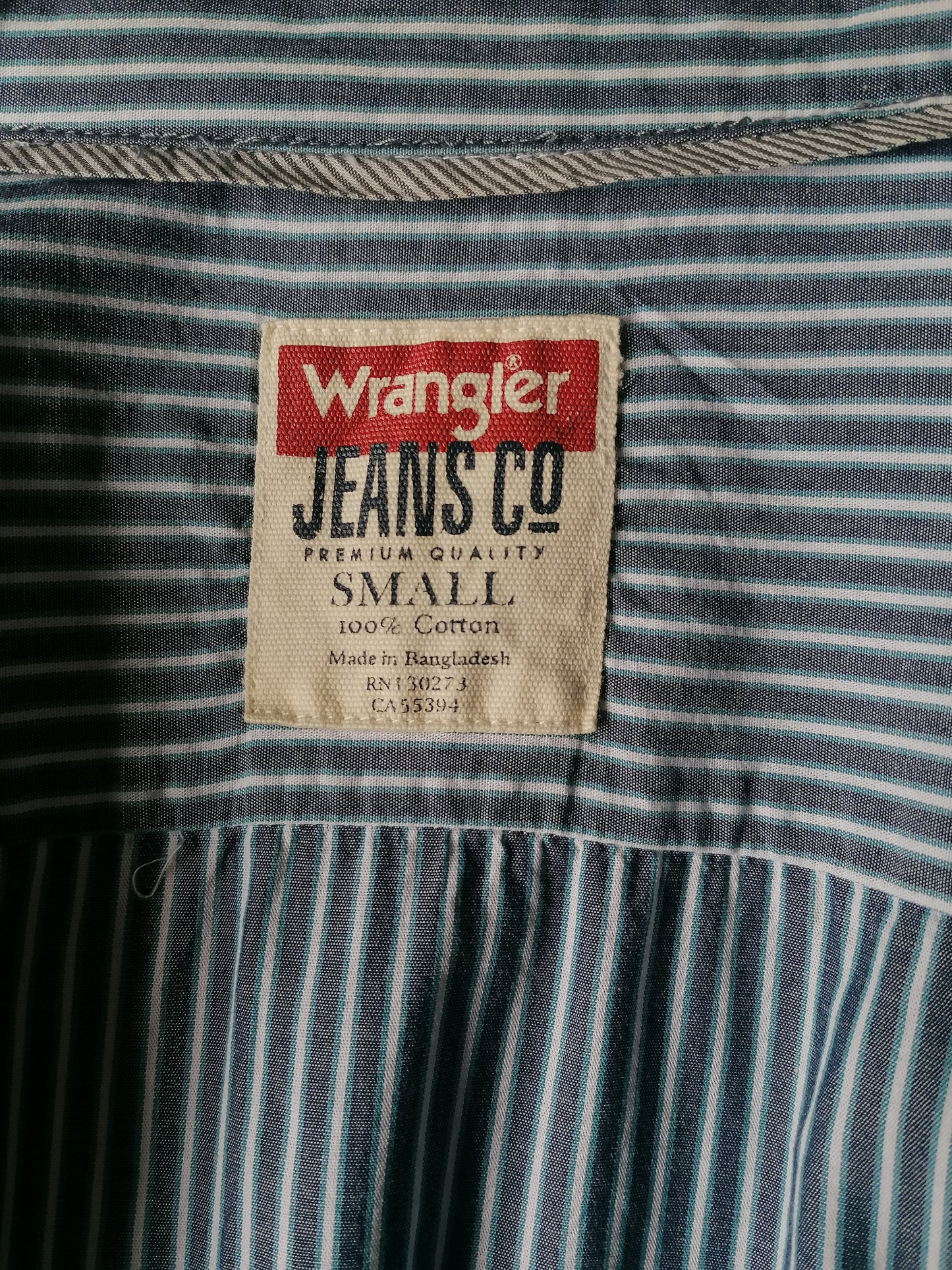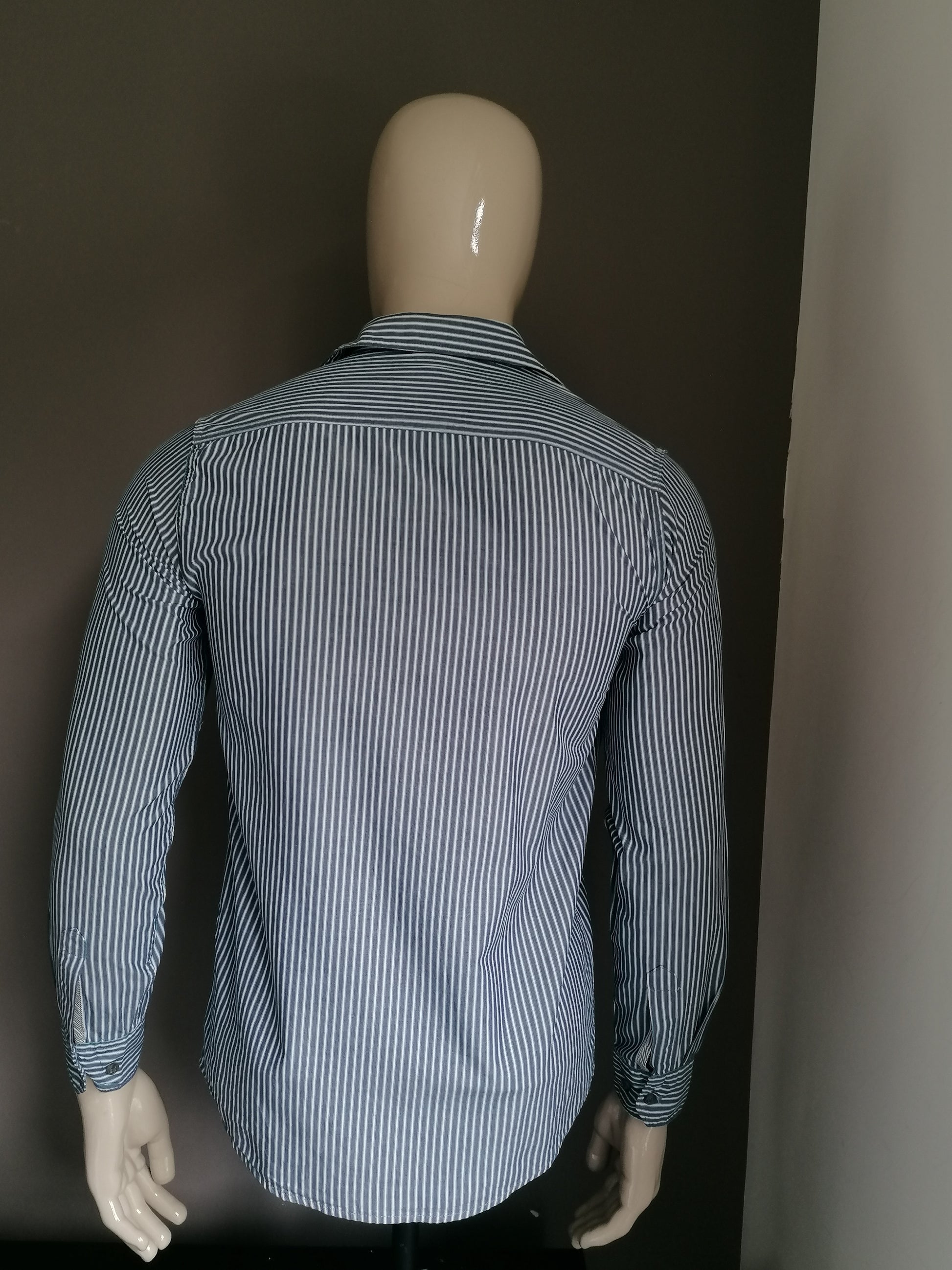 Wrangler overhemd. Blauw Wit gestreept. Maat S.