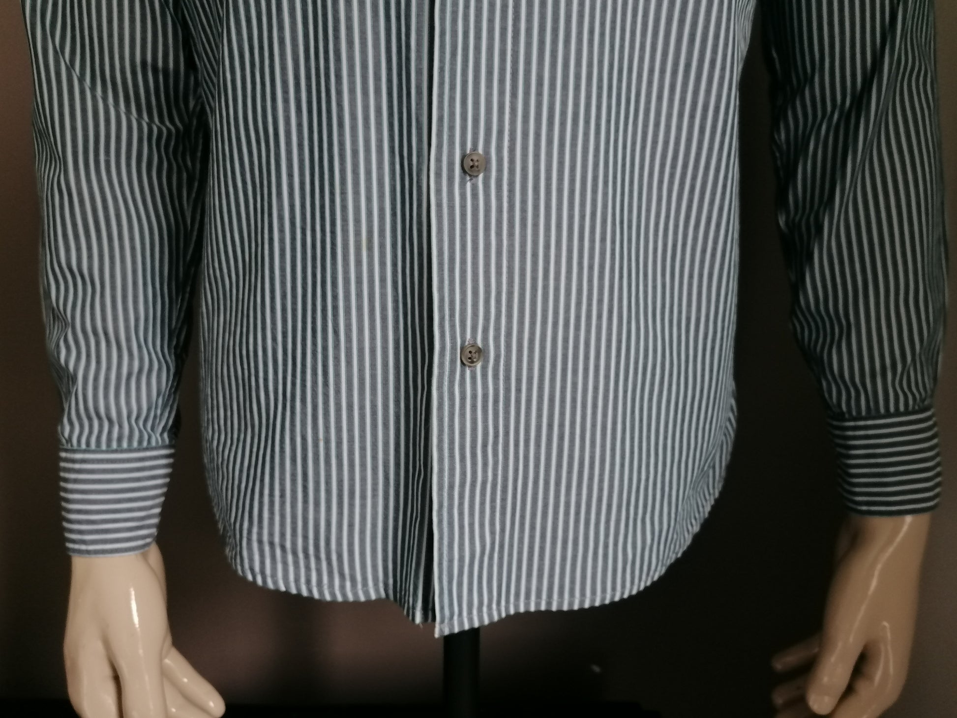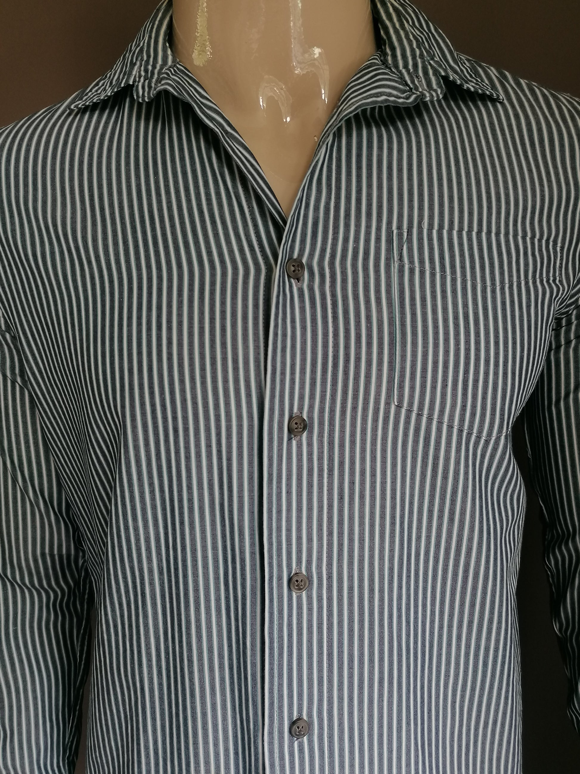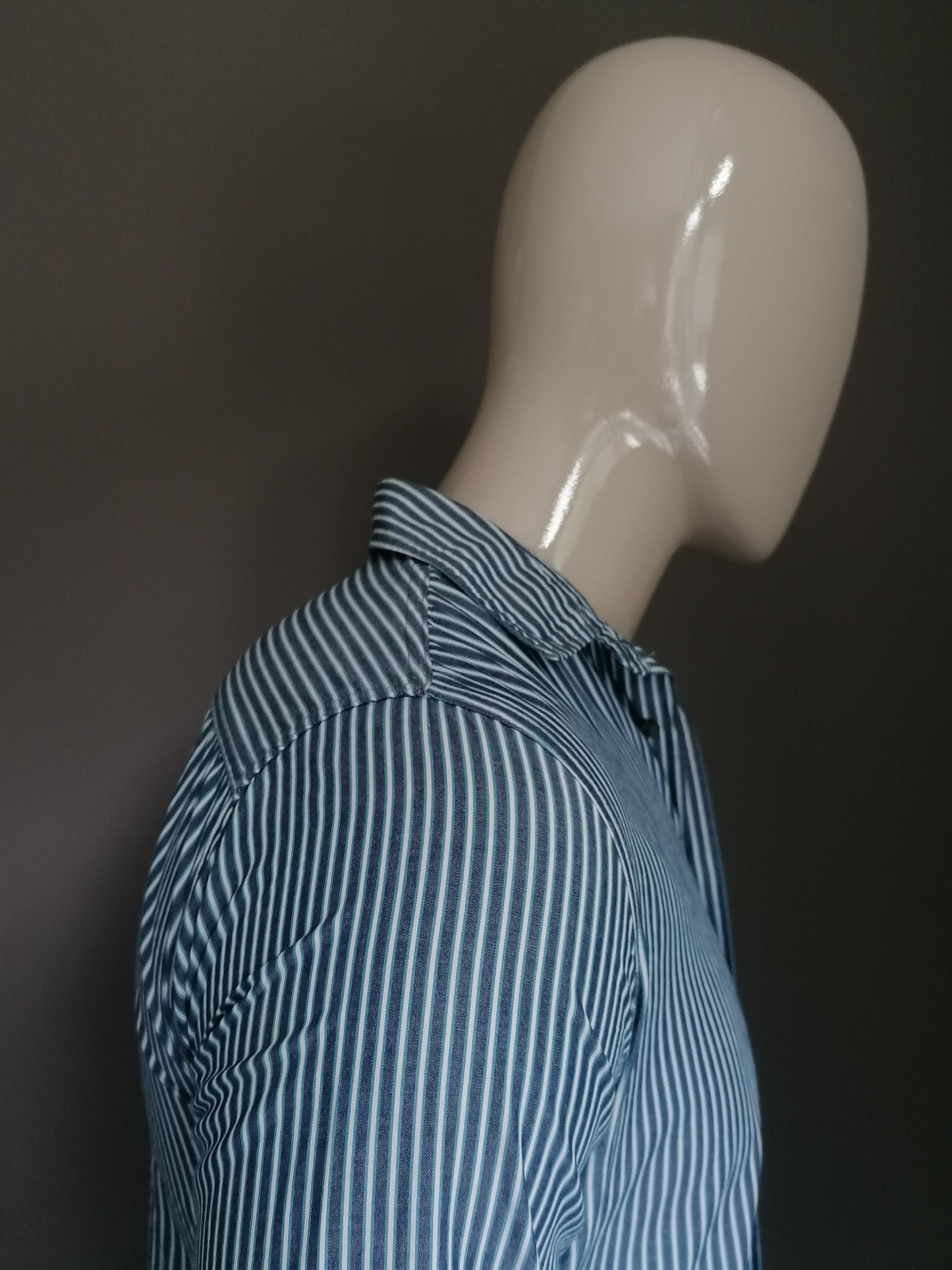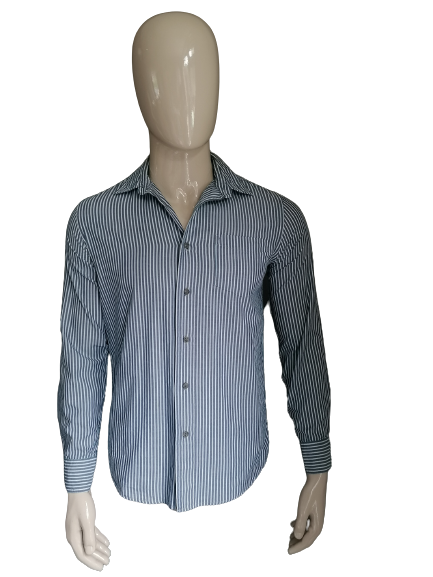 Wrangler overhemd. Blauw Wit gestreept. Maat S.