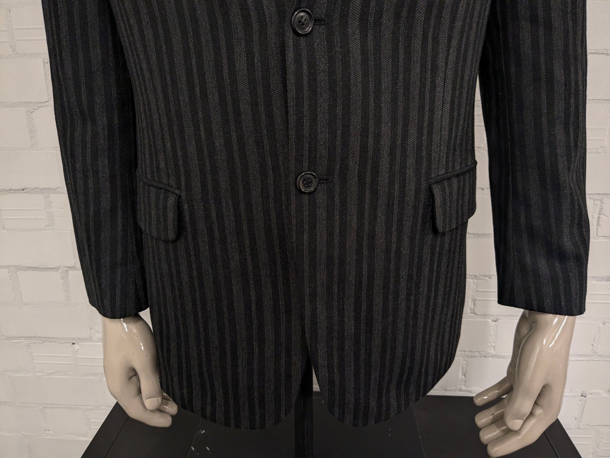 Calabria colbert. Zwart Grijs gestreept. Maat 26 (52 / L).