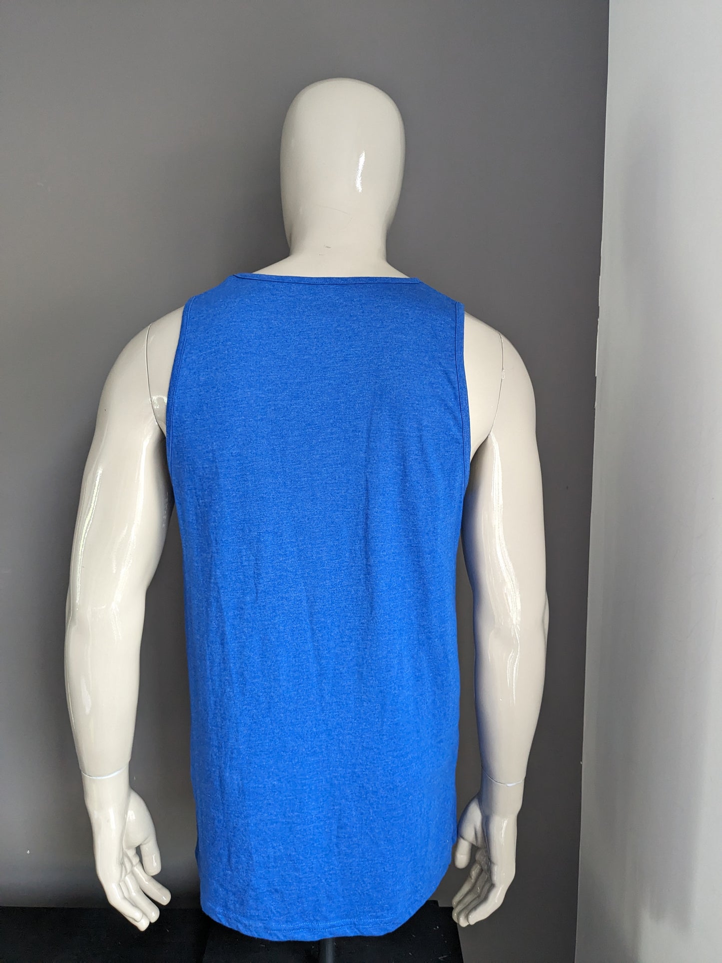 Crazy Dog Singlet. Blauw met opdruk. Maat XL.