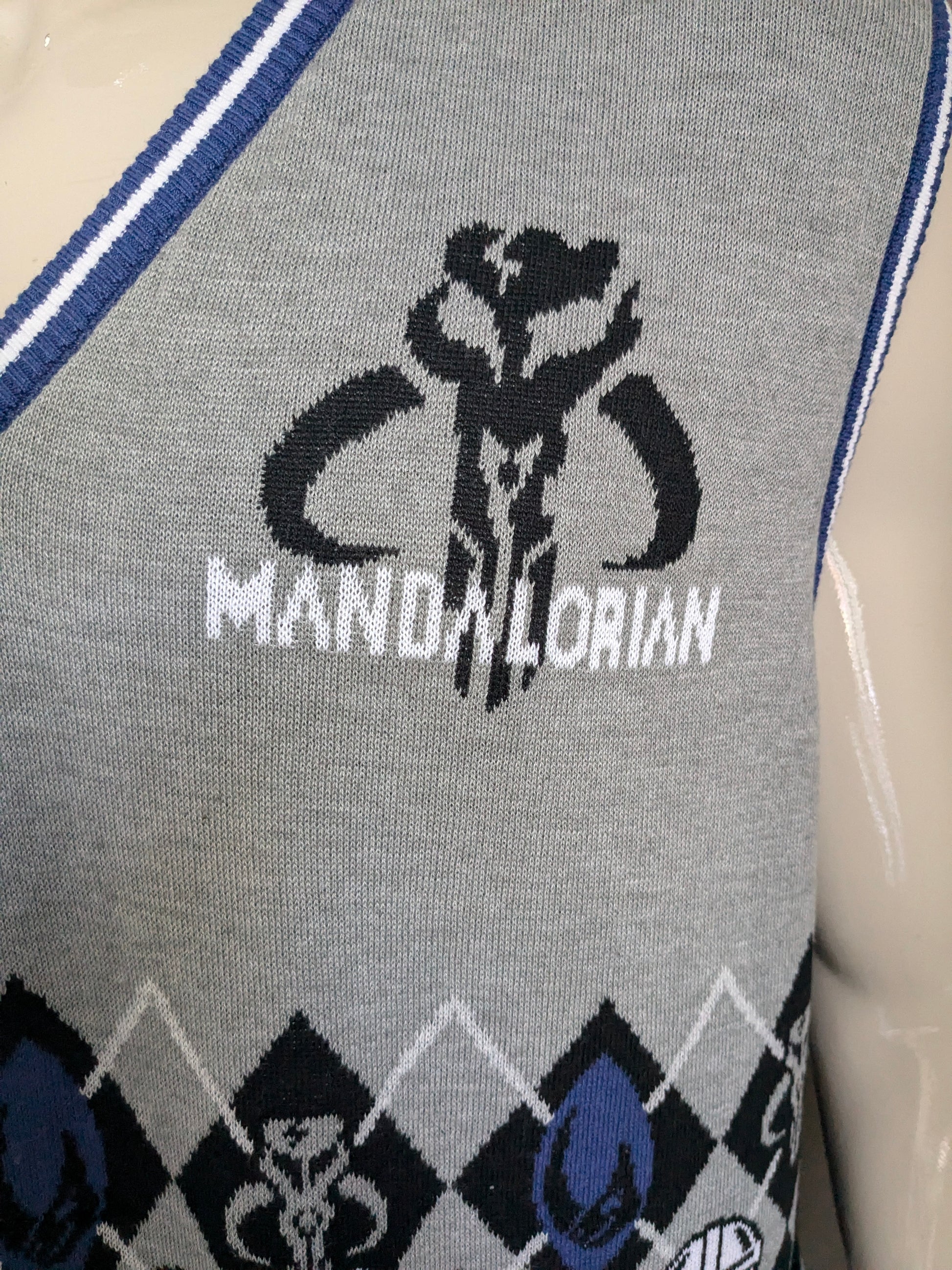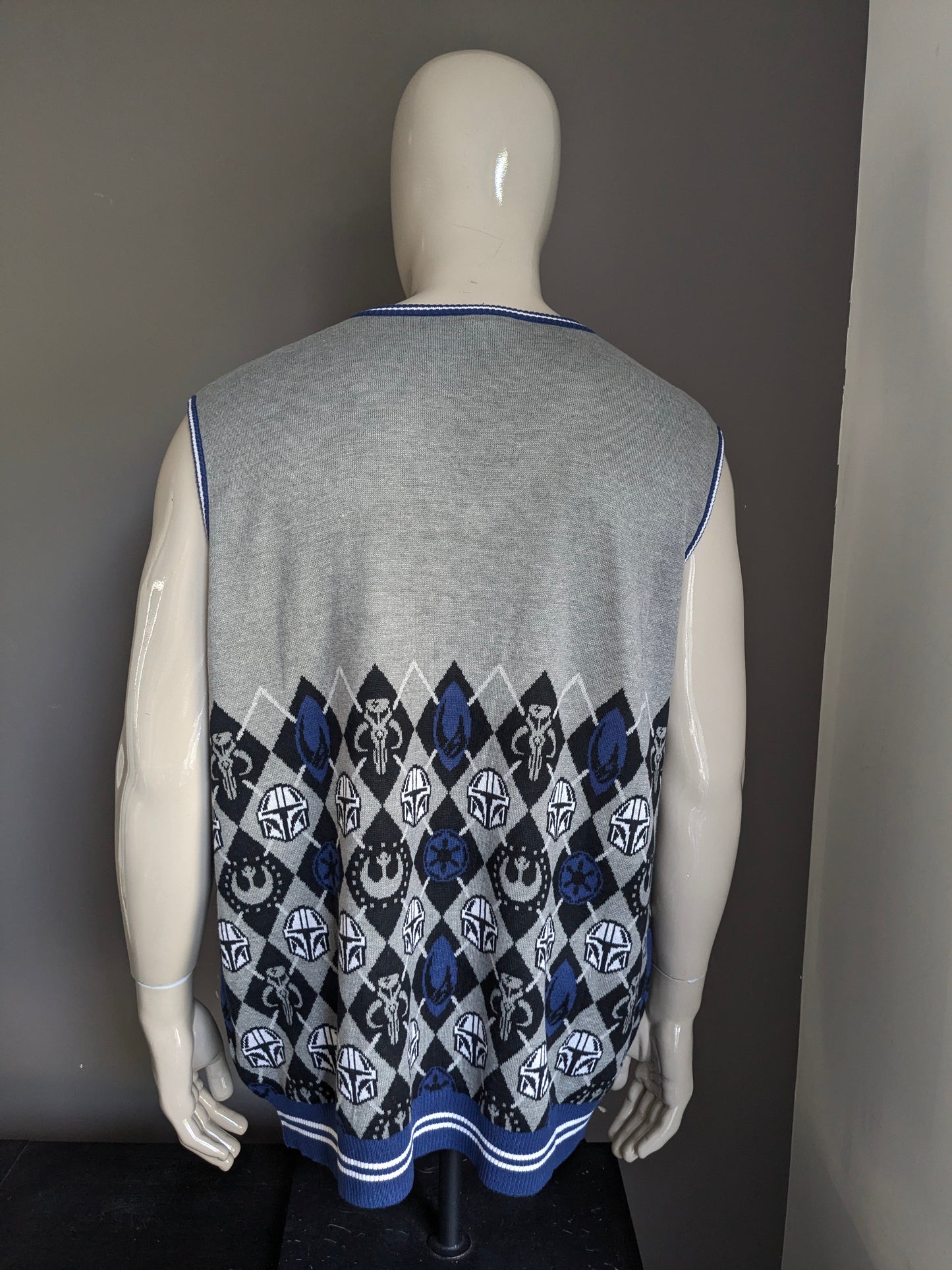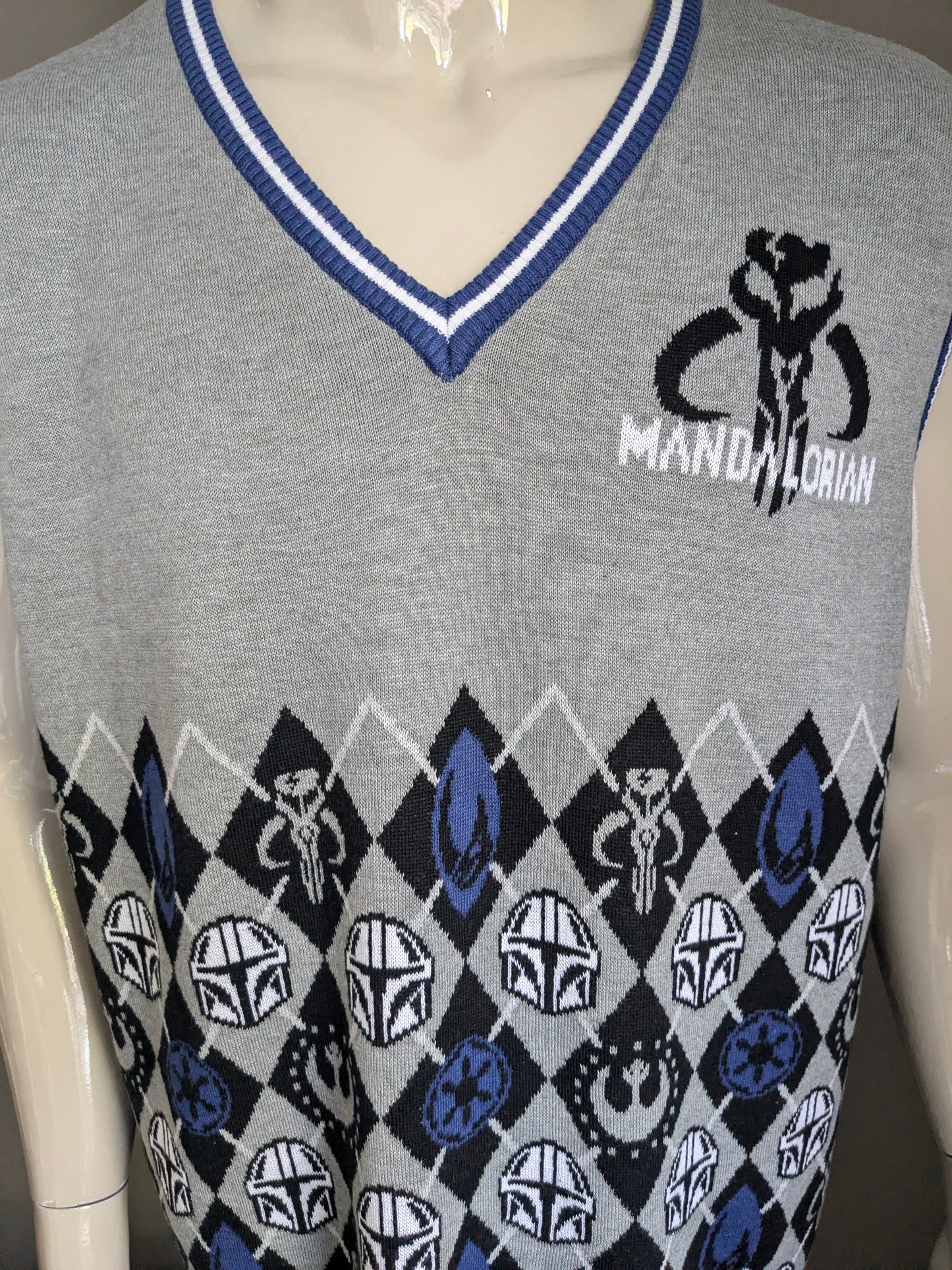Disney Star Wars Mandalorian spencer met V-hals. Grijs Blauw Wit Zwarte print. Maat 2XL / XXL.
