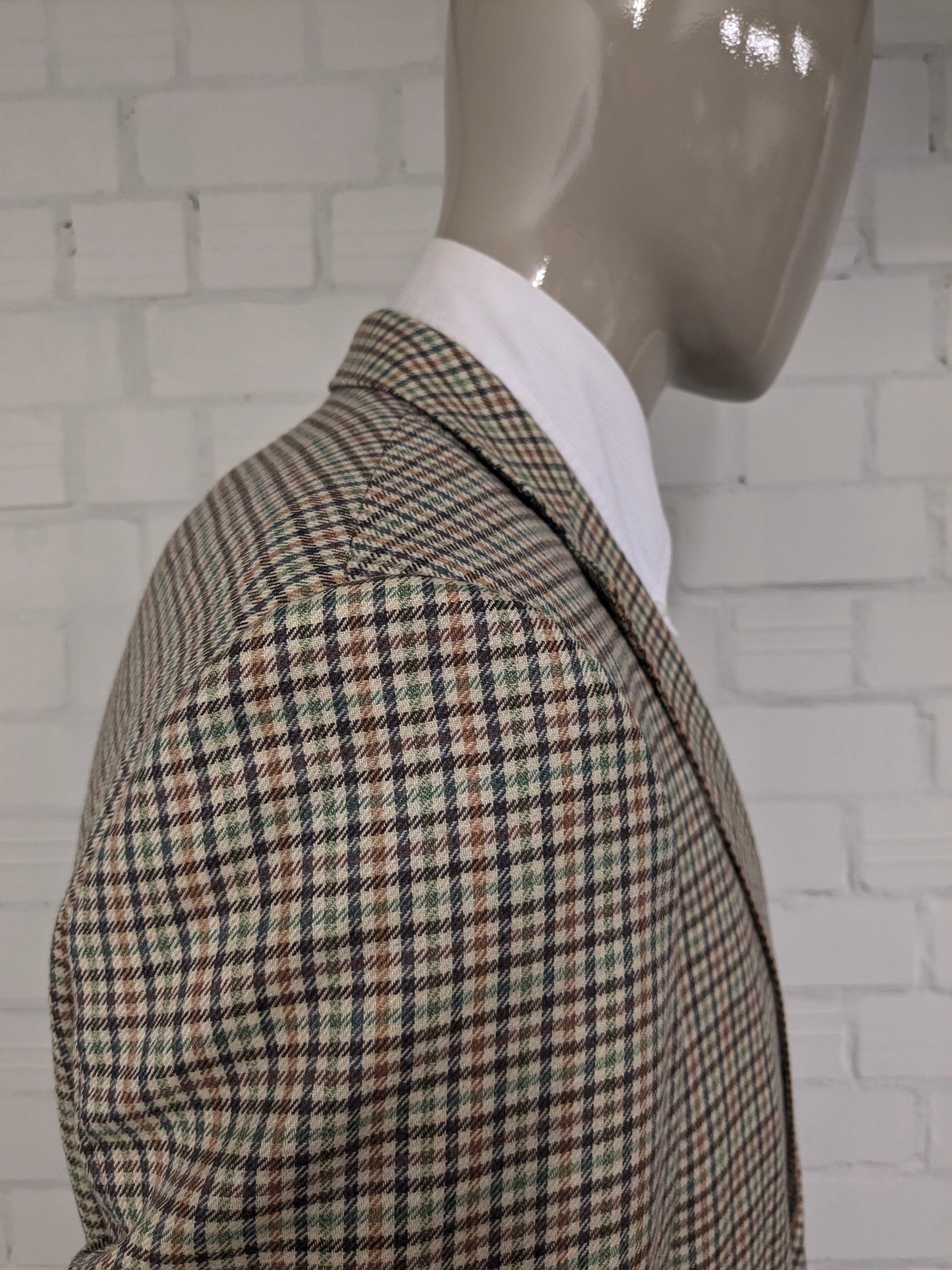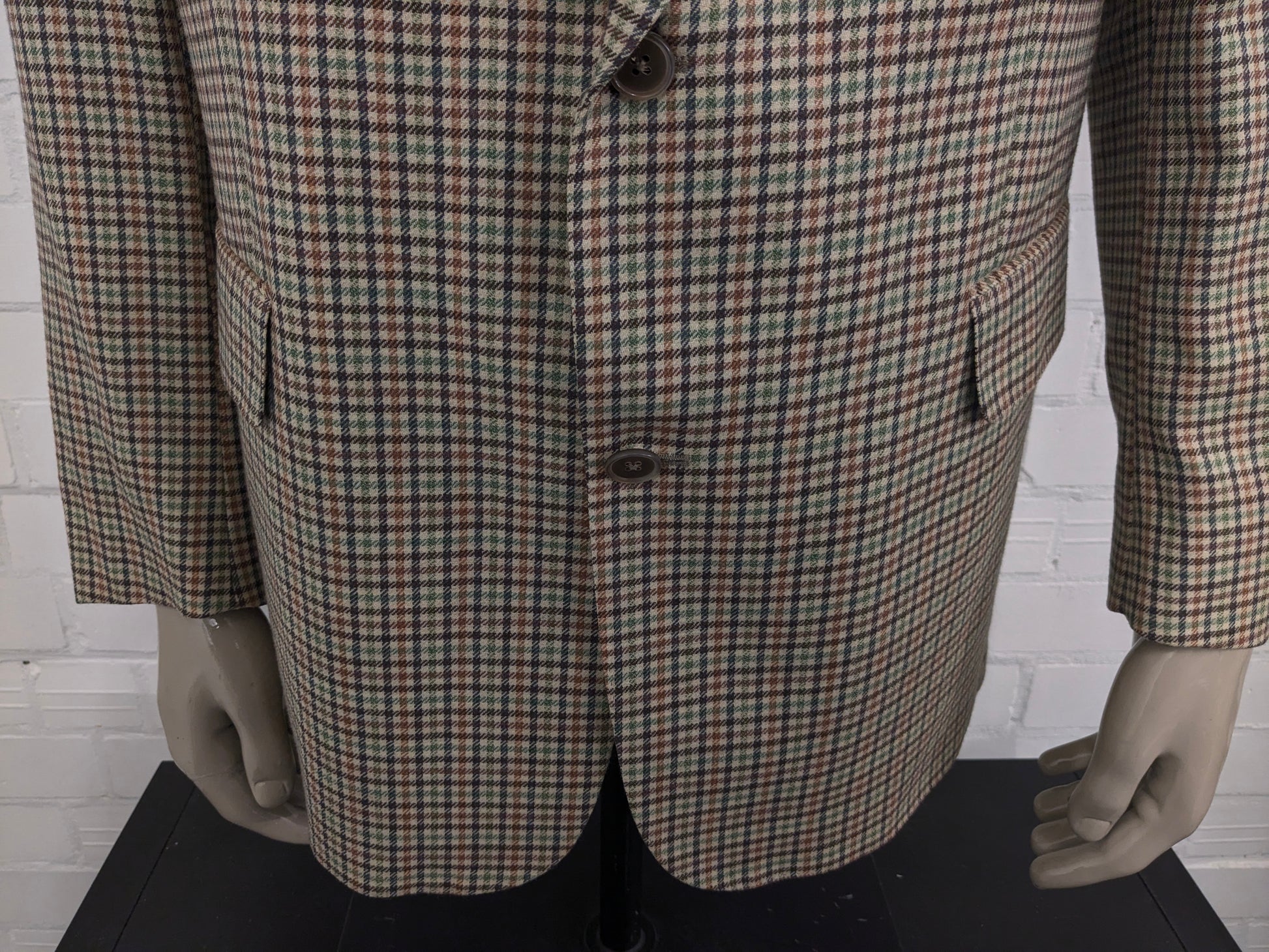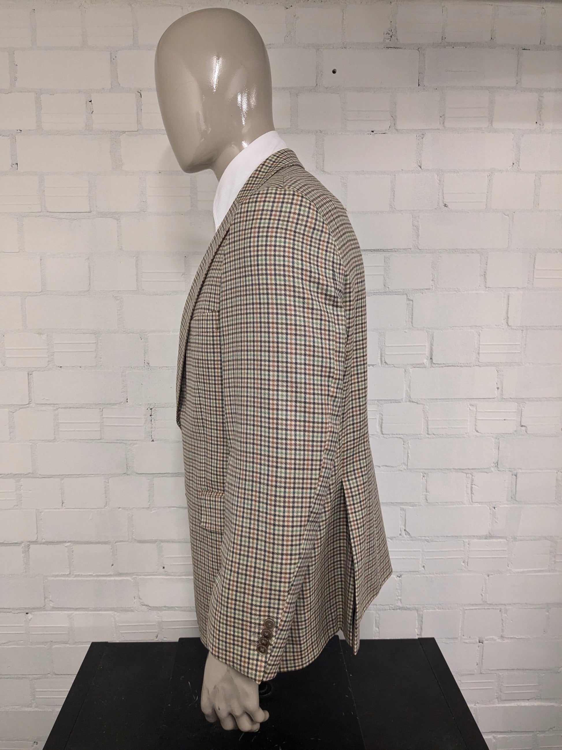 Eduard Dressler Wollen colbert. Beige Groen Bruin Zwart motief. Maat 27 (54 / L).