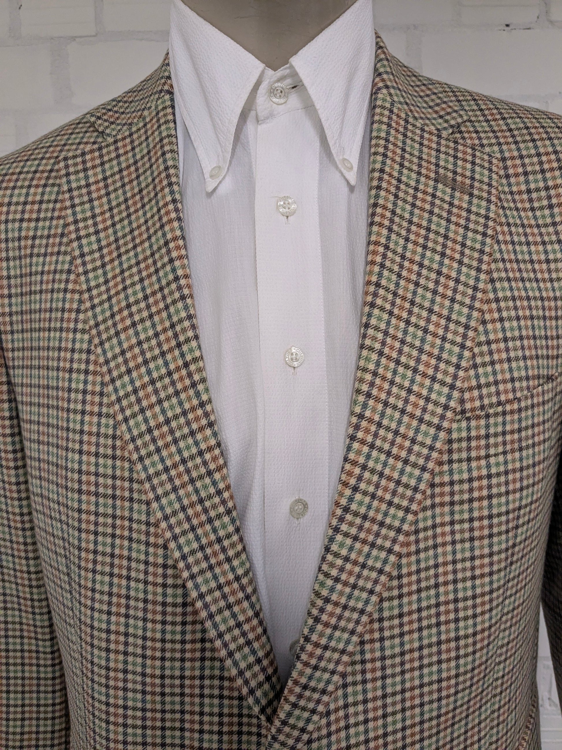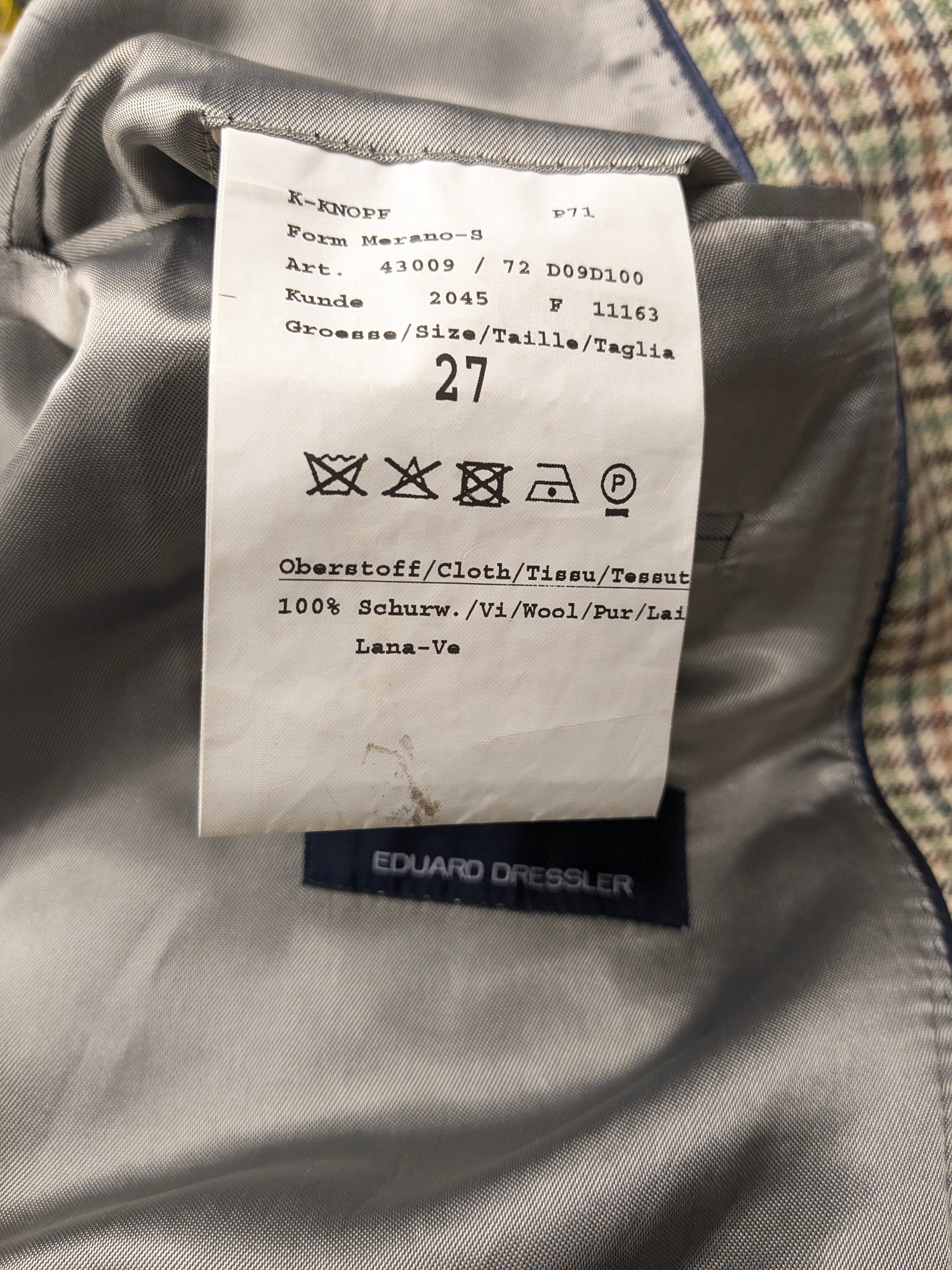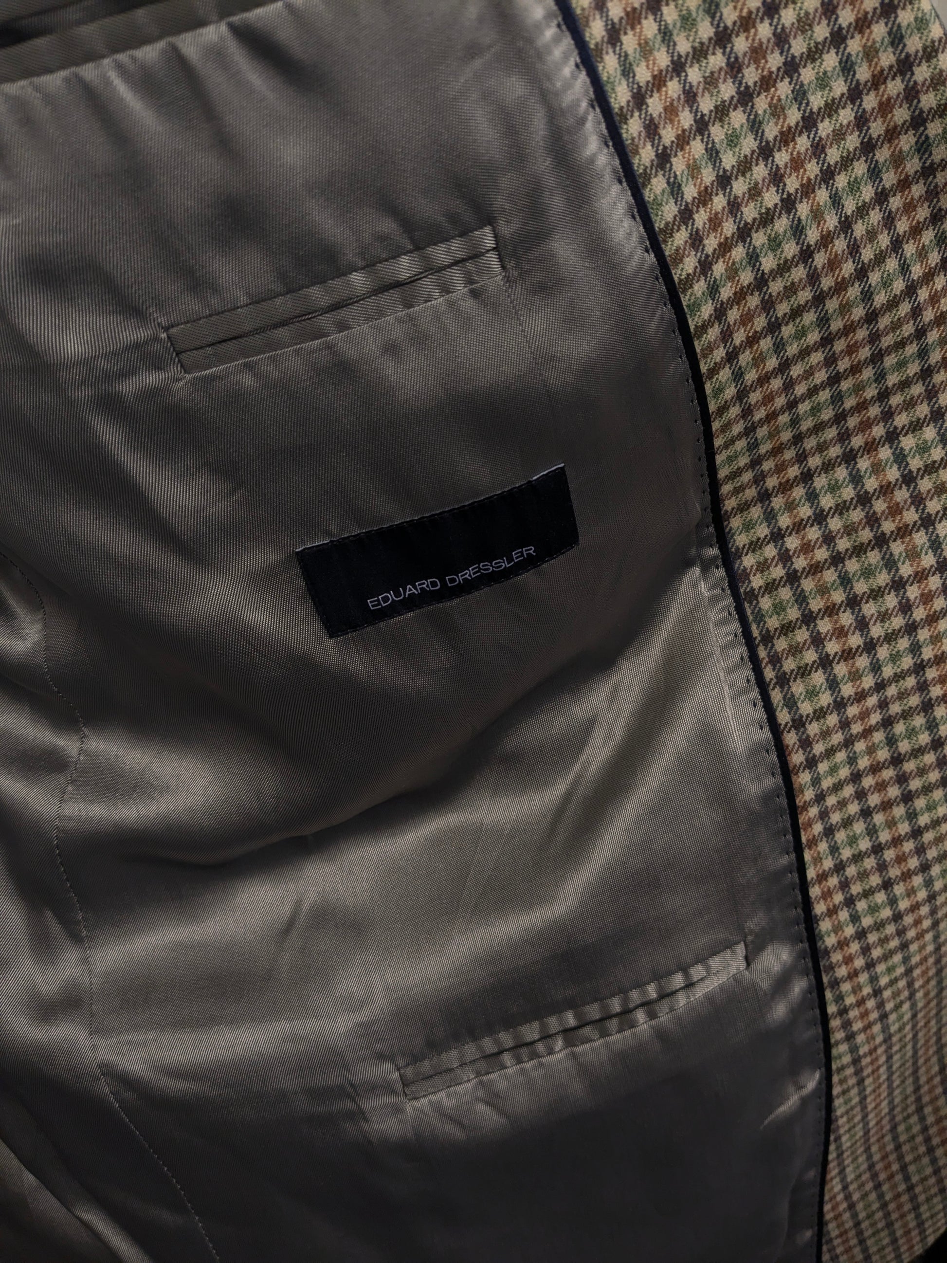 Eduard Dressler Wollen colbert. Beige Groen Bruin Zwart motief. Maat 27 (54 / L).