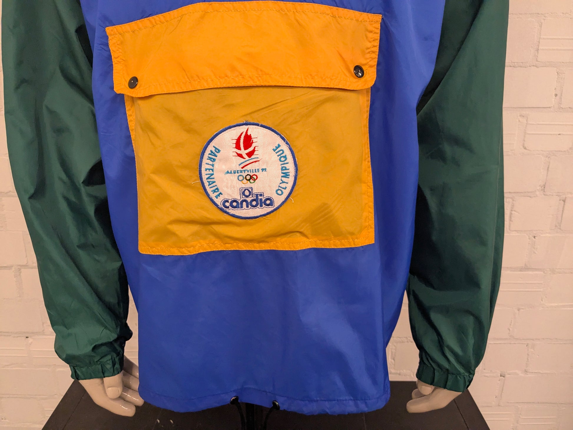 Fantastisch Vintage Olympique Albertville '92 windjack. Blauw Geel Groen gekleurd. Maat L / XL.