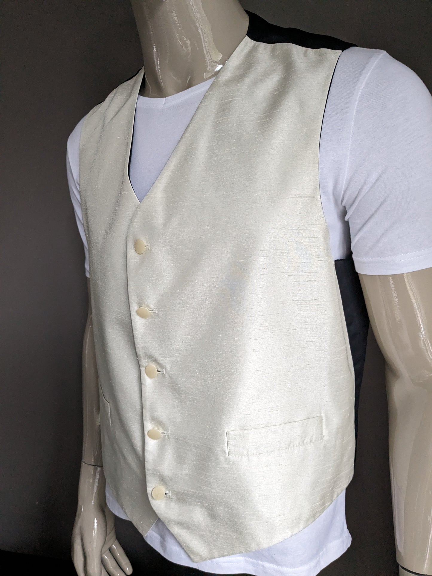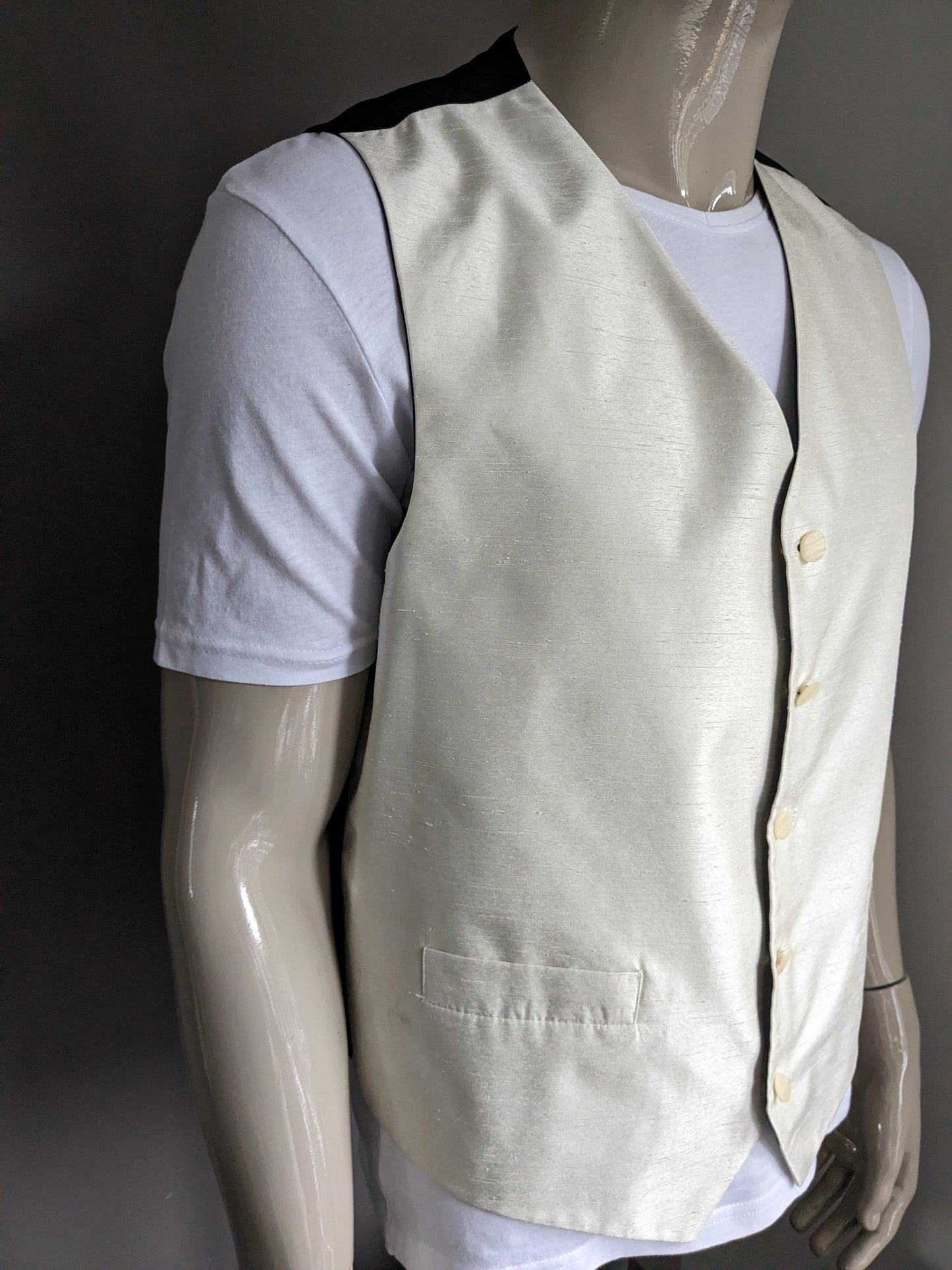 FH Gilet. Beige motief. Zwarte achterkant. Maat XL.