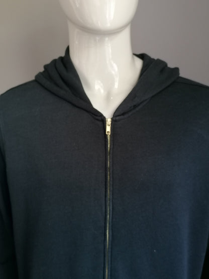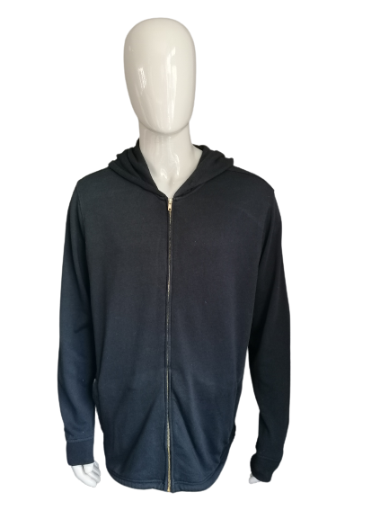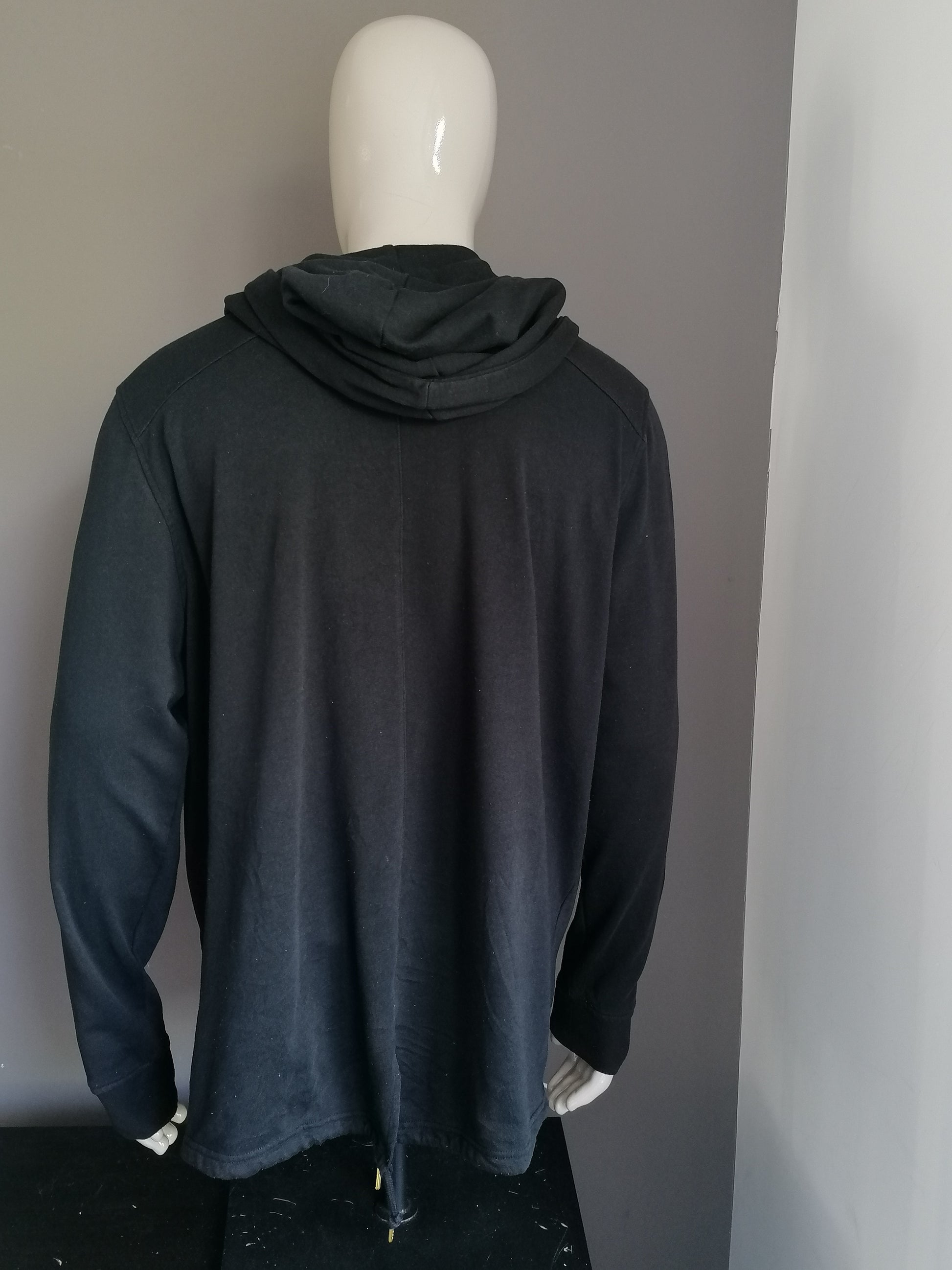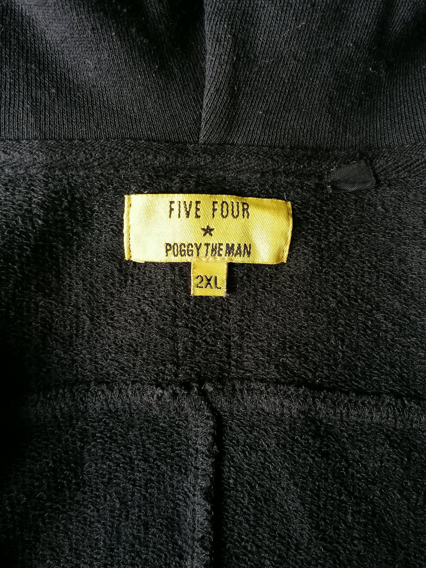 Five Four "Poggy the Man" Vest met zakken en rits en capuchon. Zwart gekleurd. Maat 2XL / 3XL