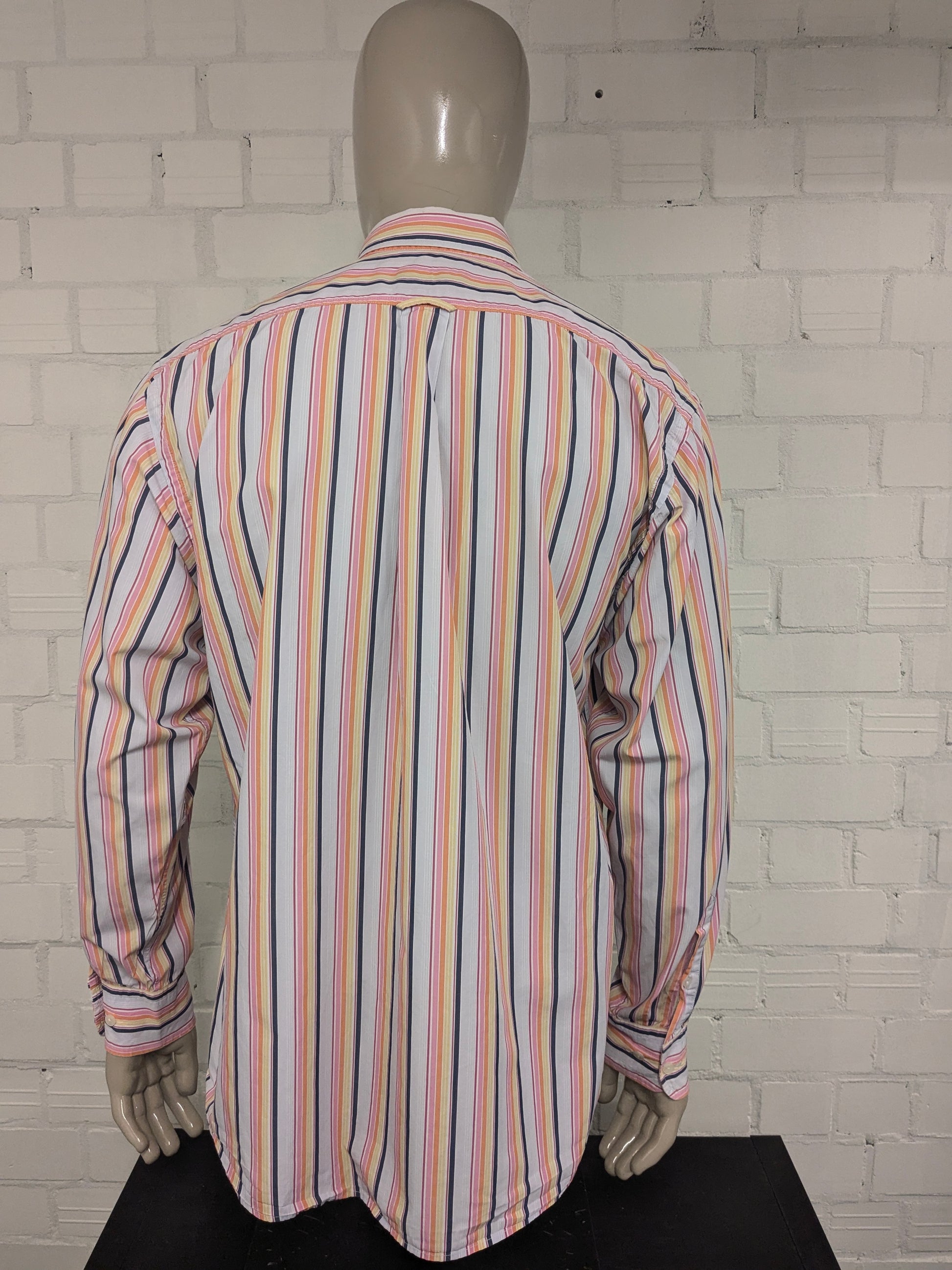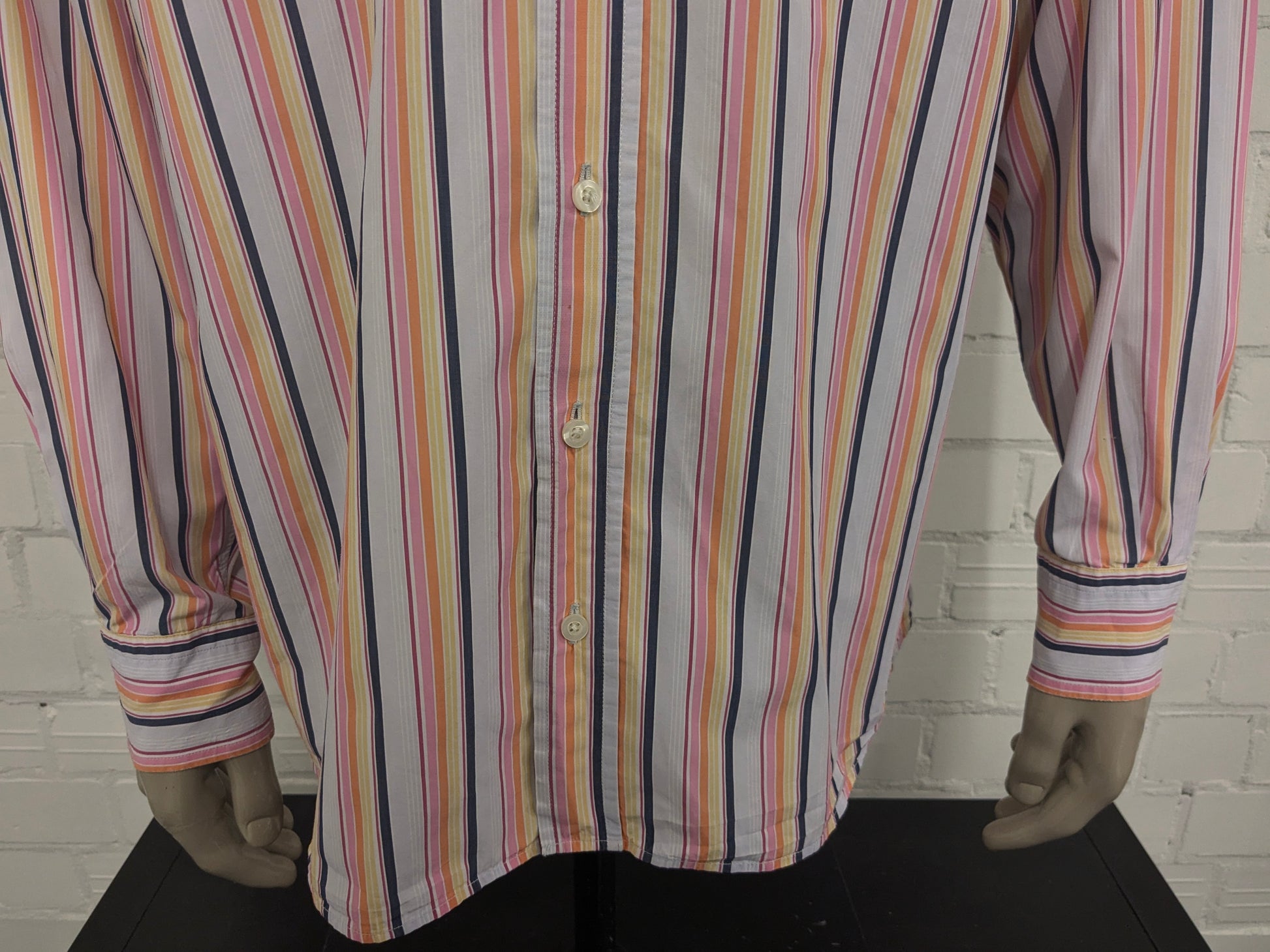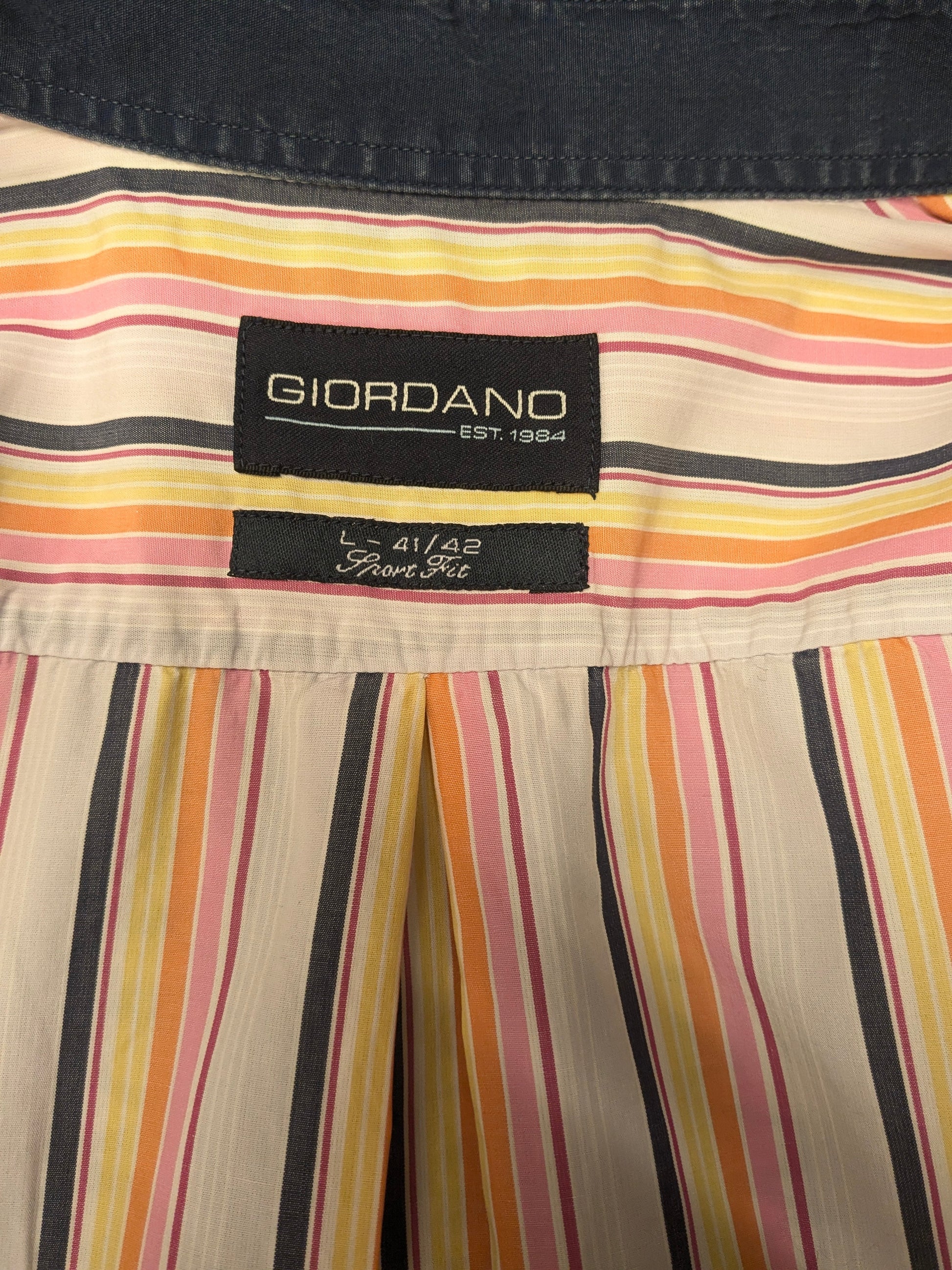 Giordano overhemd. Roze Geel Oranje Blauw gestreept. Maat XL.