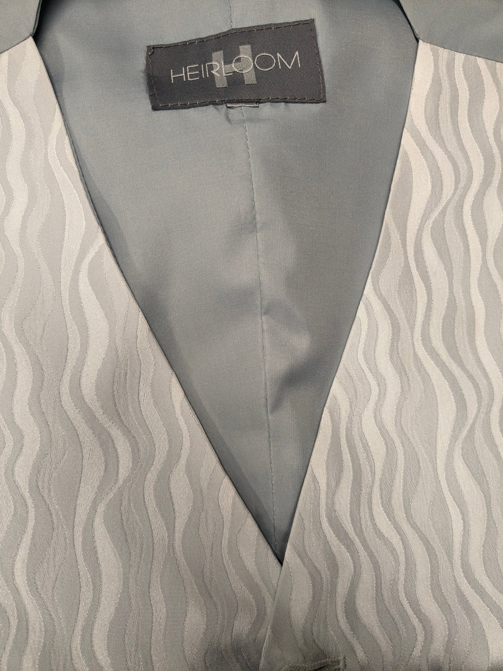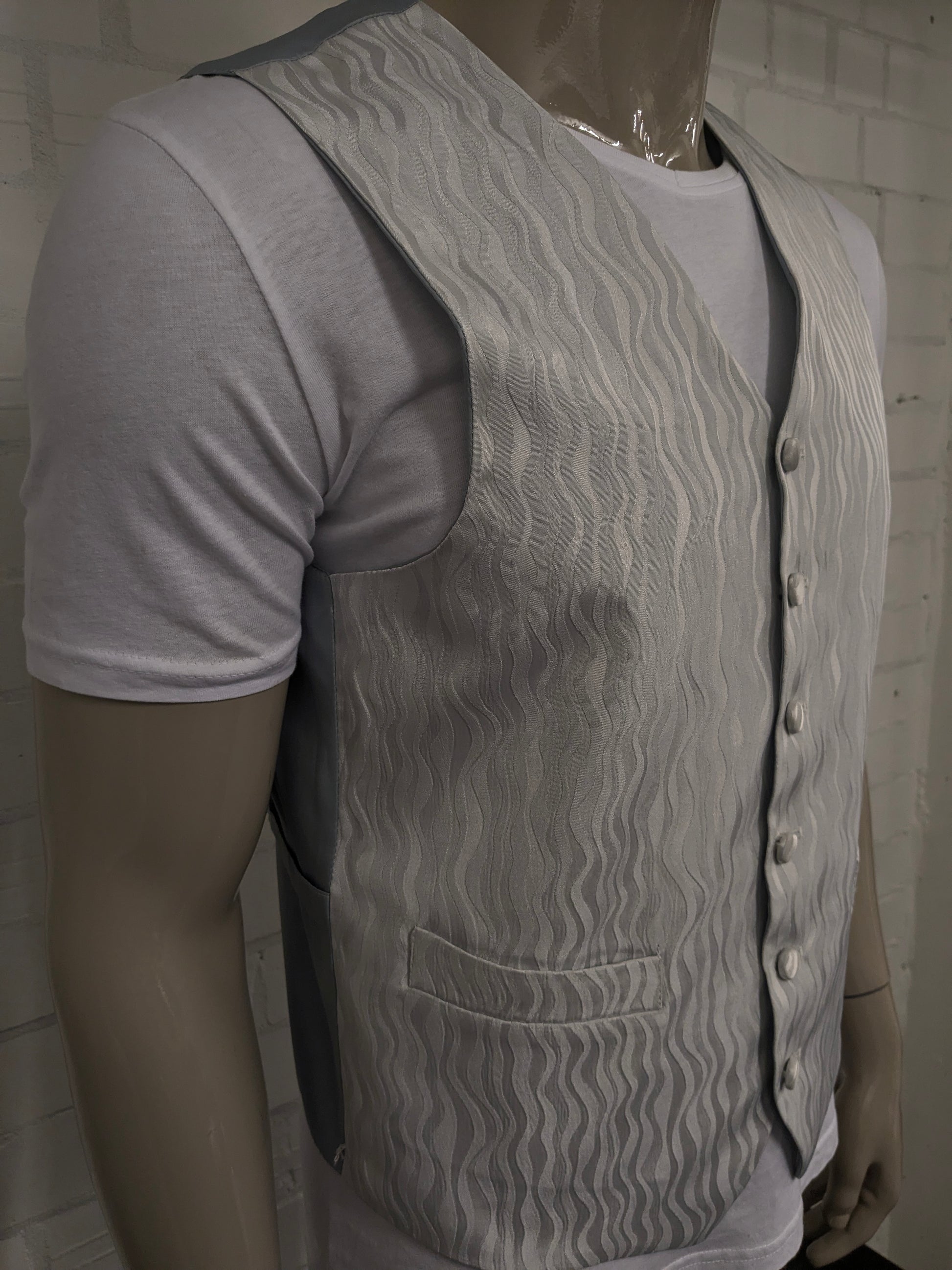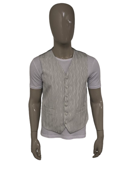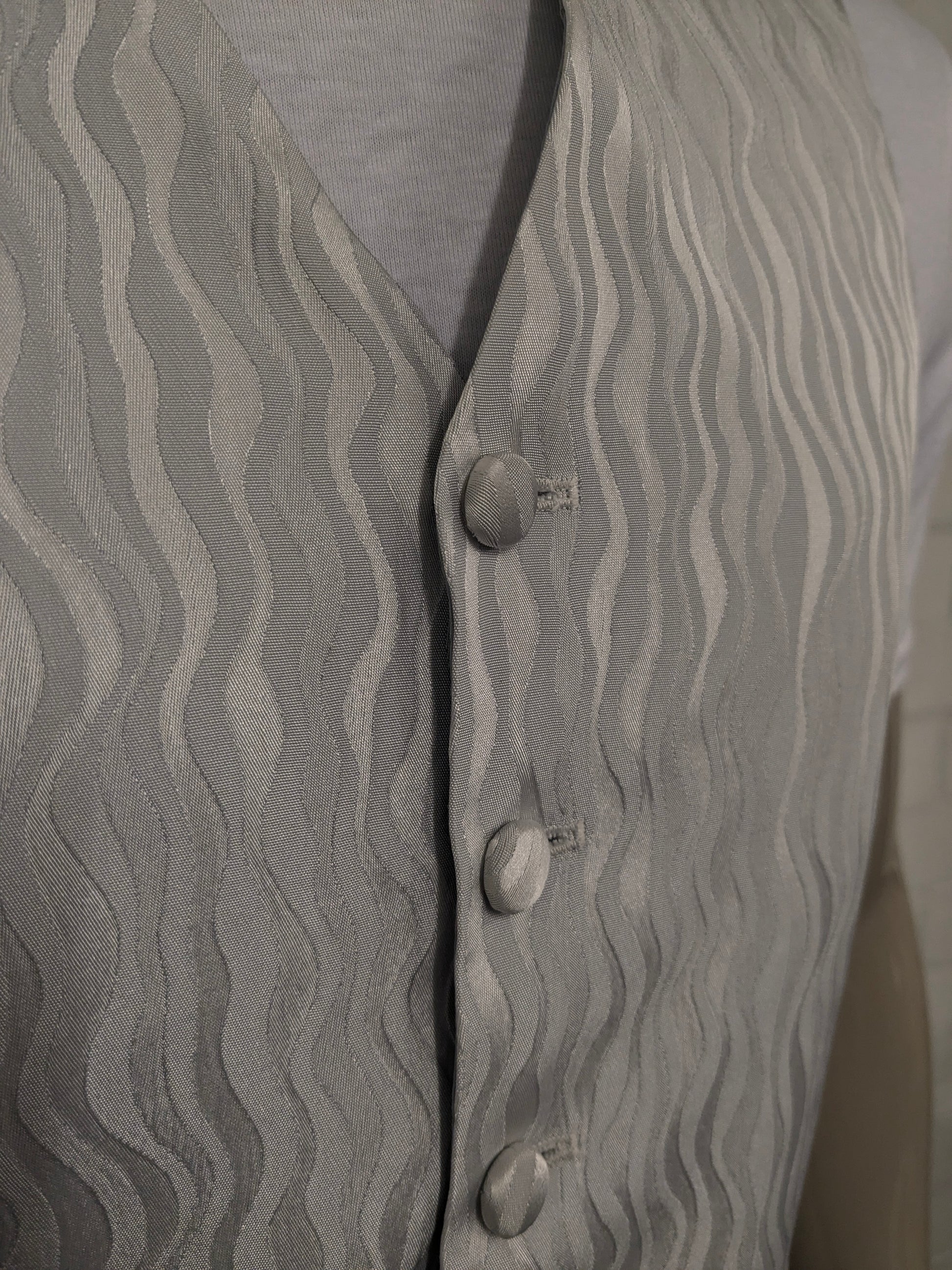 Heirloom gilet. Wit Grijs golvende strepen motief. Maat M.